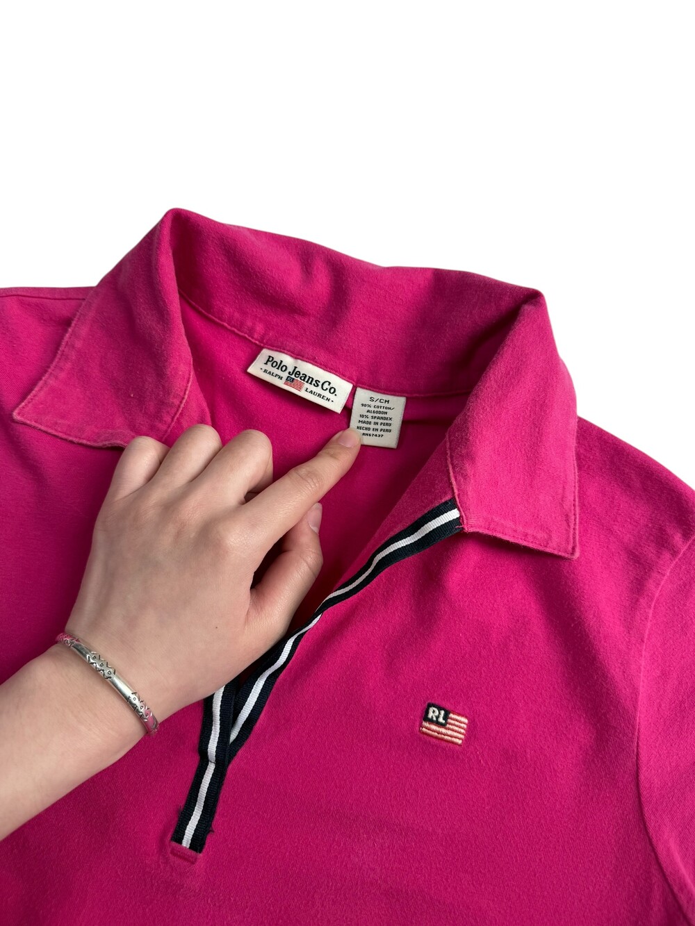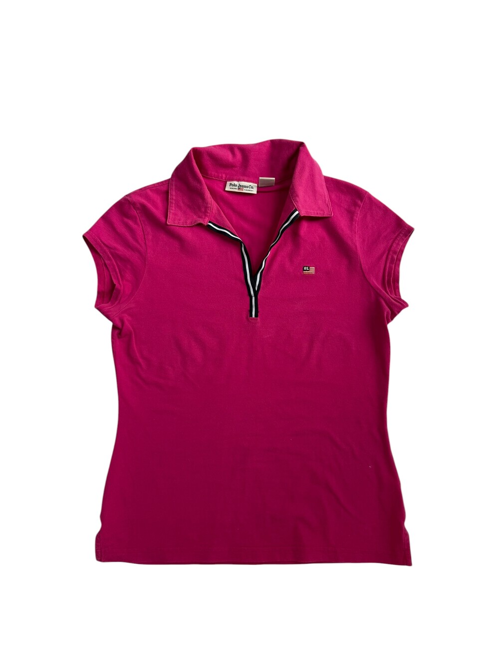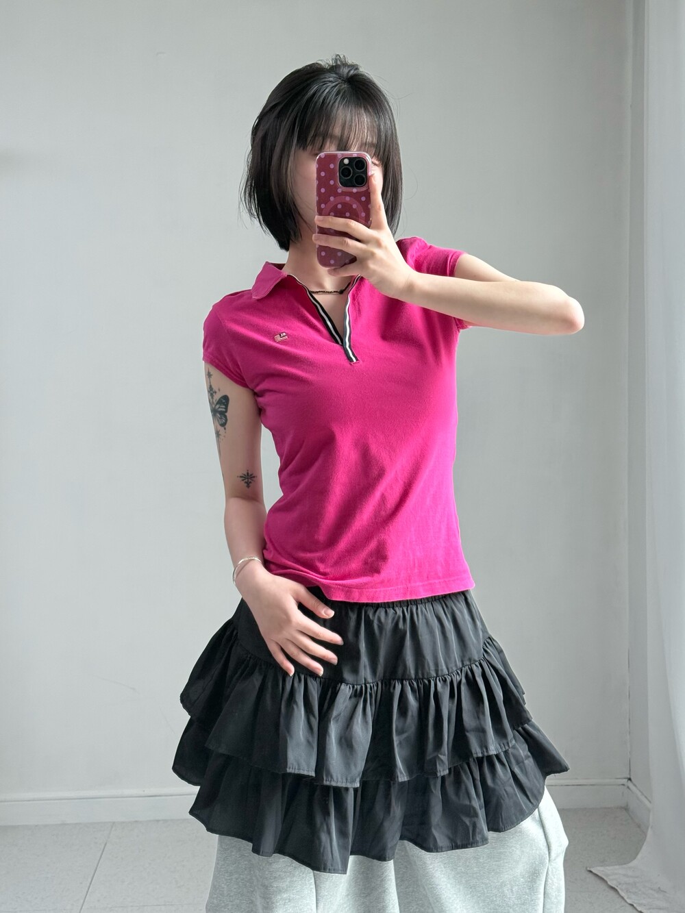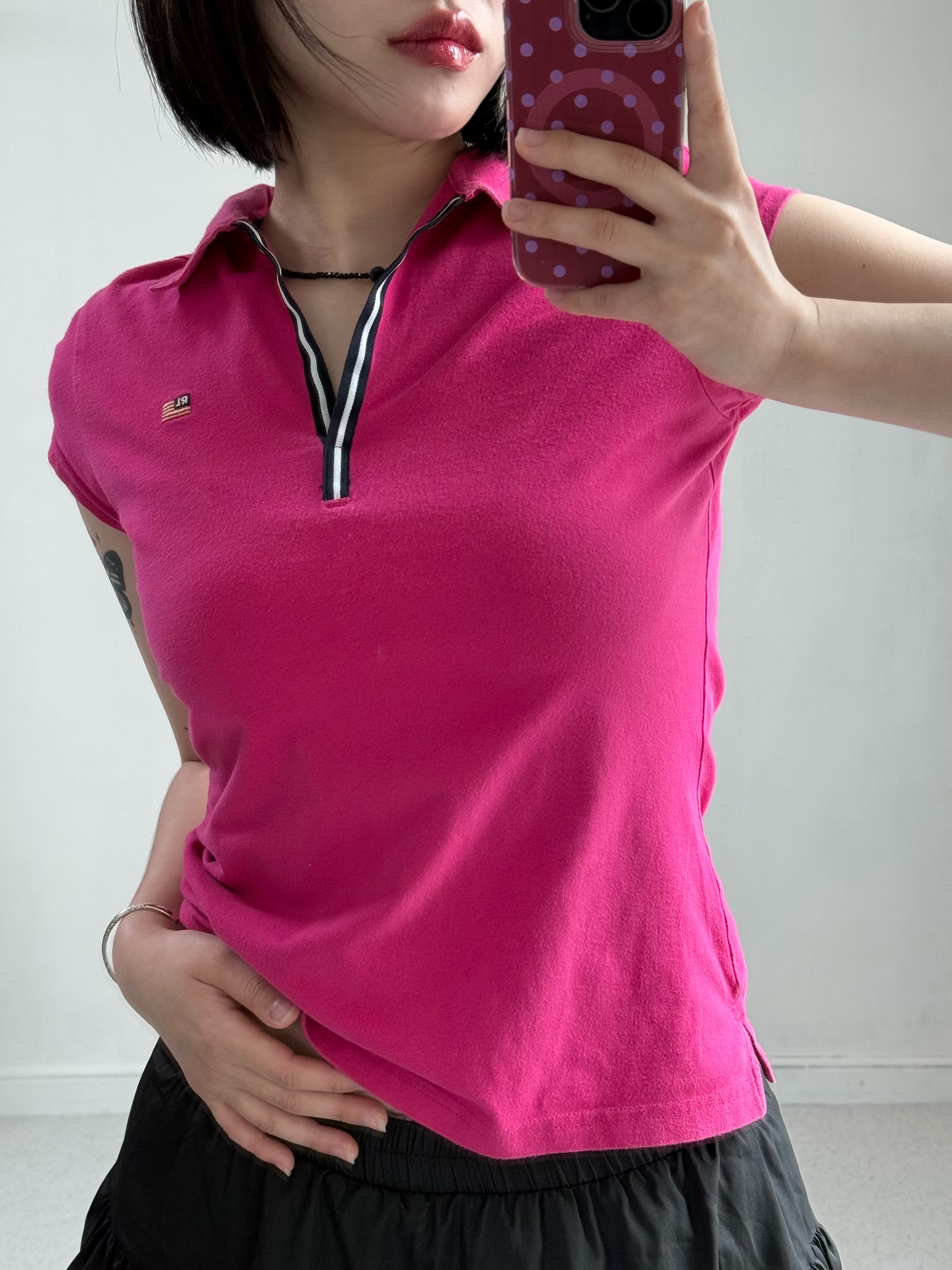 •폴로 진스 딱붙 핫핑크 반팔 입니다! 과하지 않게 파인 브이넥과 쫀쫀한 원단감이 정말 대박,,❤️