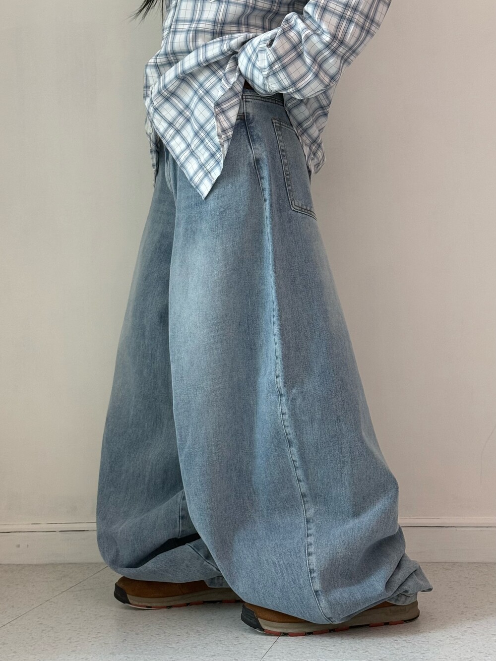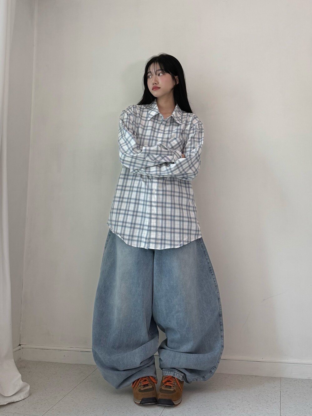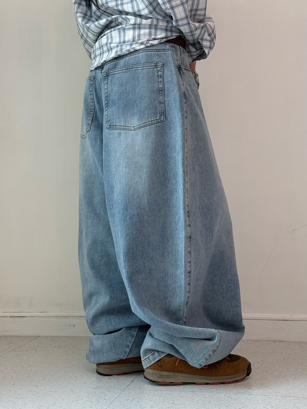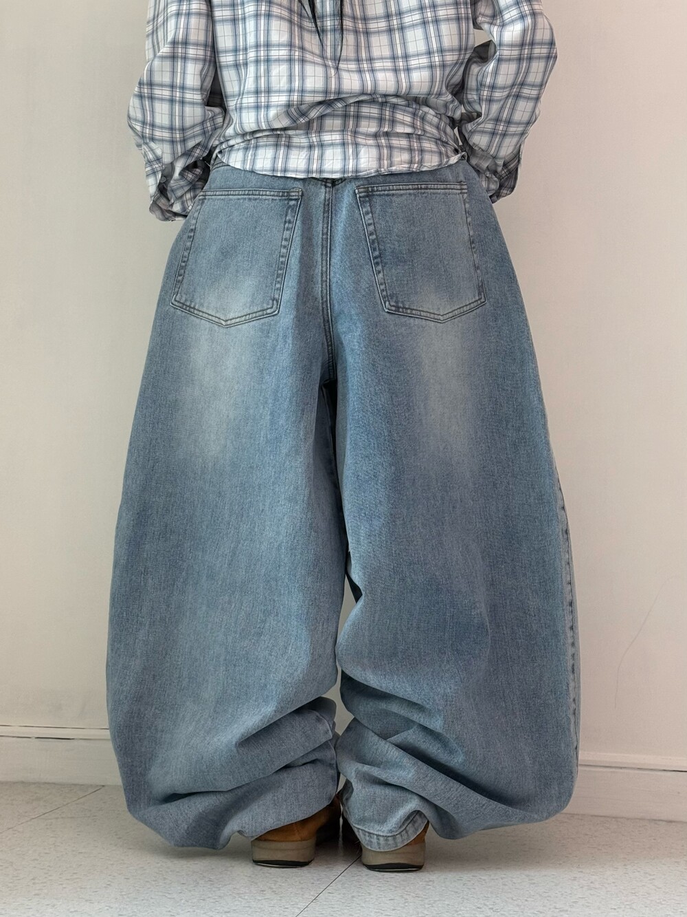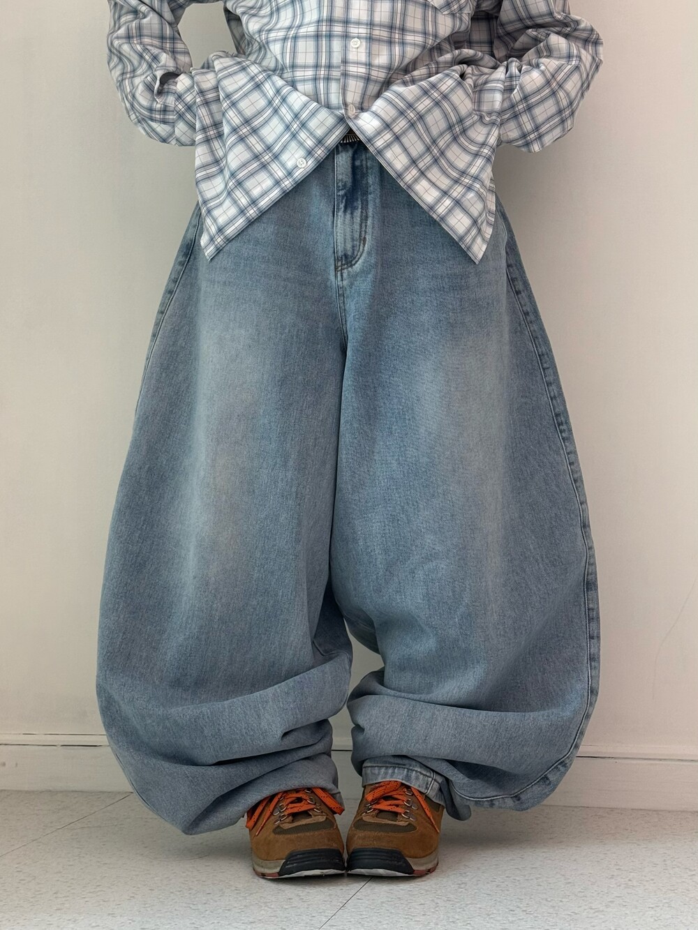 •은은한 워싱이 멋드러지는 벌룬핏 중청 팬츠 입니다✌🏻 기장이 길지만 밑단이 좁아서 절대 끌리지 않아요! 주인장 개인소장으로도 요론핏 데님있는데 아주 대만족😍