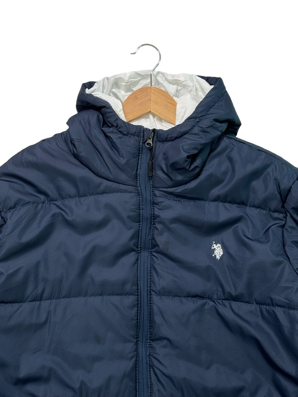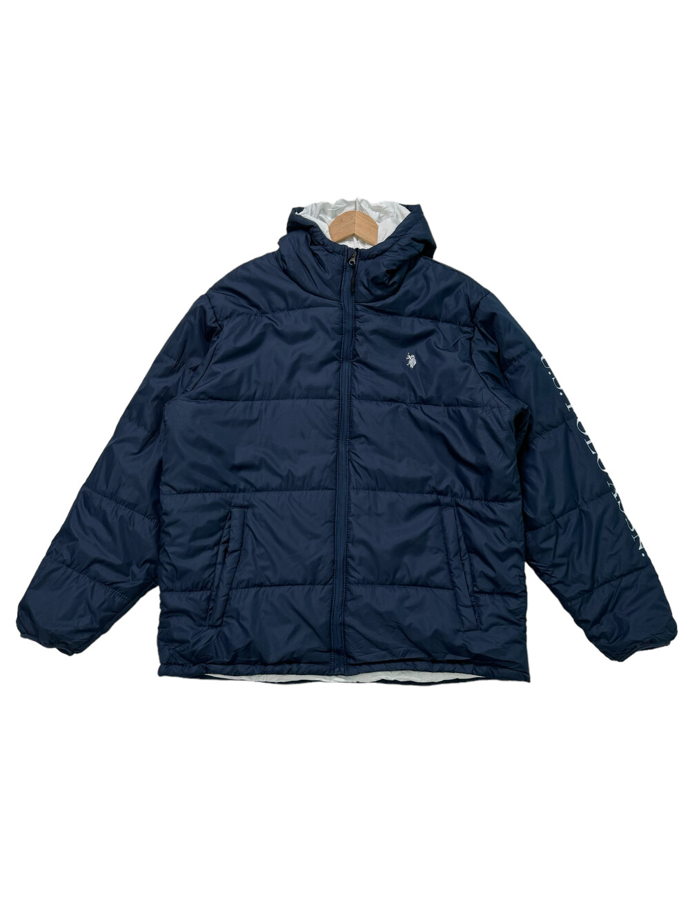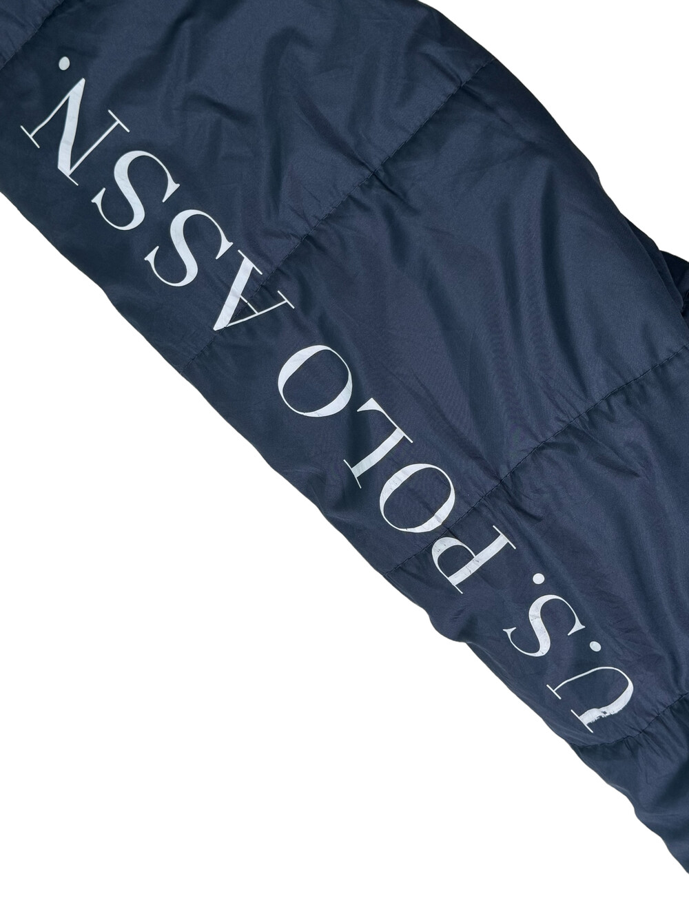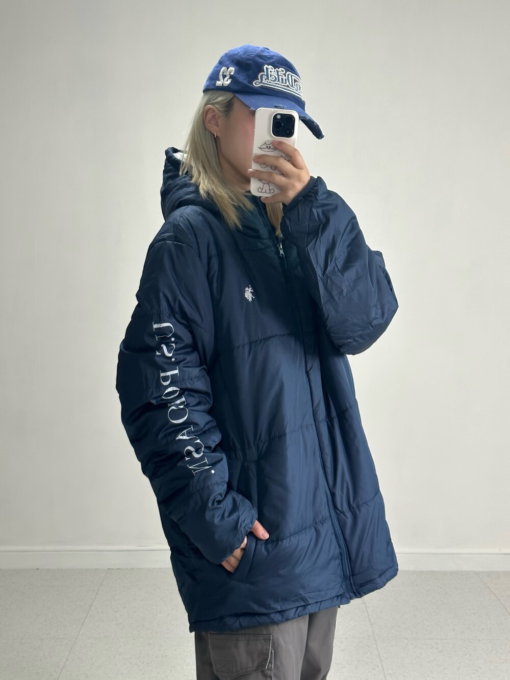 •네이비 컬러 유에스 폴로 패딩입니다! 원단은 폴리에스테르 이며 크기에 비해 옷이 가벼운 편이라 착용감이 좋더라구요! 소매쪽 프린팅이 포인트라 아방 귀엽게 착용하기 좋습니다ㅎㅎ 모자도 커서 모자써도 짱 귀엽습니다용..