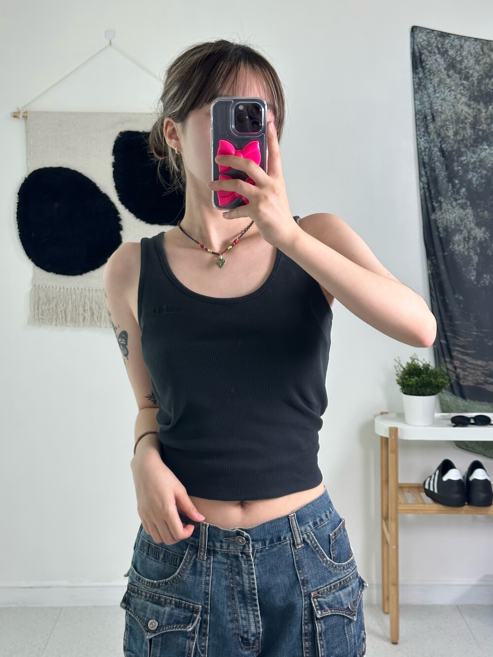 •아디다스 블랙 민소매에요! 몸에 핏하게 떨어지는 제품이라 상체 라인을 잘 살려주는 제품이랍니다? 무채색 핫 걸 모여모여 🖤