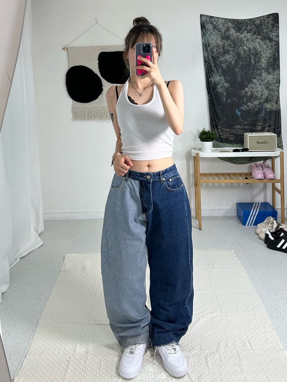 •하프앤하프 디자인 정말 독특하지 않나요!! 이런 디자인은 동묘에서 구매해도 적어도 7만원 이상인거 아시죠.. 무오데에서만 이 가격에 이런 디자인 구할 수 있삼..핏도 벌룬 느낌으로 떨어져서 예뻐요! 독특한 팬츠 구하신다면 완전 강추 >,<