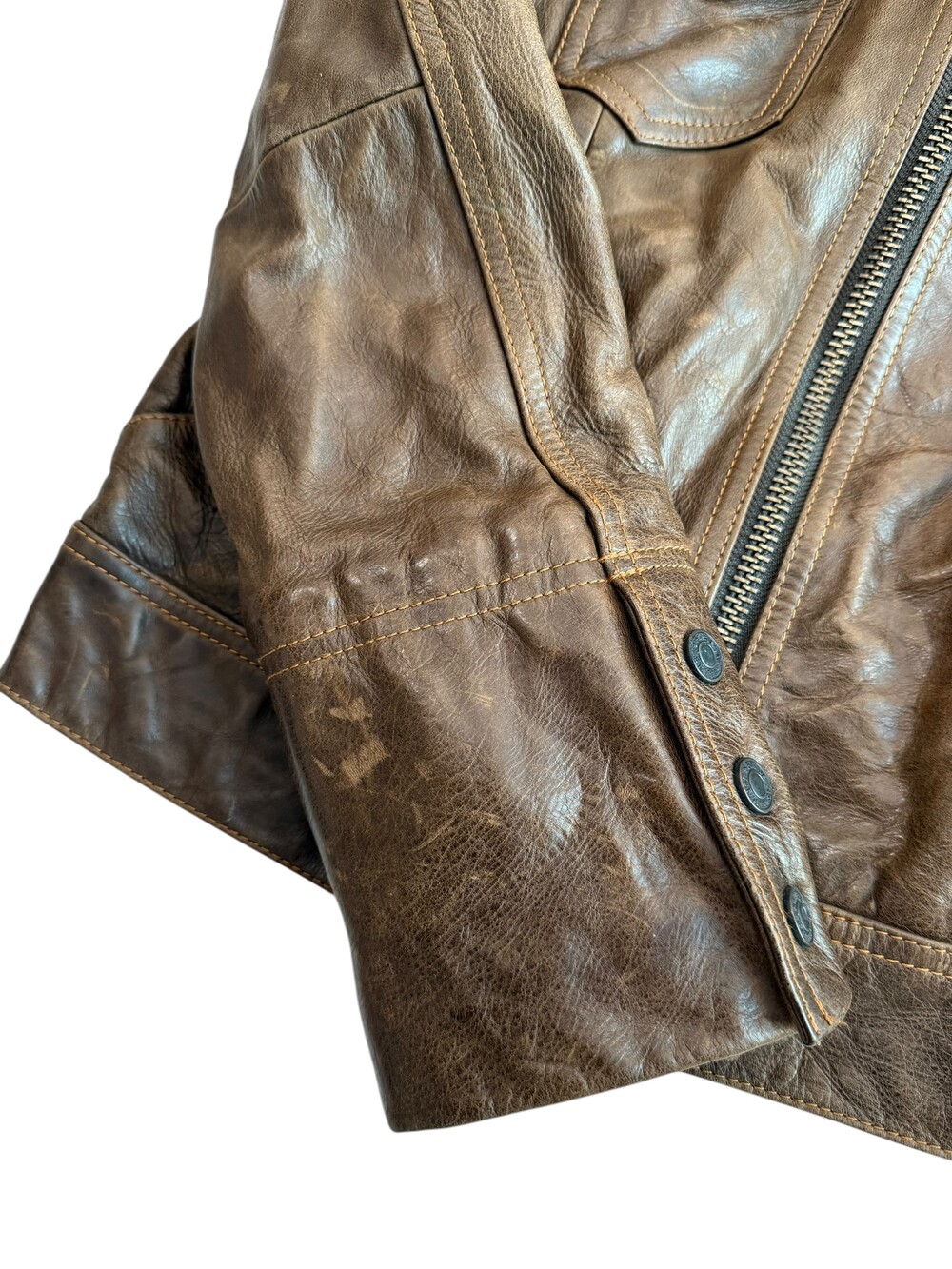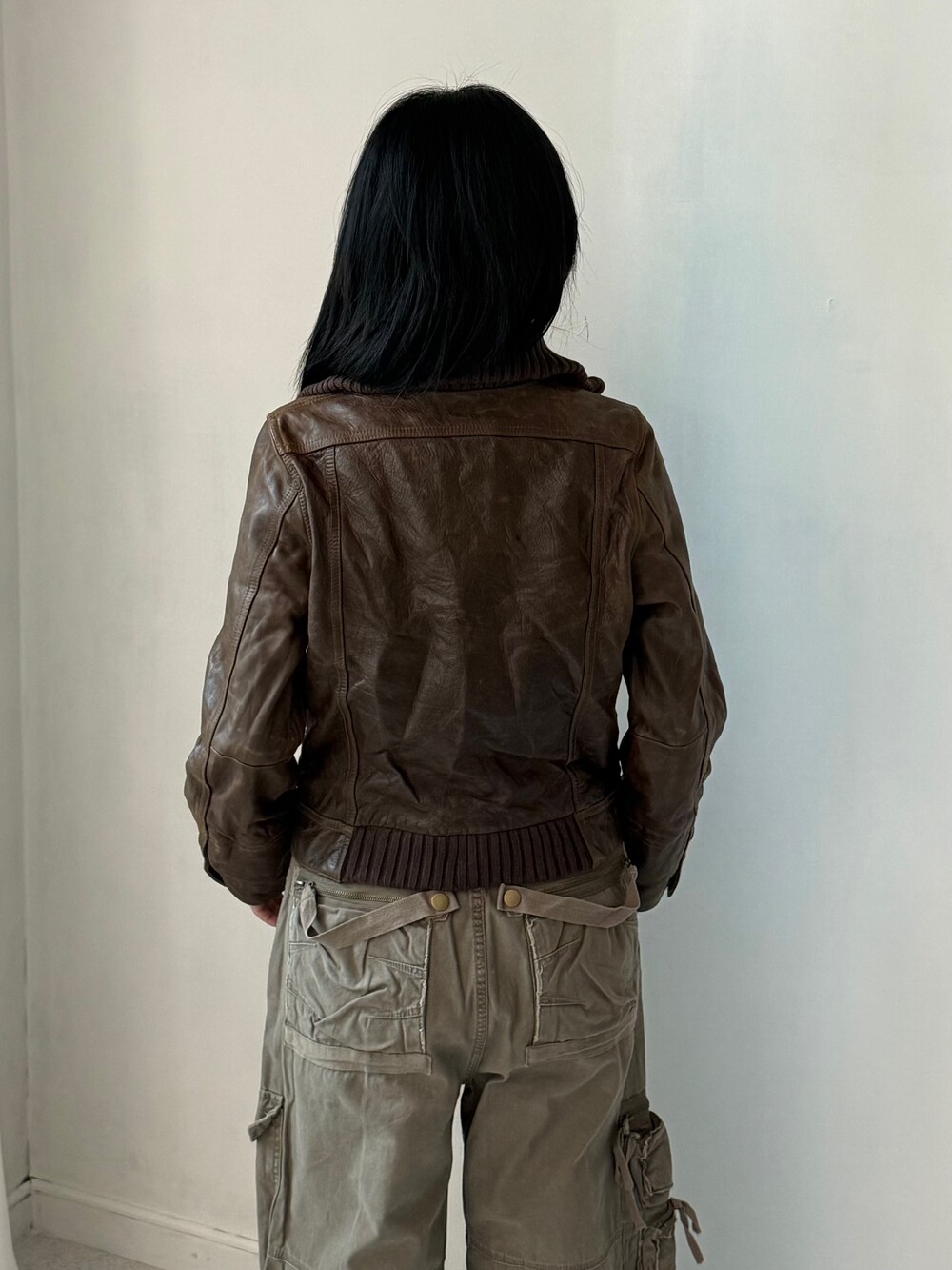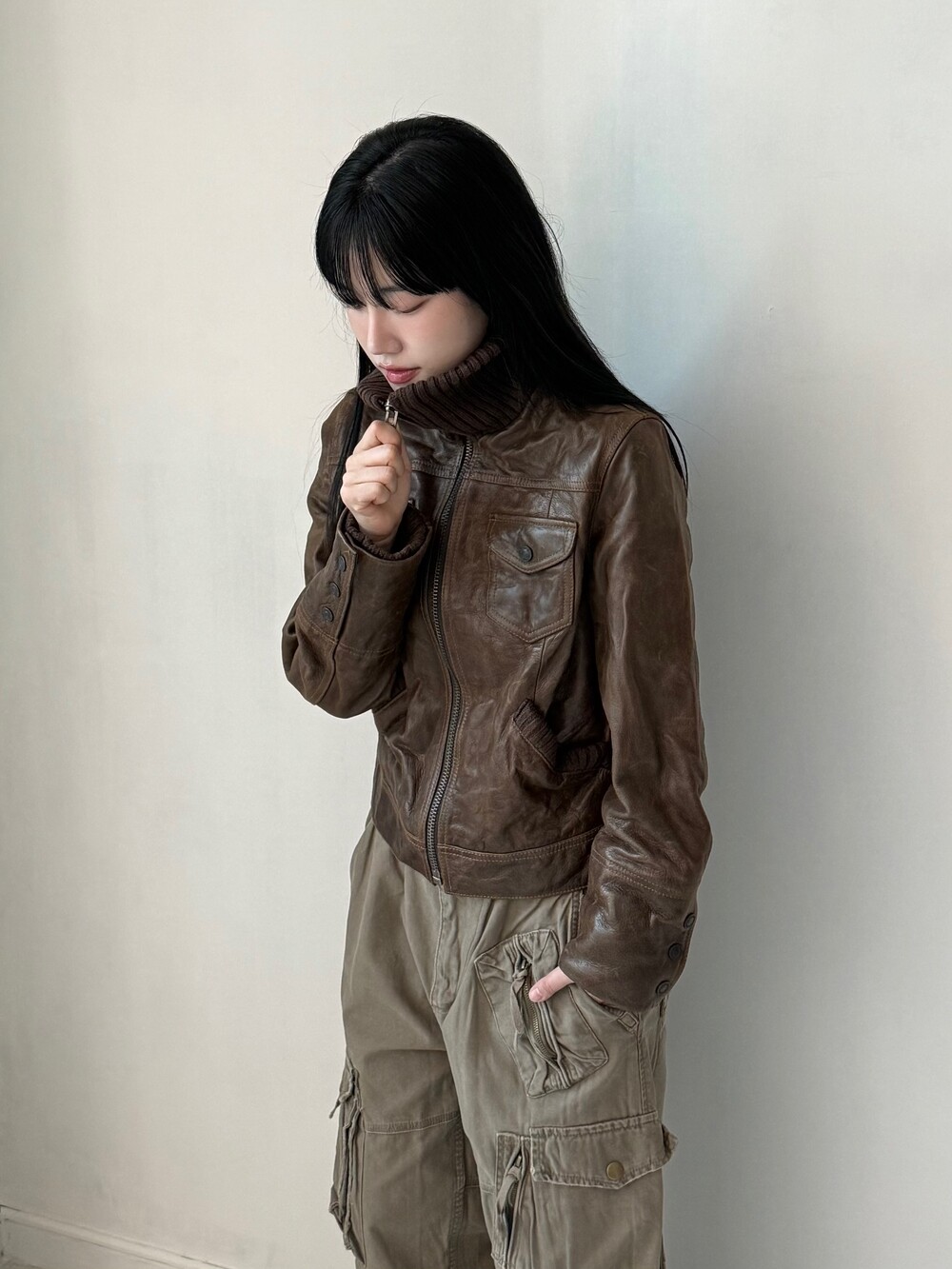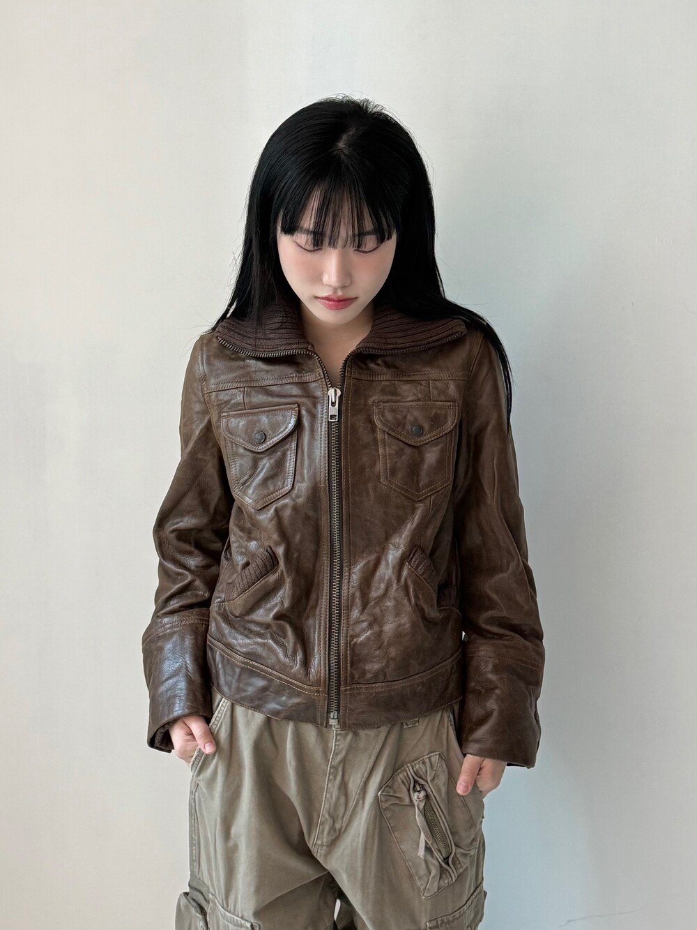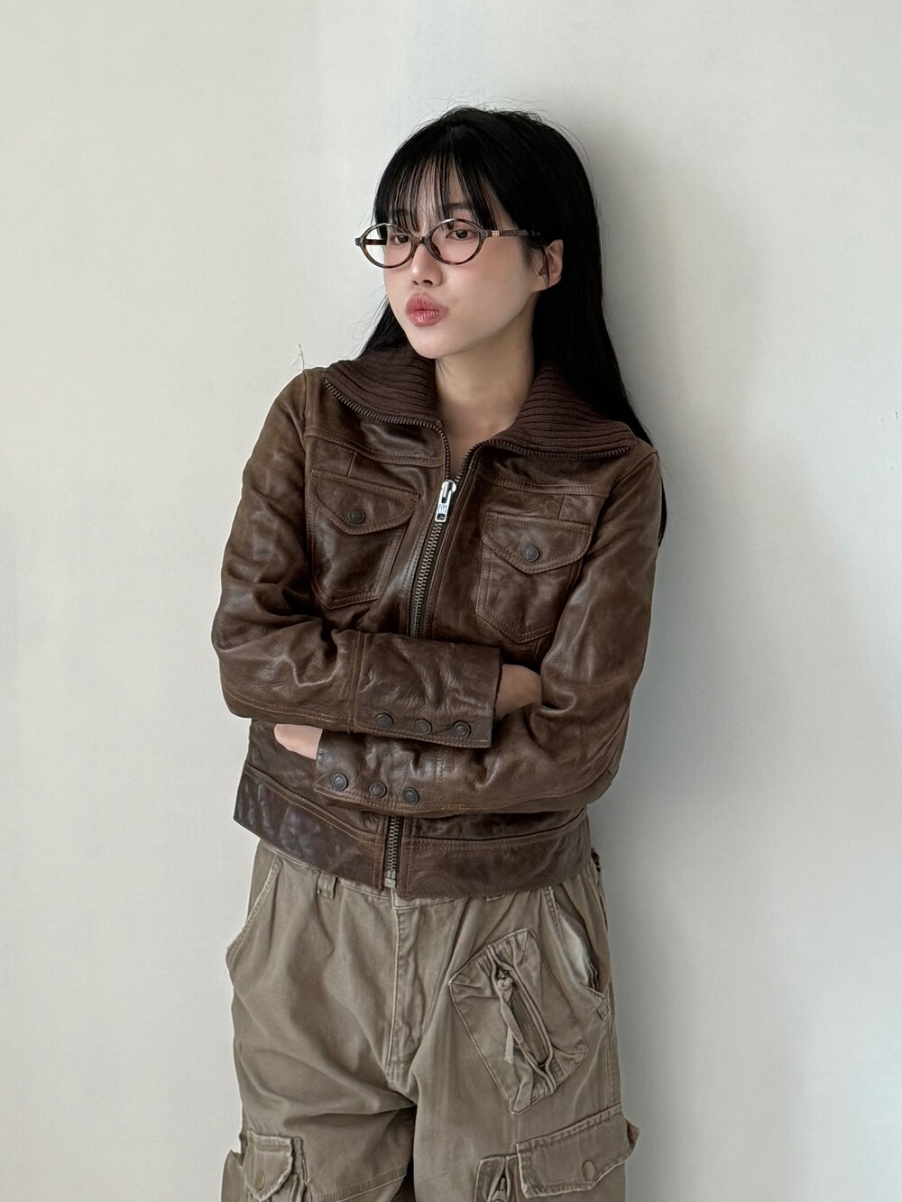 •갭 브라운 레더 자켓입니다. 소가죽 100% 이며 니트소재가 소매와 넥부분에 들어가있어 더욱 따뜻하고 고급스러운 이미지를 연출하실 수 있어요! 😎