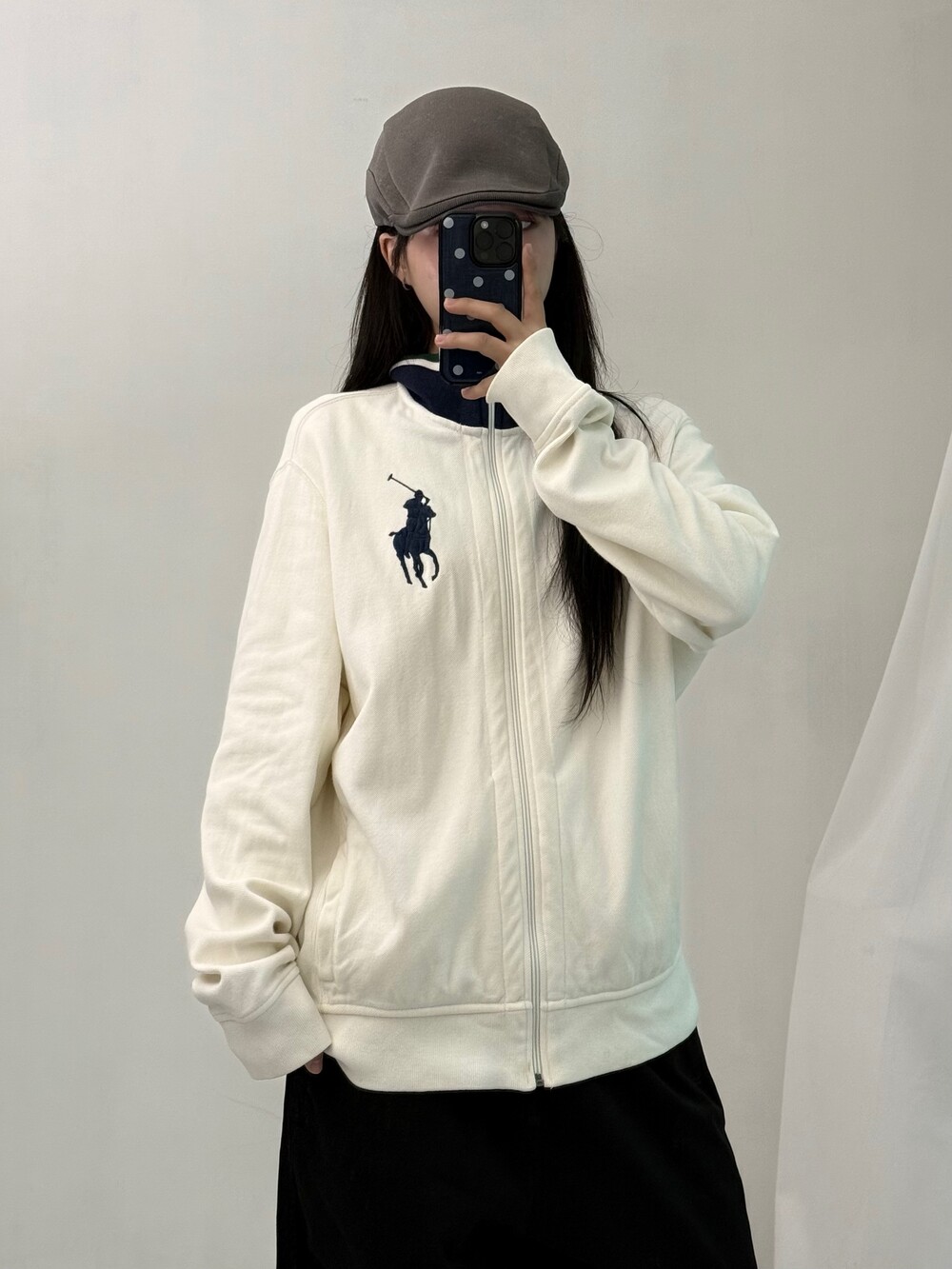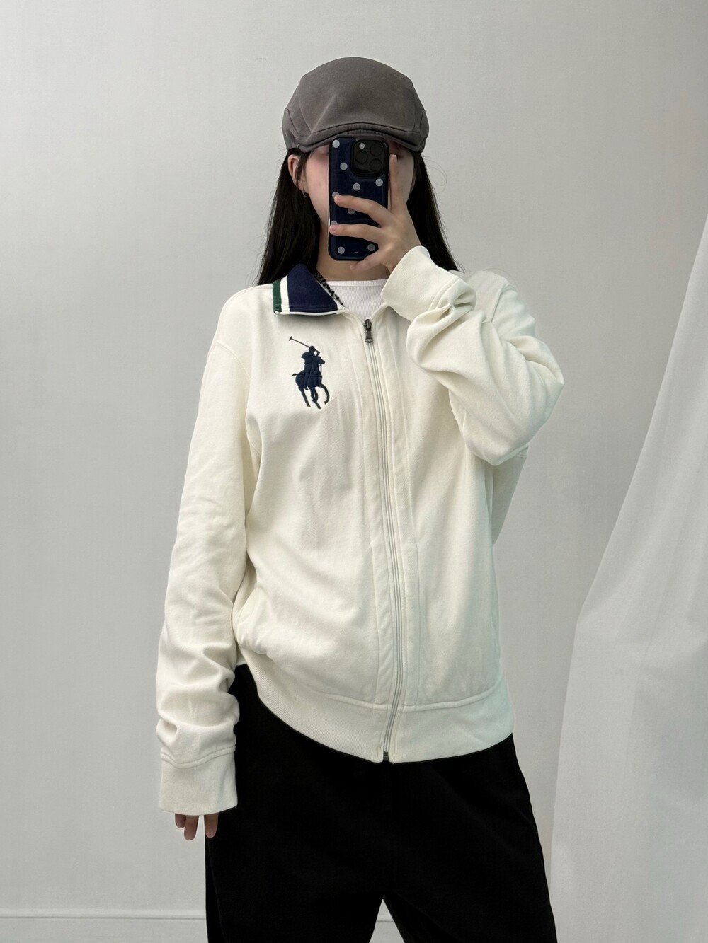 •크림 아이보리 컬러의 폴로 빅포니 집업! 사이즈도 너무 좋고 깔끔하게 입어주시기 좋은 빈티지 아이템이에요ㅎㅎ 사진상 조금 노랗게 나왔는데 실제로 보면 아이보리와 크림색에 가깝습니다!
