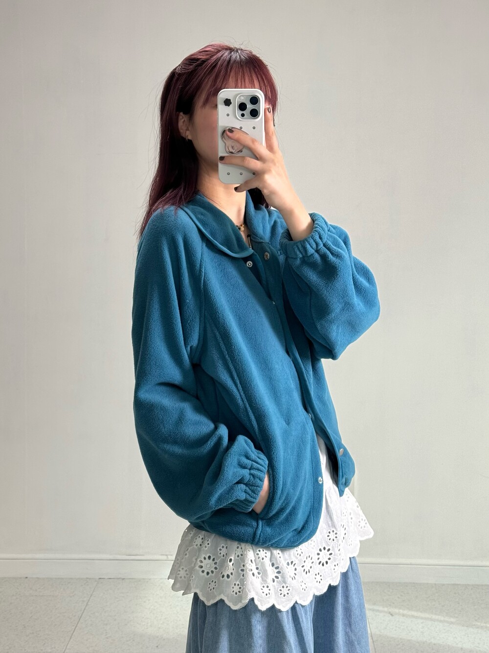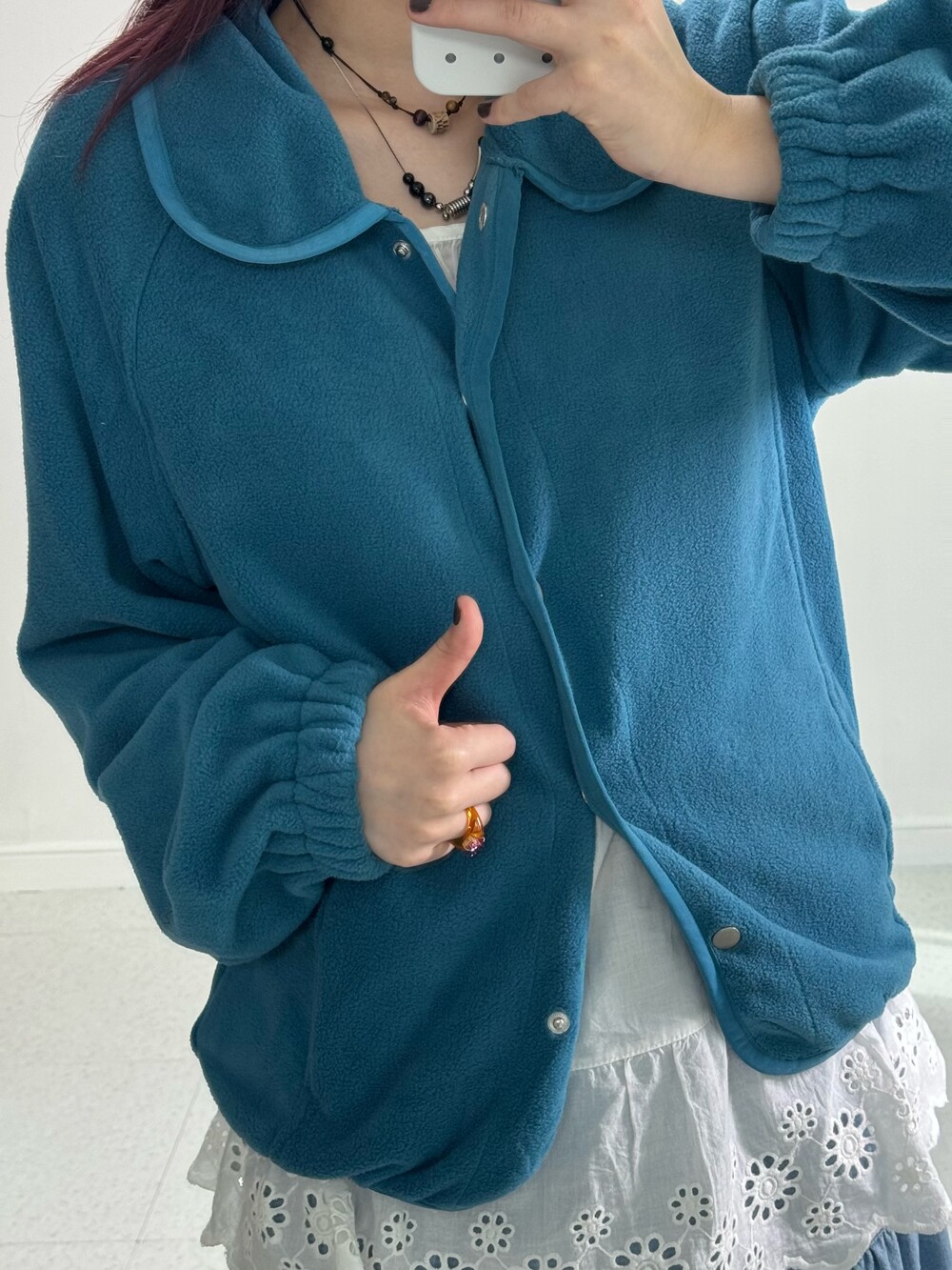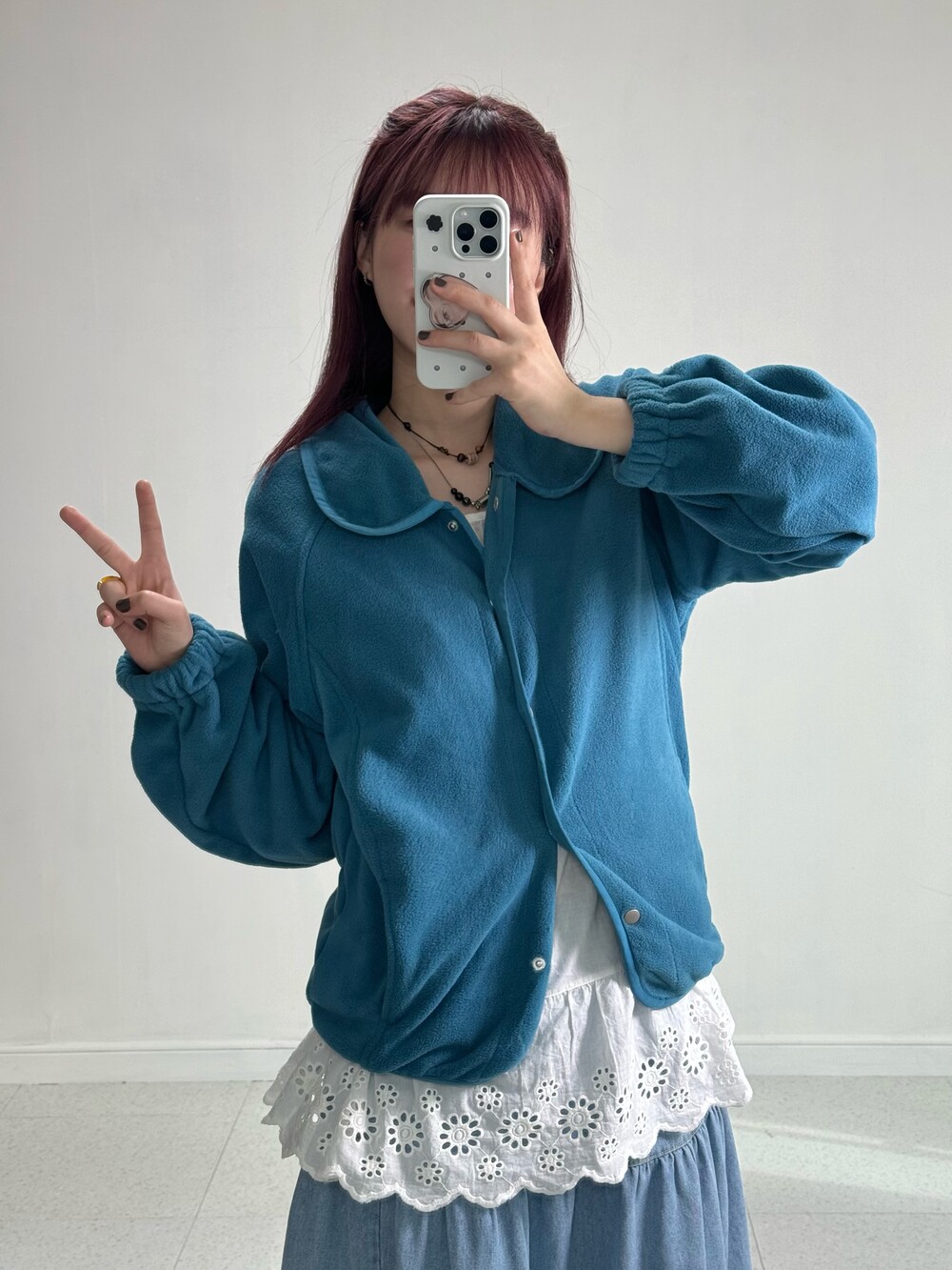 •청량한 청록컬러에 귀여운 폼폼푸린 같은 디자인 넘나리 제 스타일이였던 자켓 입니다ㅎㅎ 아방루즈핏이라 사랑스럽게 연출하기 좋아요 ㅎㅎ🖤