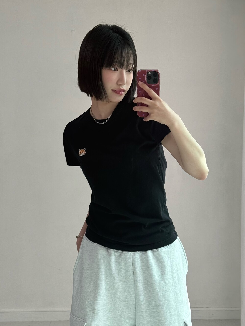 •메종키츠네 반팔티 입니다. 블랙 컬러라서 데일리로 입어주시기 좋아요ㅎ.ㅎ