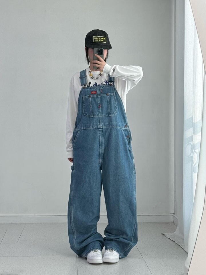 •디키즈 오버핏 데님 오버롤 입니다. 상태도 좋고 후드나 롱슬리브만 입어줘도 꾸안꾸 코디 완성!