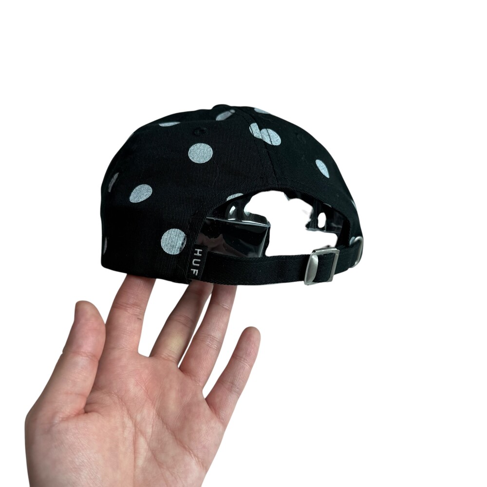 HUF사의 땡땡이 캡 입니다! 허프 캡 모자는 많을 수 있지만 땡땡이 디자인은 무오데 유일매물 이옵니다,, 요즘 필수 아이템 땡땡이인거 아시져