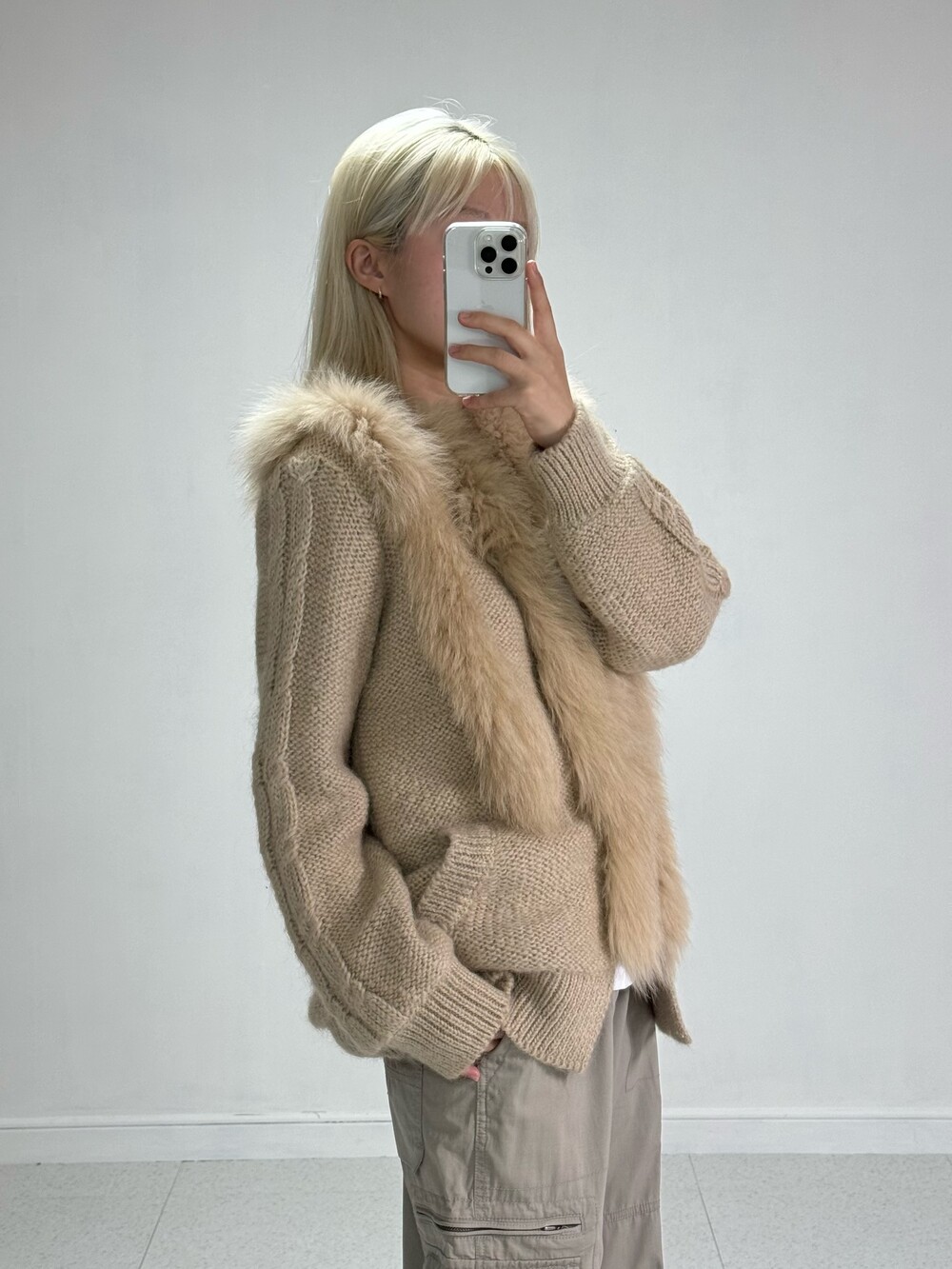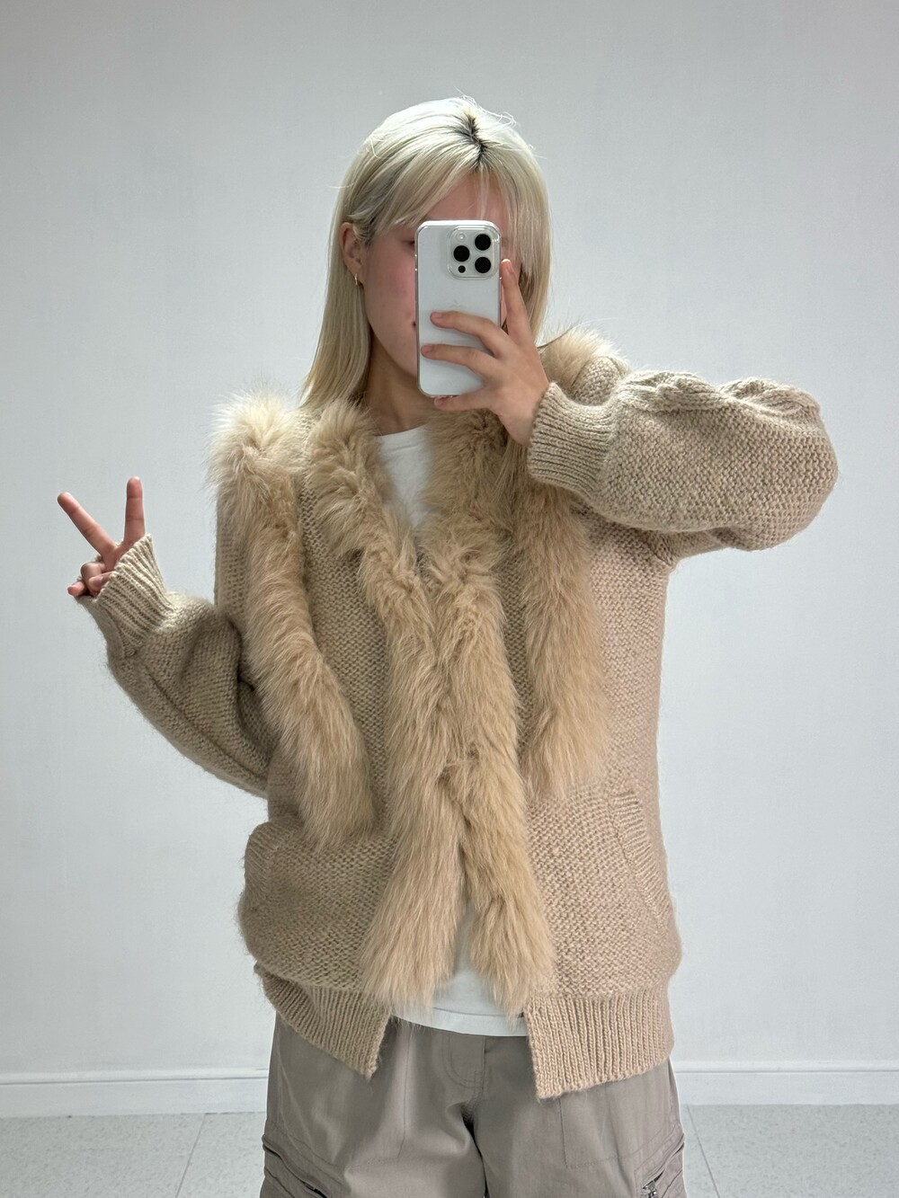 •아마 제가 보여드린 퍼 니트 조합중 가장 예쁘지않을까.. 싶을만큼 마음에 들었던 제품이에요! 아방루즈한 핏이며 부담스럽지 않은 색감과 디자인이 넘 예쁜 아우터에요ㅎㅎ