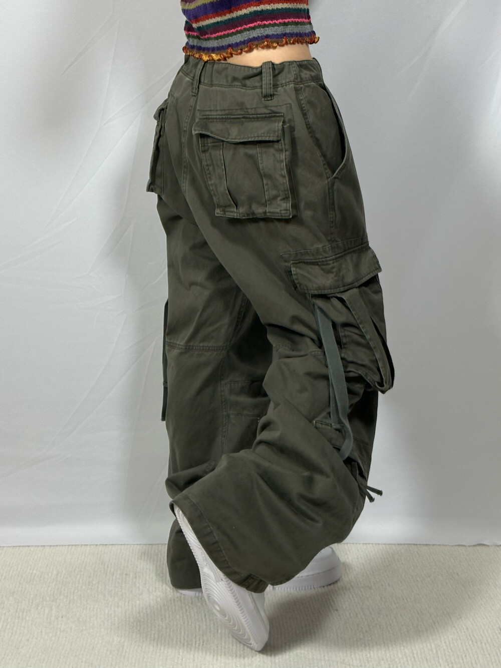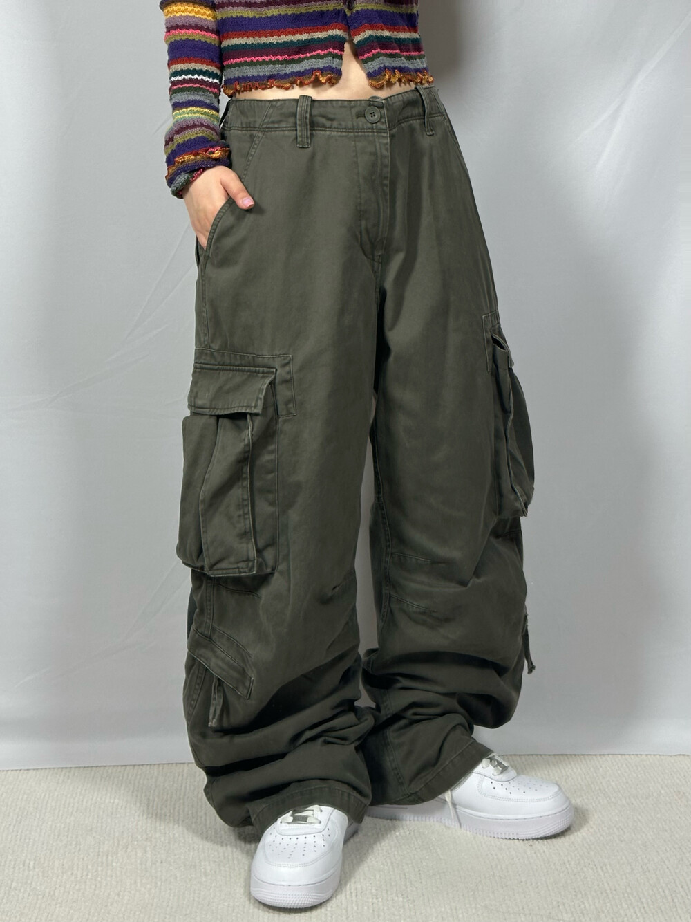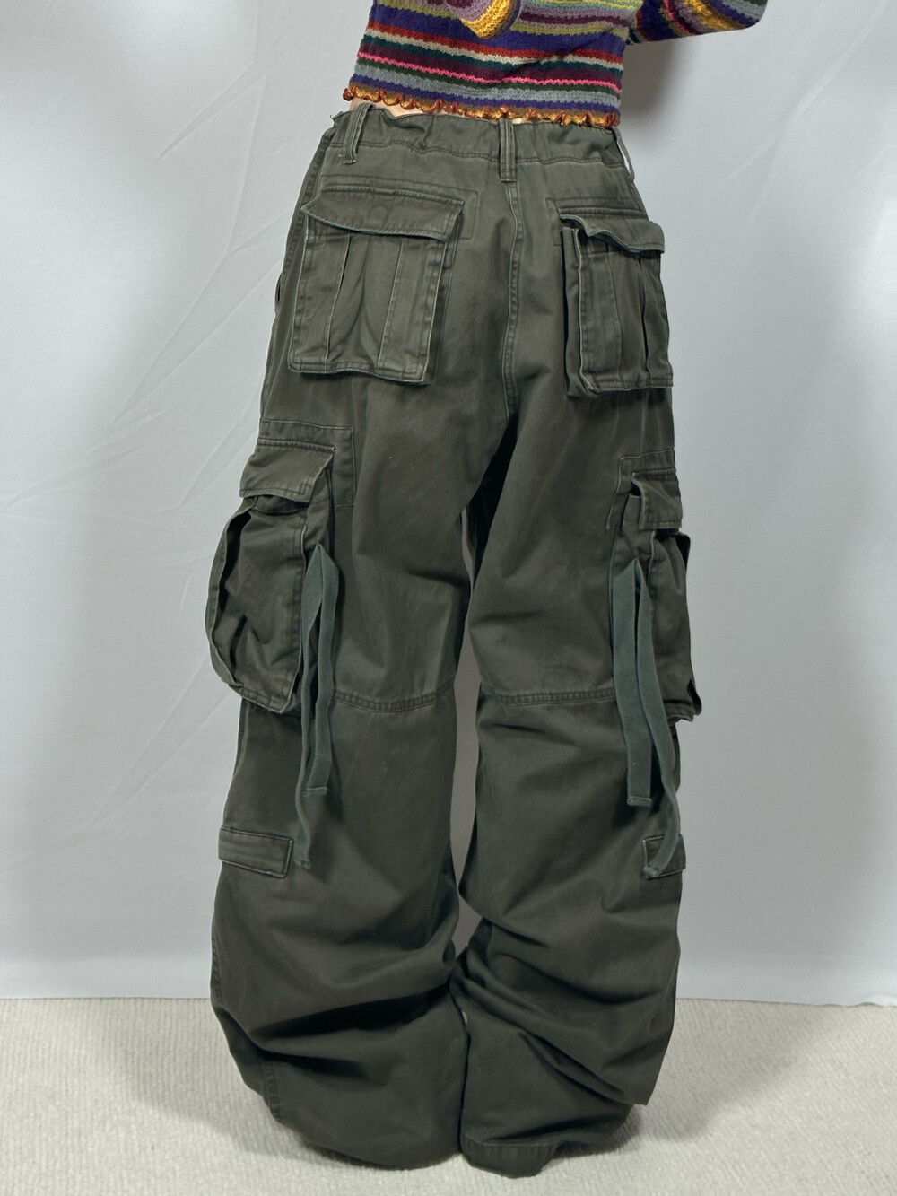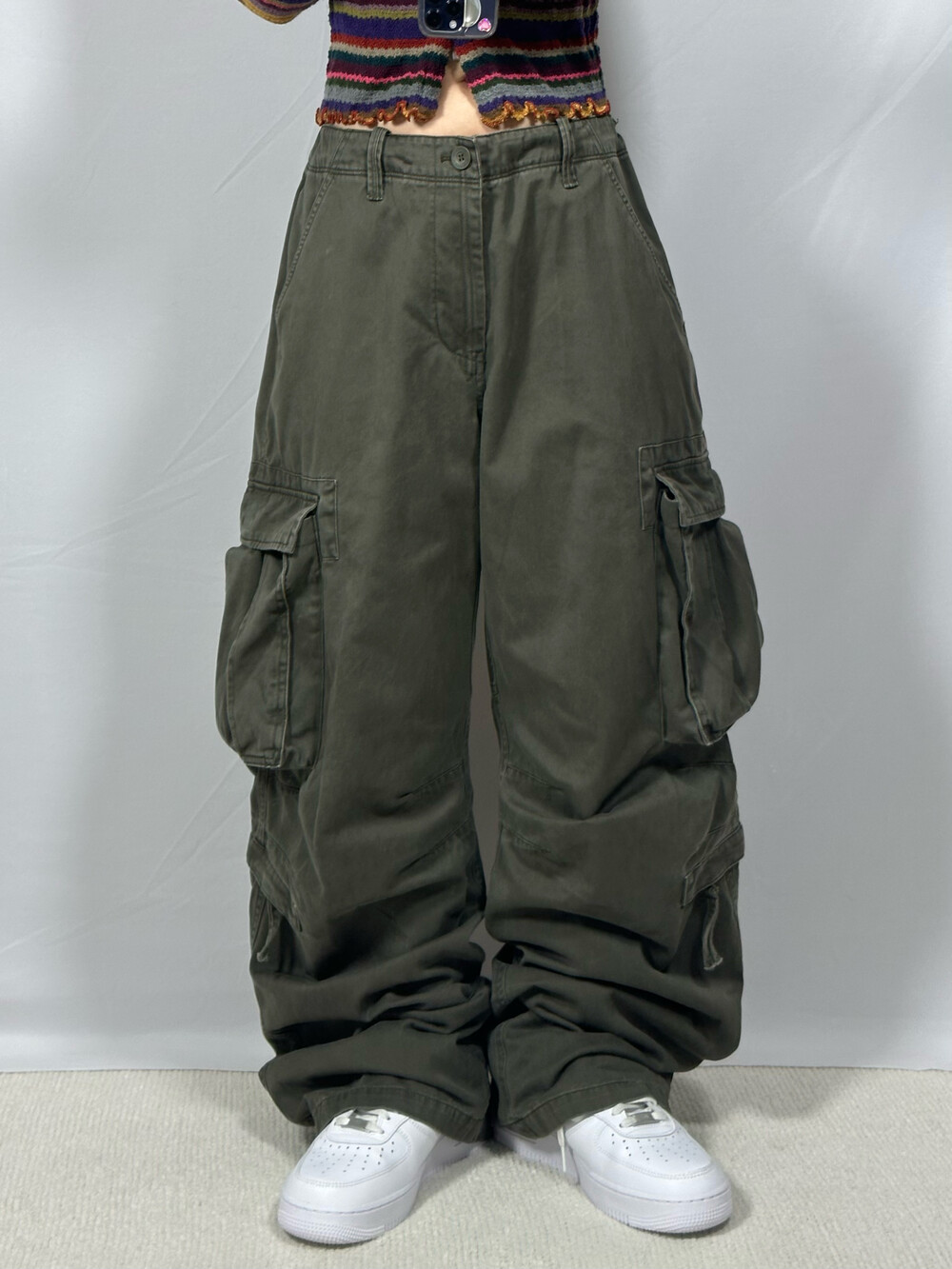 [Wide khaki cargo pants]