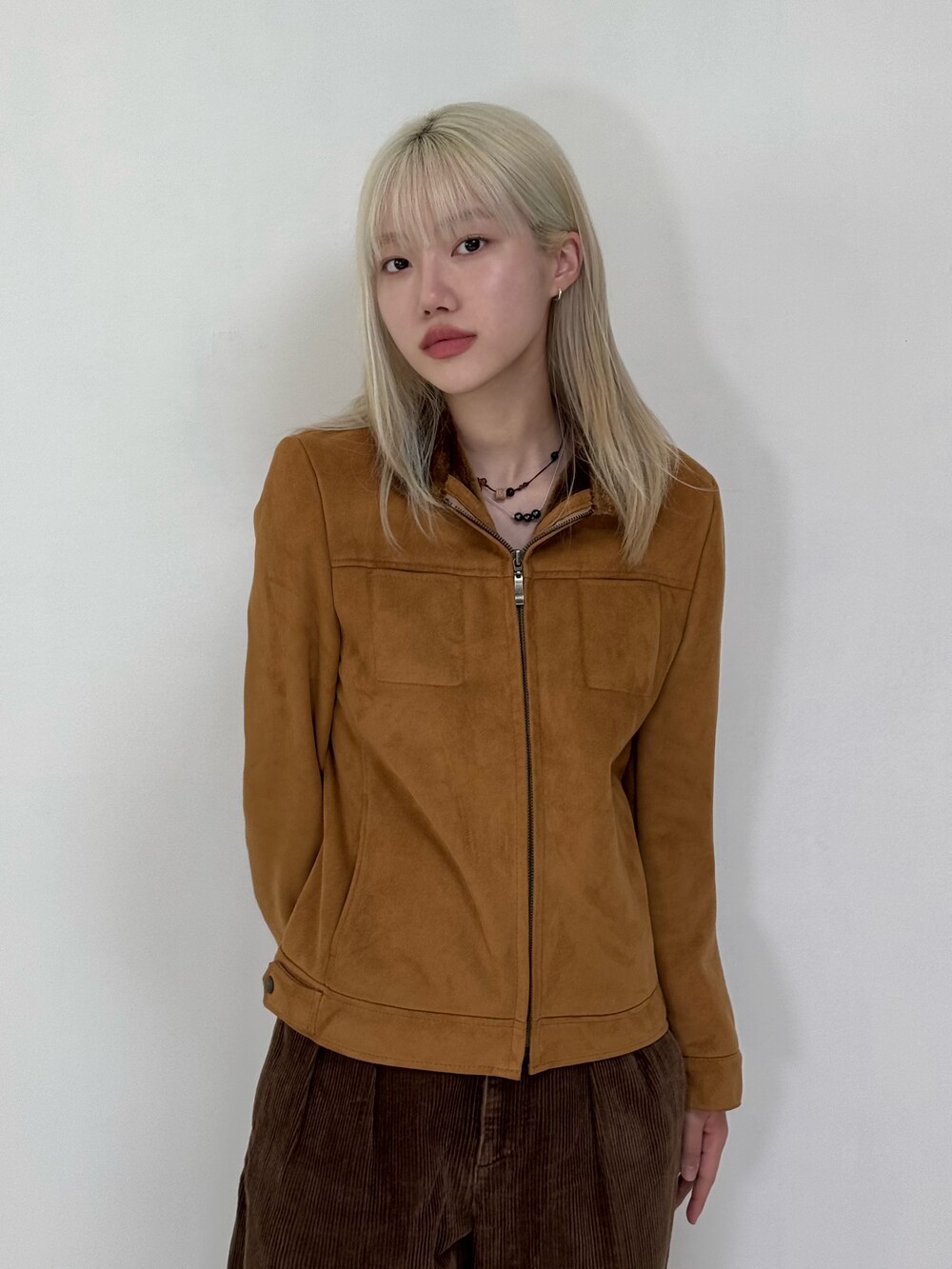 •스웨이드라고 해서 지금 입으면 추울거같지만 안감이 퍼로 되어있어 굉장히 따수운 제품이에요ㅎㅎ 따뜻한 베이지 브라운 컬러가 매력적이고 고급스럽습니다..>,<