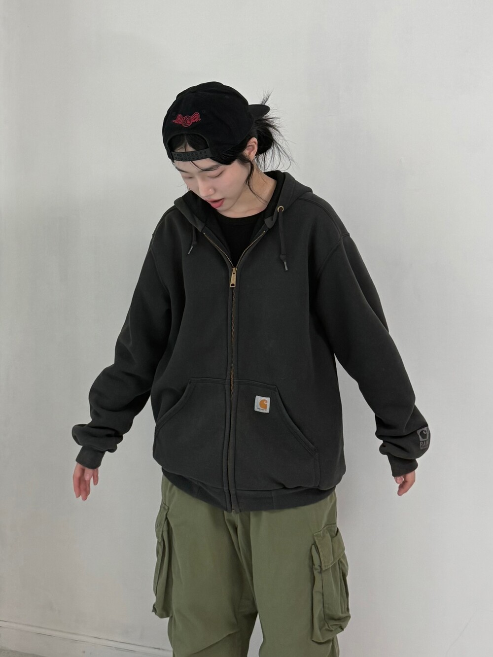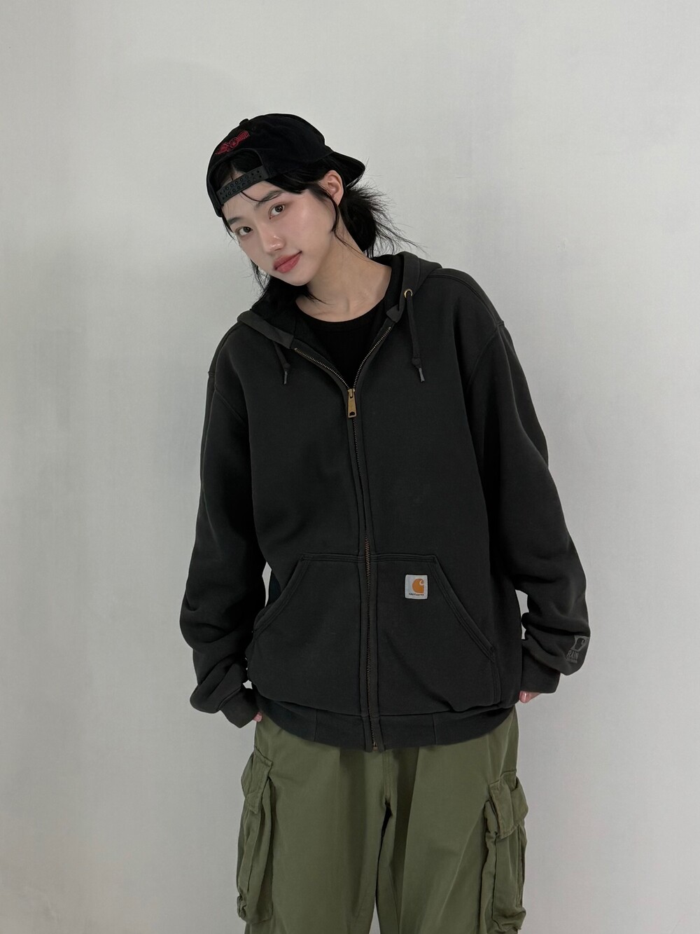 •칼하트 블랙 후집 이에요! 루즈묵직핏에 깔끔하면서 힙하게 입어주시기 좋은 아이템 이랍니다ㅎㅎ