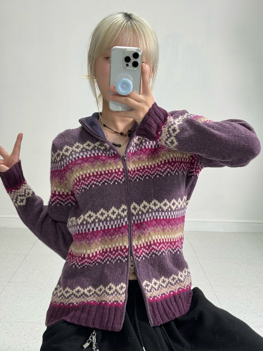 •포도느낌 노르딕 투웨이 집업이에요! 평소 44-55사이즈를 입는 저에게 정핏으로 떨어지는 제품이였어요ㅎㅎ 투웨이라니 말도 안돼! 🖤