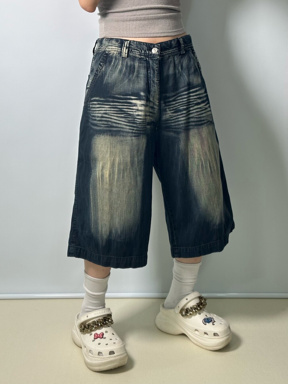 •정말 너무 너무 예쁜 데님 팬츠에요! 살짝 긴 기장감과 빈티지 무드 가득한 워싱 디테일이 멋스러운 반바지에요ㅎㅎ 생각보다 무겁지도 않고 가벼운 데님 원단이라 한여름부터 가을까지 충분히 착용하시기 좋아요! 요 가격에 이정도 퀄리티는 ,, 무오데 아니면 절대 찾을 수 없다고 장담드려요!