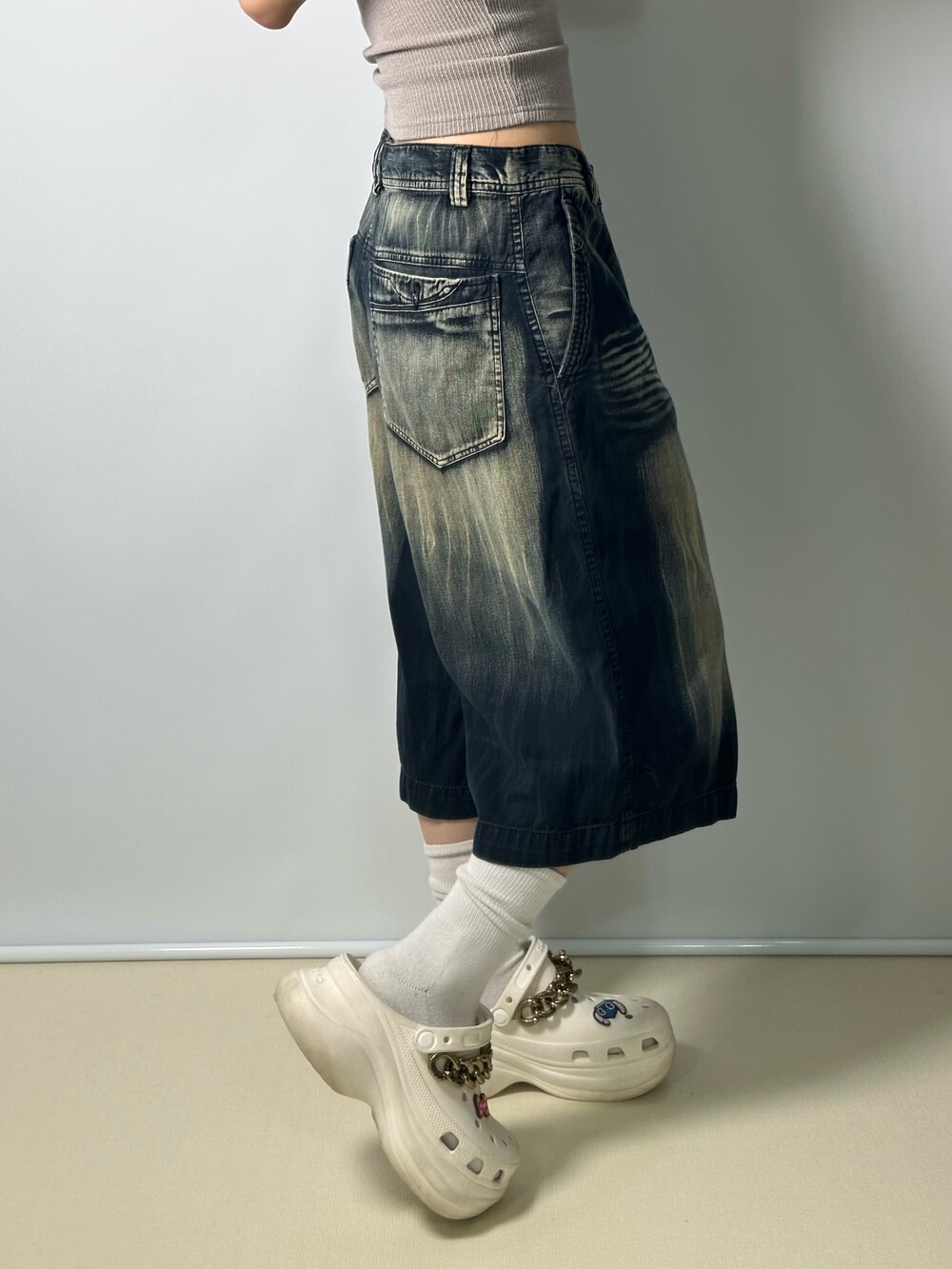 Washing half denim pants
