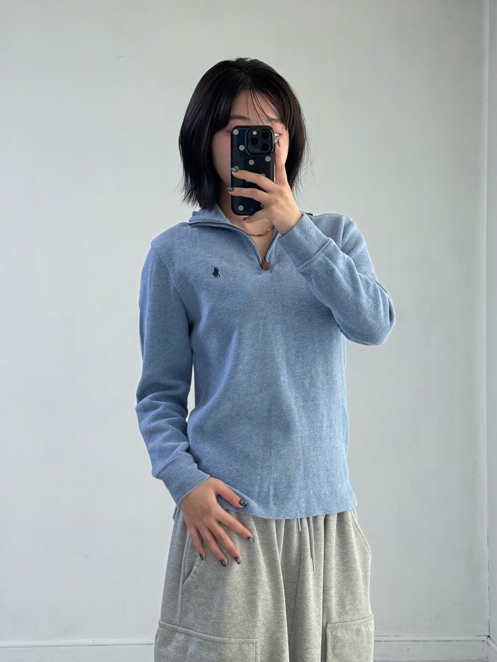 •폴로 스카이블루 반집업 니트 입니다. 여성분들이 정사이즈로 입어주시기 좋은 아이템 입니다!