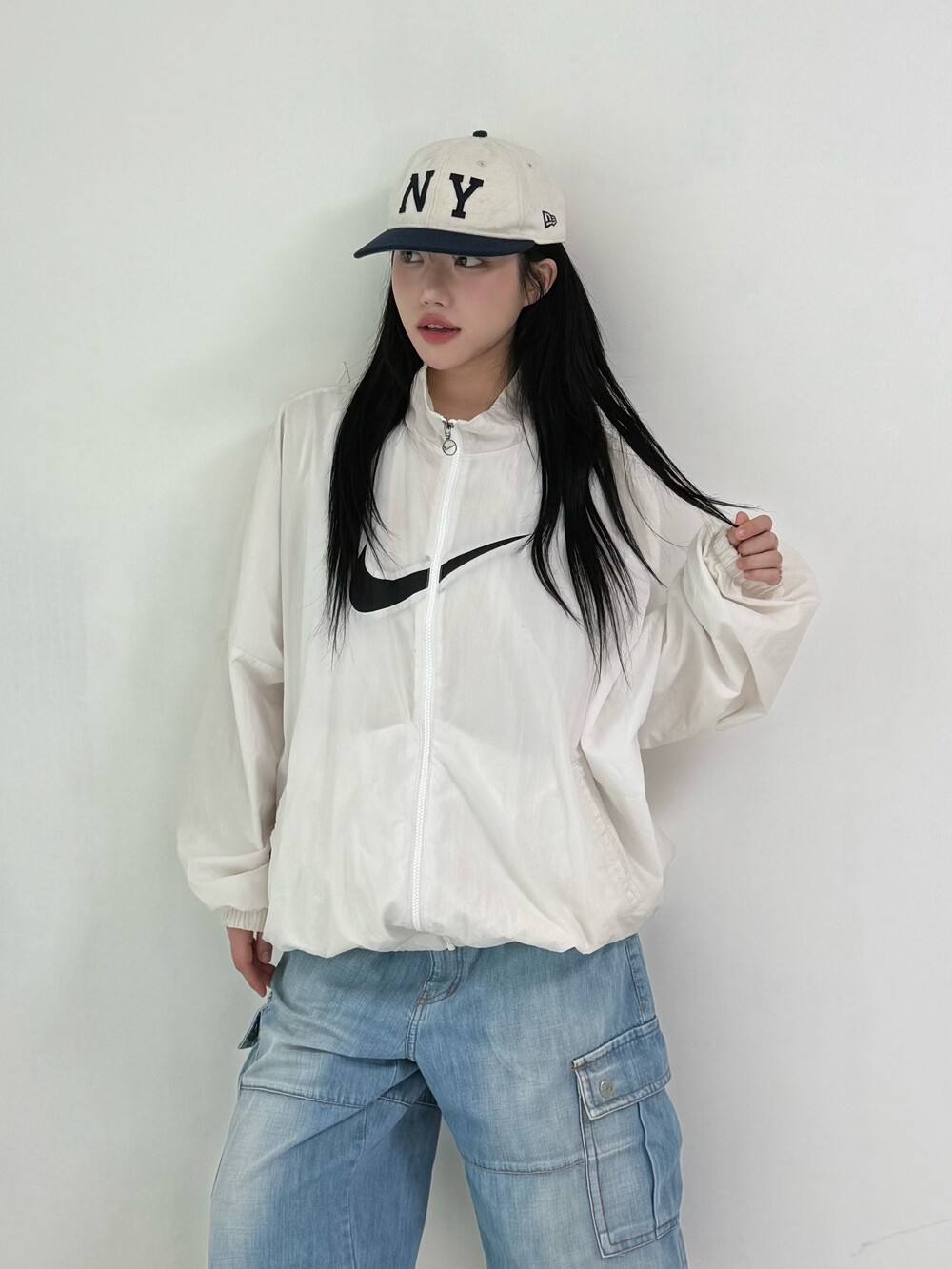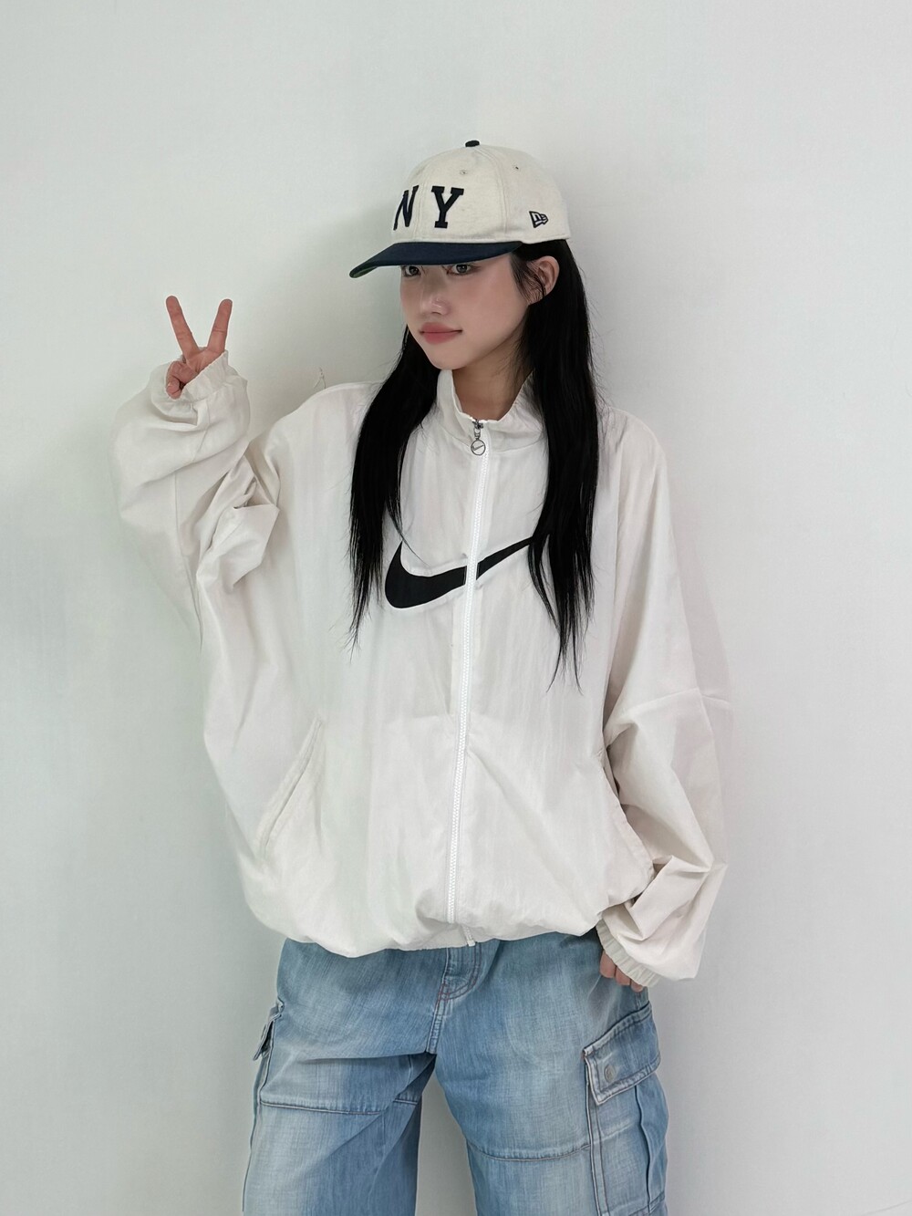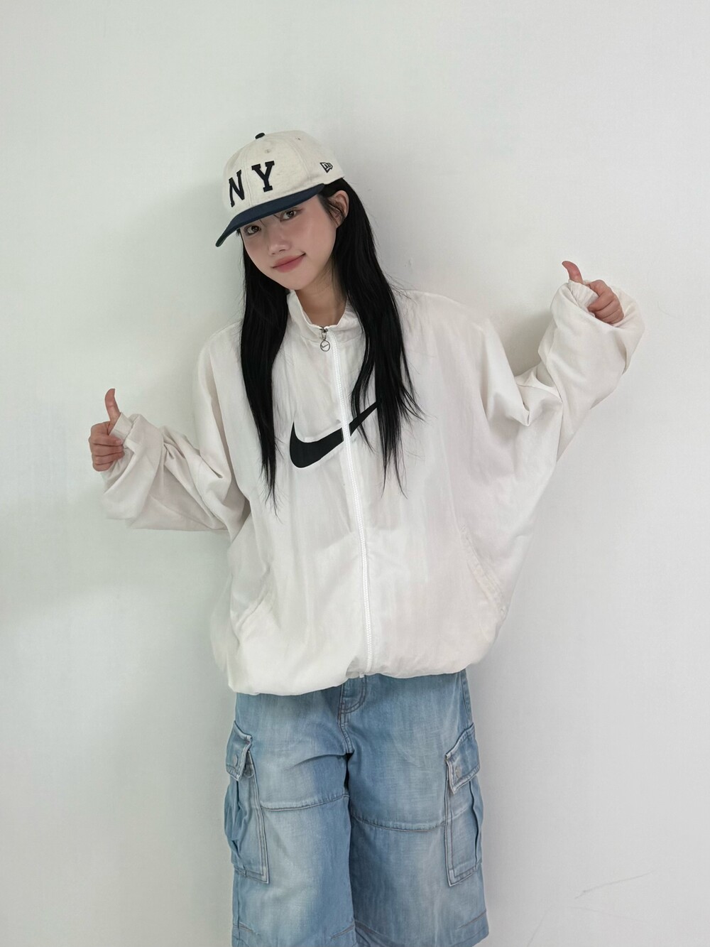 •올드스쿨미 낭낭 나이키 화이트 바람막이에요! 귀여운 가오리 핏에 앞에 크게 들어가있는 빅스우시가 포인트 랍니닷ㅎ.ㅎ 완전 추천😎✌🏻