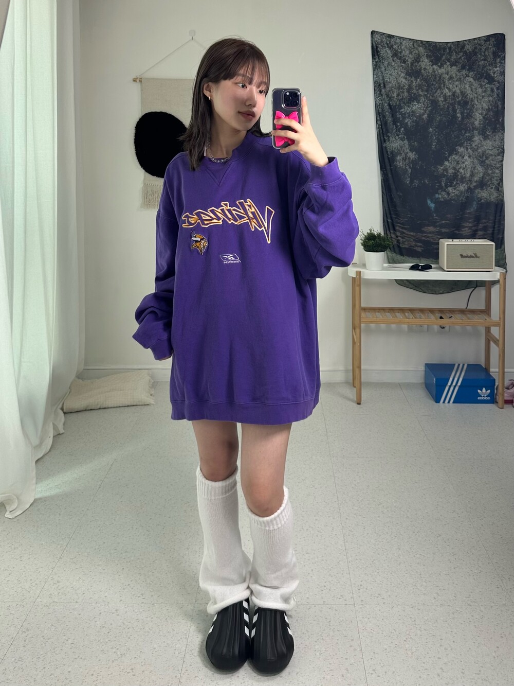 •빈티지하면서 이런 리복 디자인과 핏, 색감을 본적이 없어요! 그만큼 잘 나오지 않는 제품이기도 하고 남성분들 105사이즈 정도 입으시는 분들에게 살짝 오버하게 떨어지는 정도라 우리 요정 식구님들이 착용하실때는 저처럼 원피스 느낌으로 입어주셔도 좋아요! 저는 밑에 간단한 속바지정도 입으셔도 괜찮다고 말씀드리고 싶지만 바이커 팬츠랑 같이 입어도 넘 예쁩니다!ㅎㅎ 레그워머+통굽 크록스 이렇게 신어주셔도 무진장 귀엽고 스포티함 ㅜ 무오데에서만 만날 수 있는 귀여운 센스코디 아니냐며~~