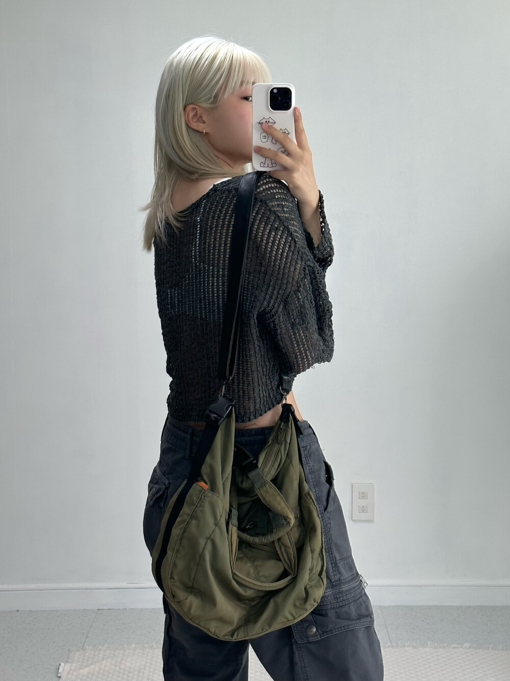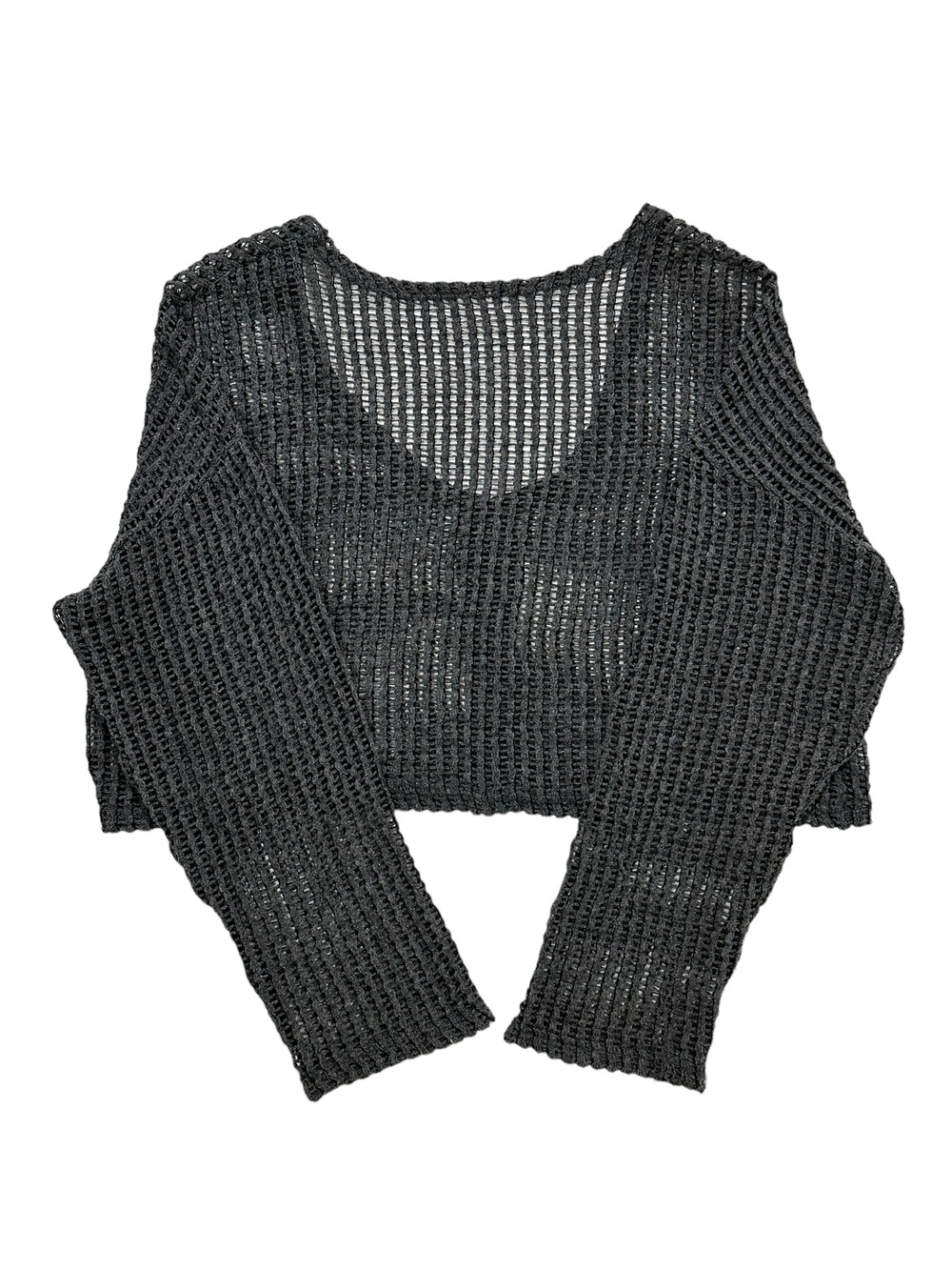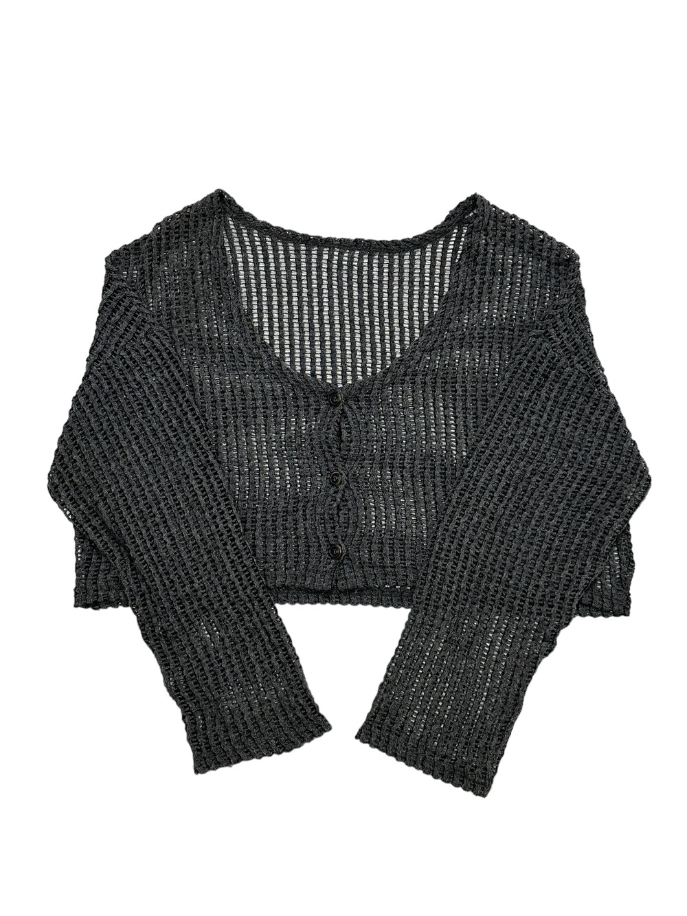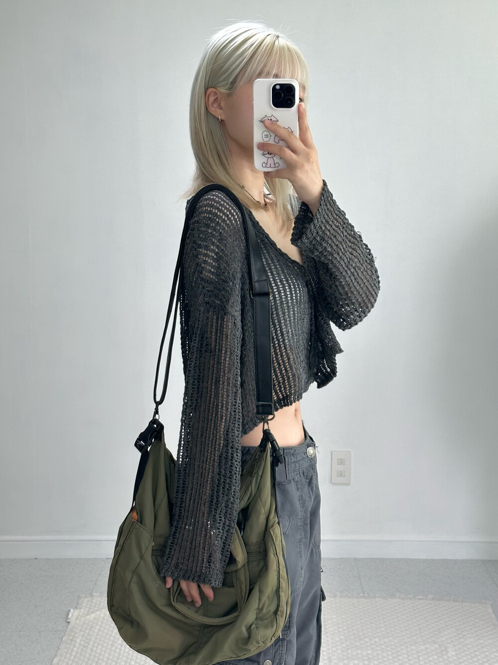 •챠콜컬러의 루즈핏 크롭 가디건이에요! 적당한 크롭기장과 널널함이라 부담없이 착용하기 좋고 섹시하면서 빈티지한 무드까지 꽈악 챙겨가실 수 있습니다>,<