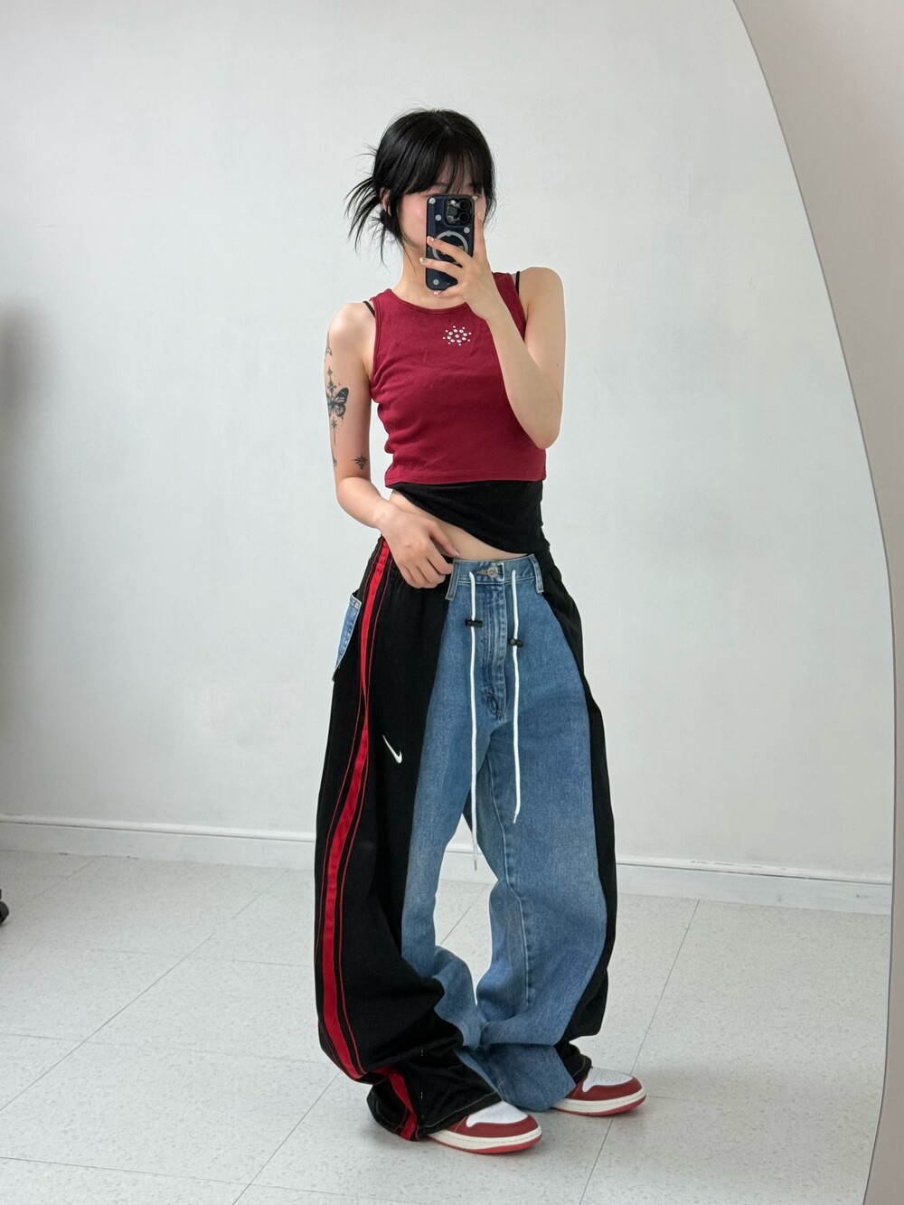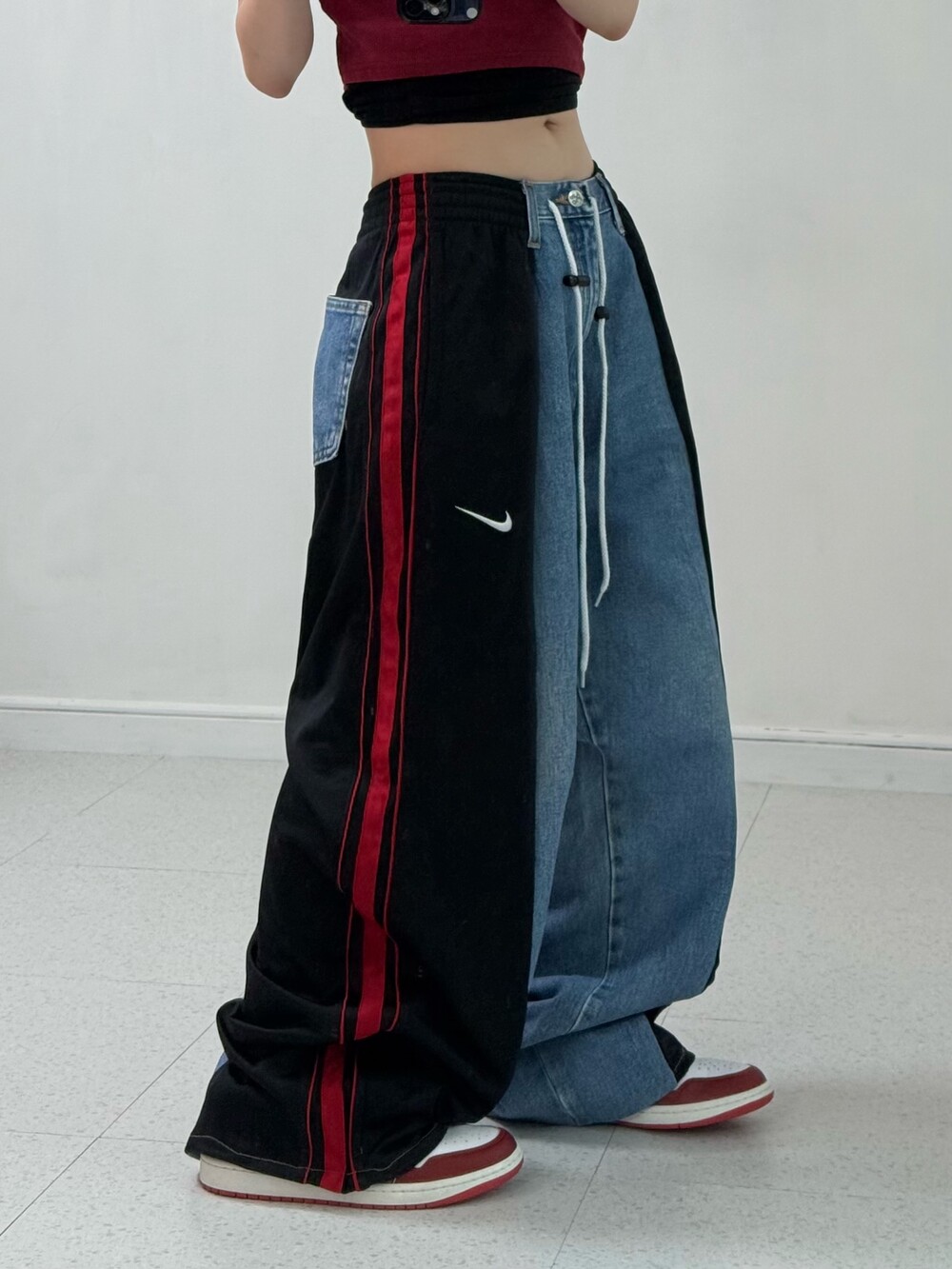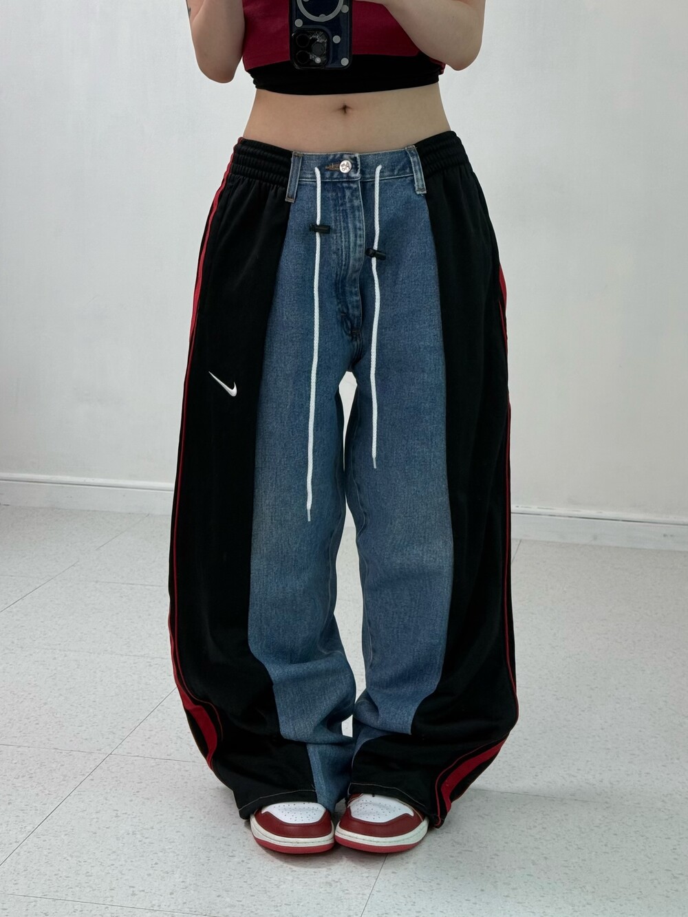 •나이키 츄리닝과 데님팬츠가 만났다! 세상에 하나뿐인 유니크한 팬츠에유,,