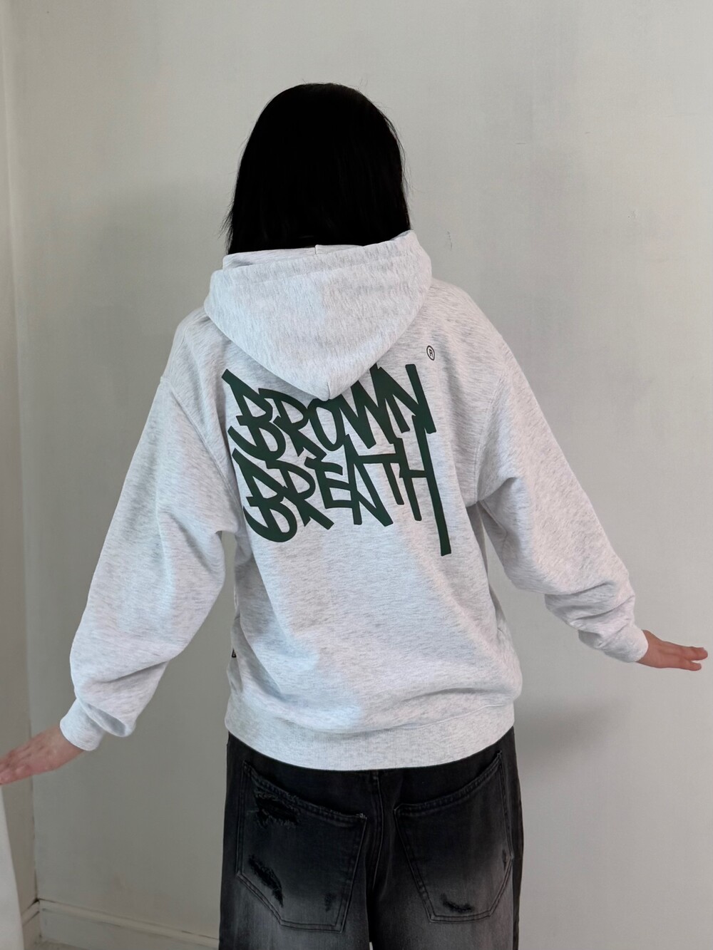 •식구님들 좋아해주시는 브라운 브레스 후드에요! 멜란지 컬러에 딥그린 로고 조합 아주 굿 이지요. ㅋㅋ