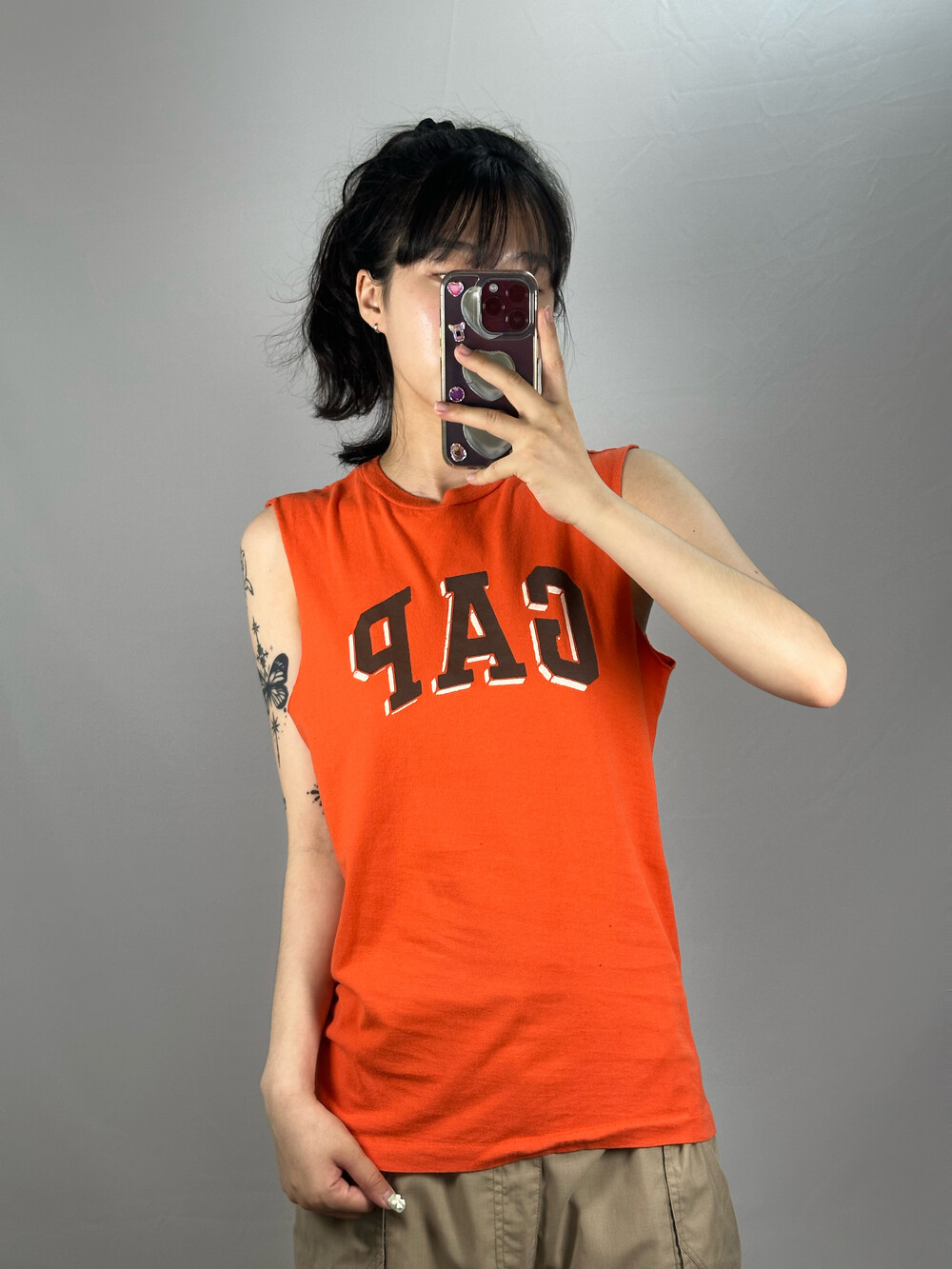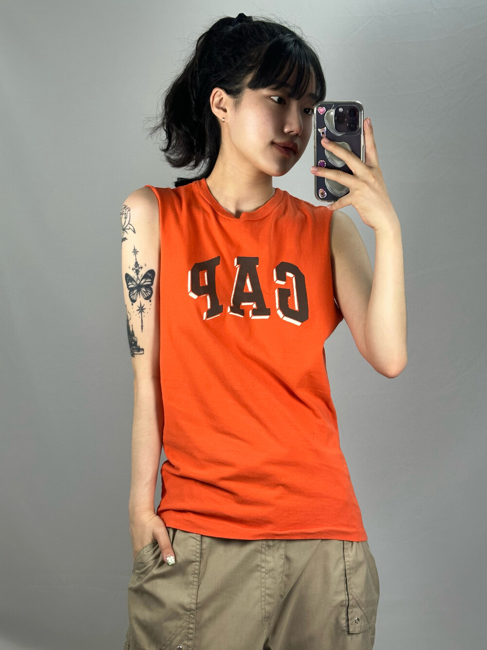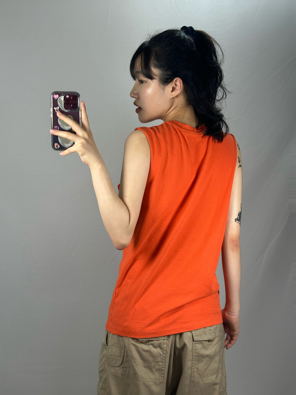 •오렌지 색감의 통통 귀여운 민소매에요! 베이지 팬츠랑 함께 매치했는데 웜톤 분들께 엄청 잘어울릴것같아요..🧡
