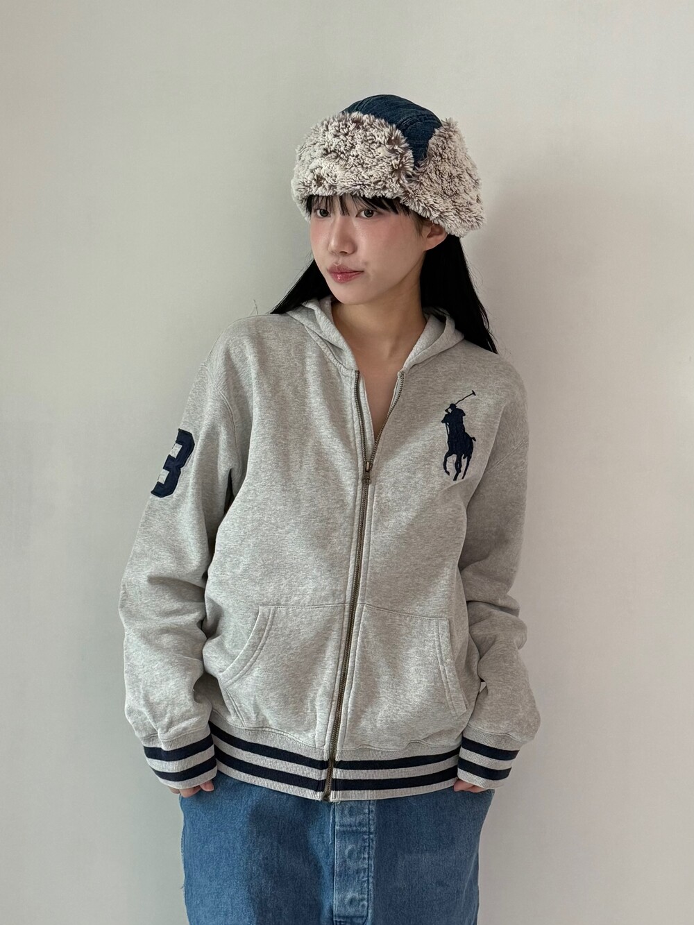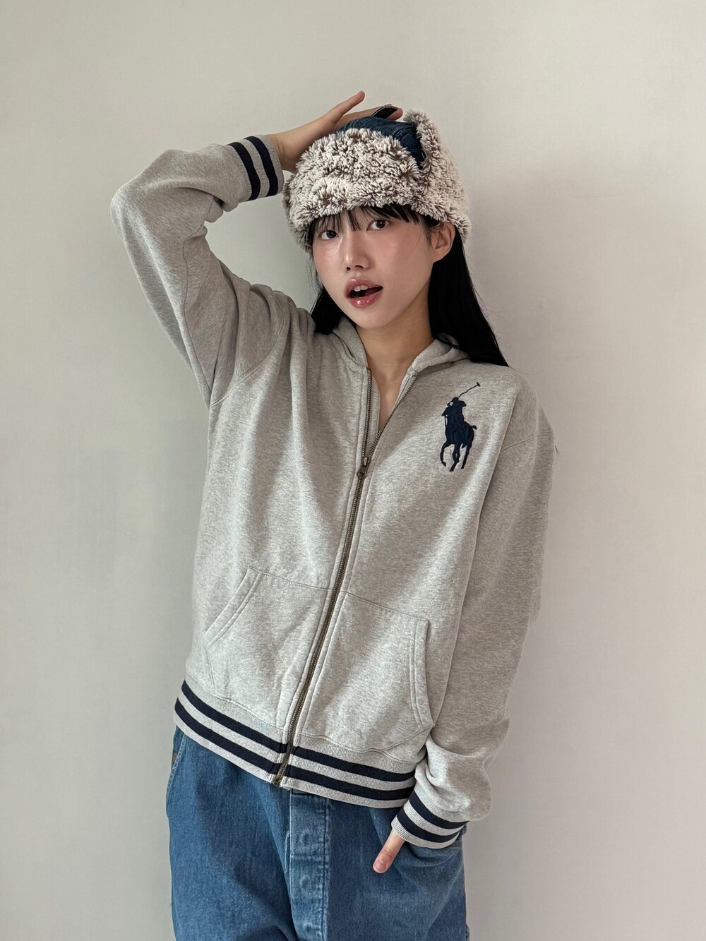 •빅포니 로고가 들어가있는 폴로 후드집업 이에요! 무난하게 느껴질 수 있는 그레이 컬러지만 빅포니 덕에 뽀인투🖤