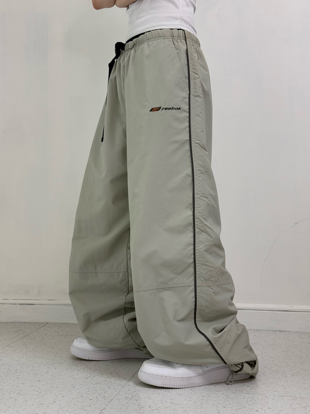 •와이드루즈핏의 리복 팬츠에요! 허리는 스트랩이 들어가있어 편안하게 허리 조절해주시면 되구 밑단조거 가능 합니다! 핏 증말 예뻐유..><