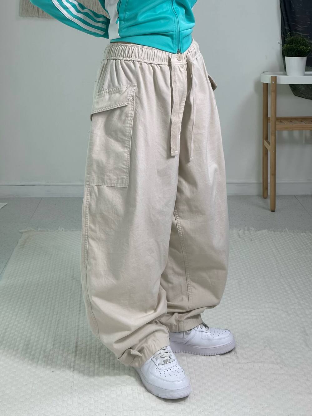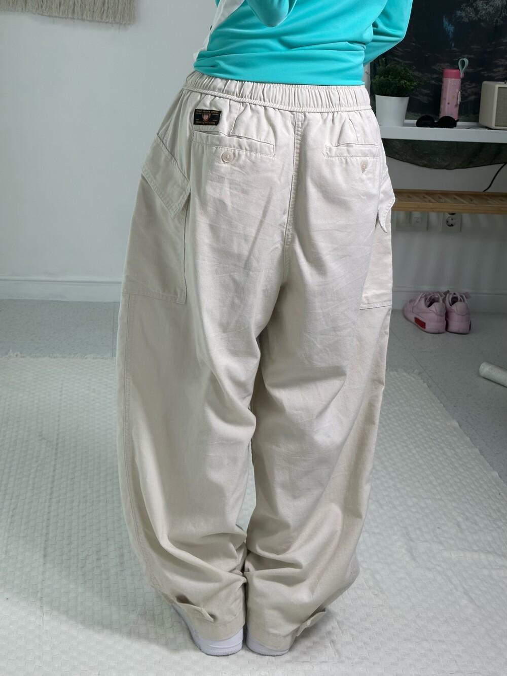 •후리추리한 실루엣으로 떨어져 더욱 마음에 들었던 팬츠에요! 아이보리 컬러에 깔끔한 상태, 굵빵한 스트랩 까지- 귀엽고 아방한 맛으로 입어주세요!
