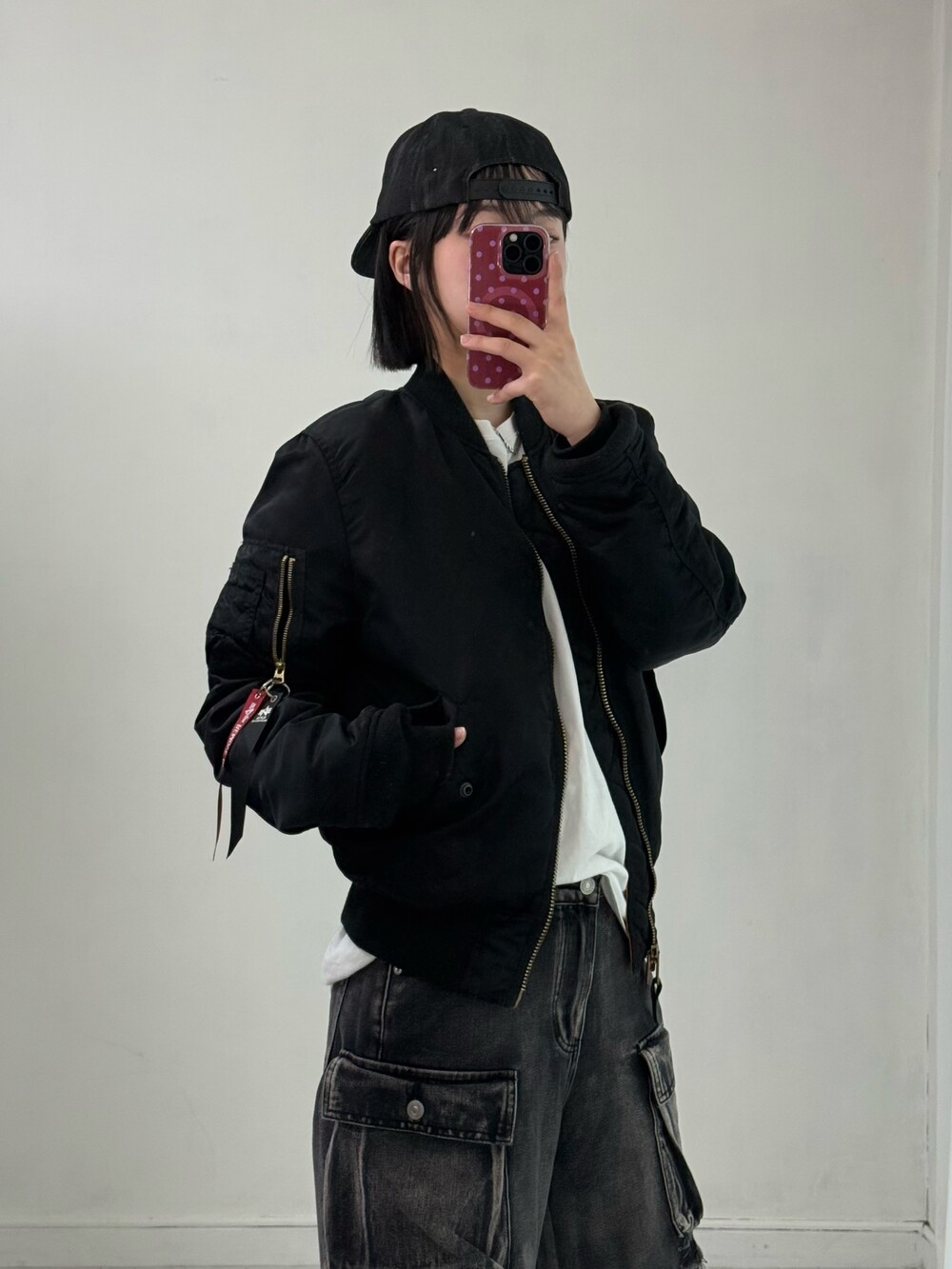 •알파 인더스트리 블랙 항공점퍼 입니다. 간단하게 아우터로 걸쳐주시기 좋아요- 안에 후드와 함께 코디해주셔도 굿! 리버시블 입니다ㅎ.ㅎ