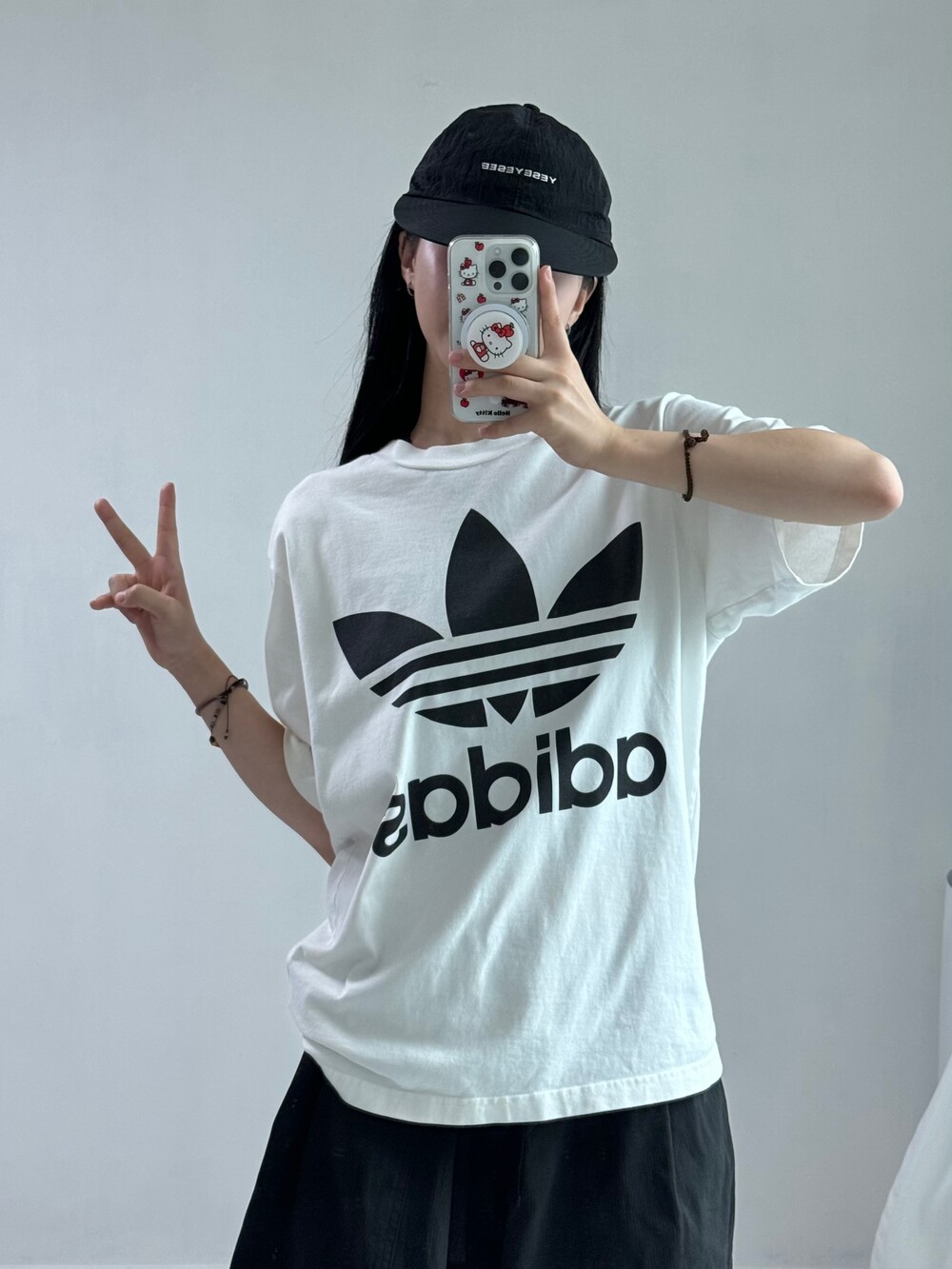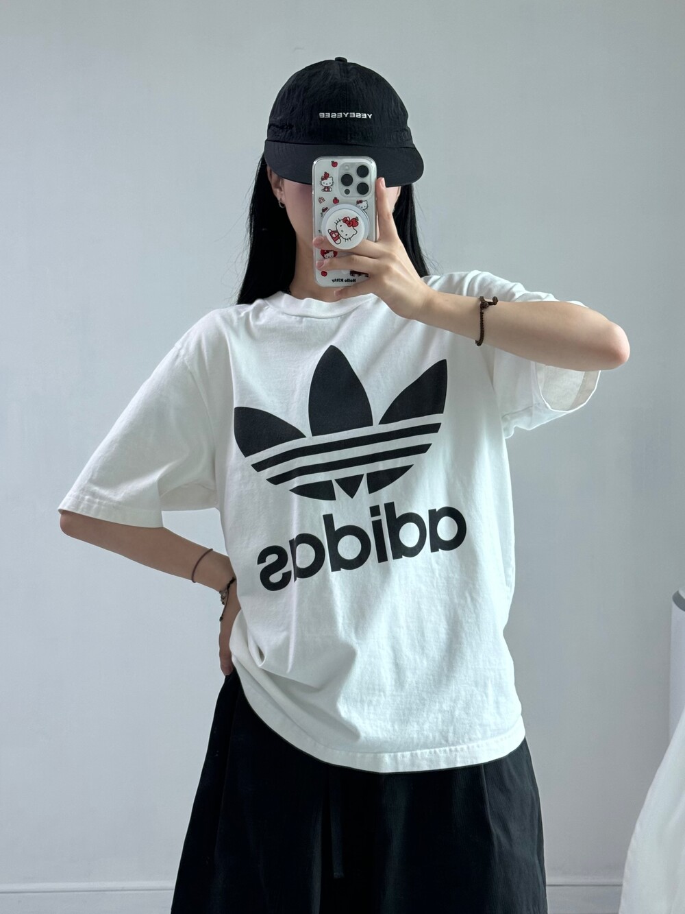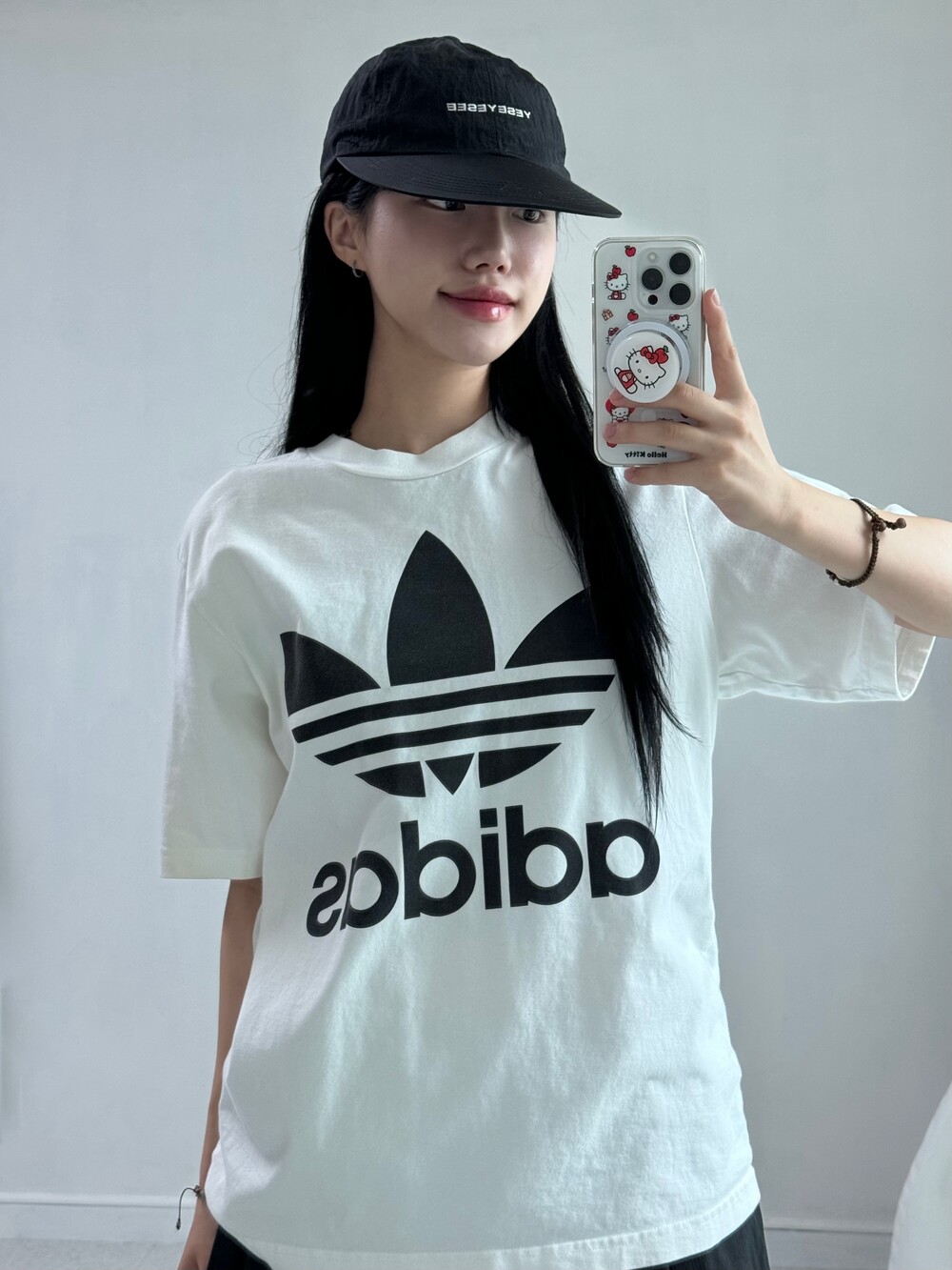 •아디다스 파이어버드 빅로고 반팔티🖤 예쁜아방핏이라 자꾸 손이 가는 데일리템이라구요👍🏻