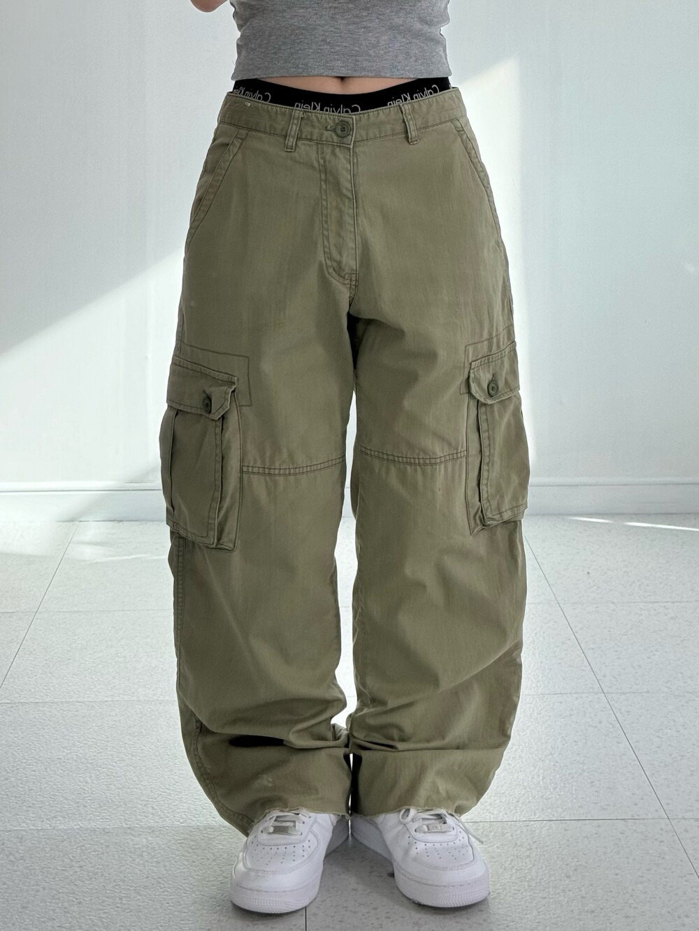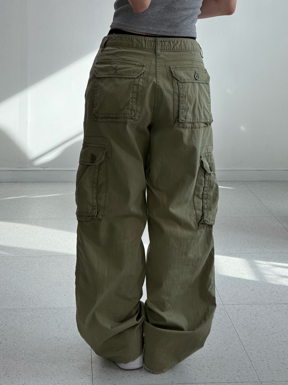 •빈티지한 무드가 돋보이는 카키카고팬츠 입니다! 엄청 아방한 느낌보다는 깔끔하면서 루즈한 느낌이라 부담없이 착용해주시기 너무 좋아요 🖤