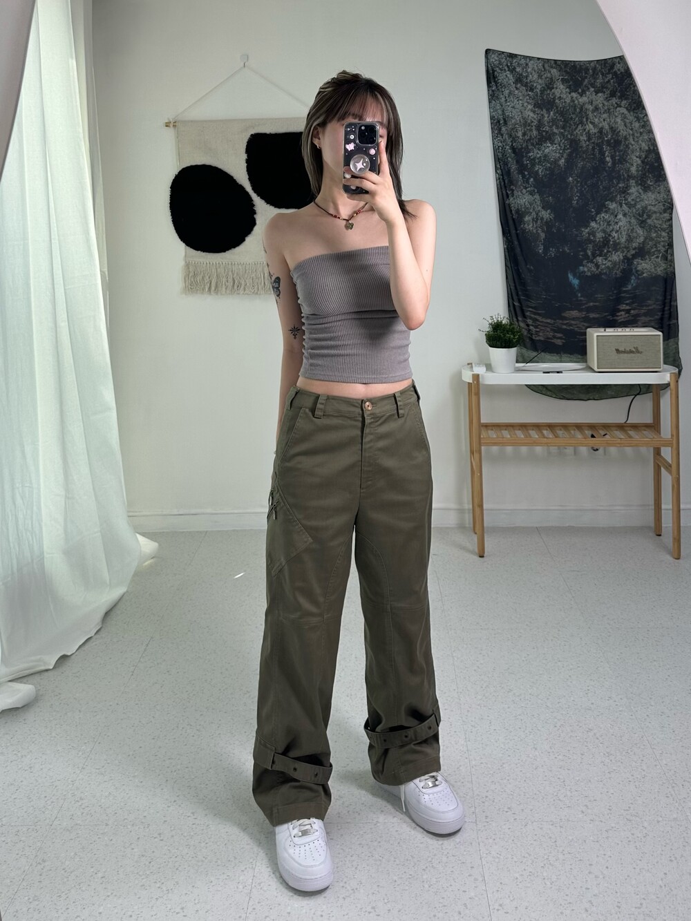 •발목에 벨트 형식으로 디자인 되어 있는것이 넘 예쁘지 않나요.. 심지어 사이드 포켓은 사선으로 배치 되어 있어 더우구 유니크 하답니다ㅜ! 강추!