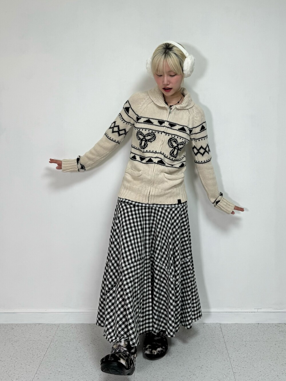 •귀엽게 착용해주시기 좋은 체커보드 스커트에요ㅎㅎ 피셔맨 니트랑도 함께 입어주시기 좋습니다🖤