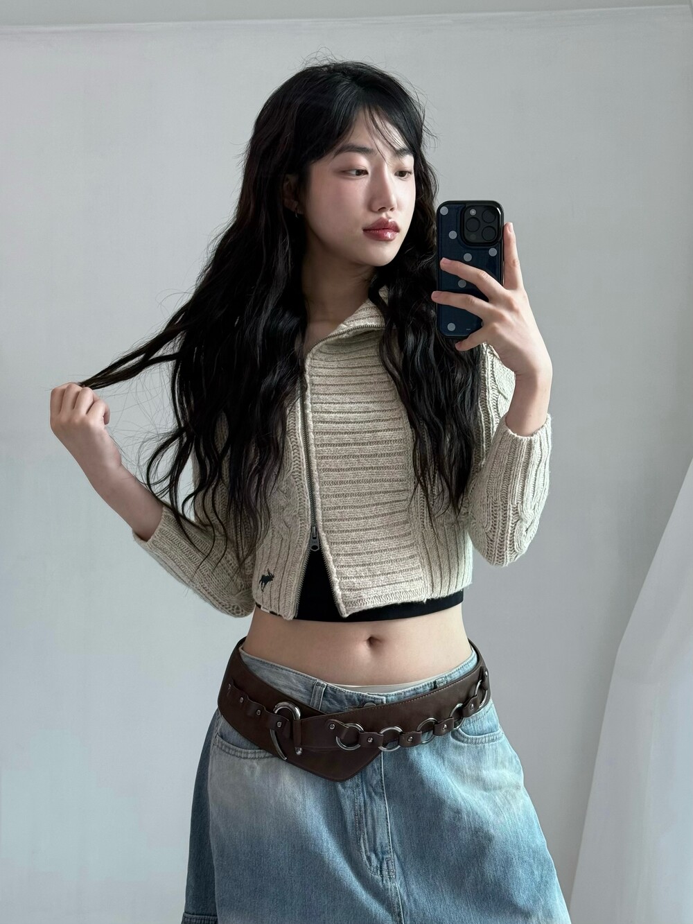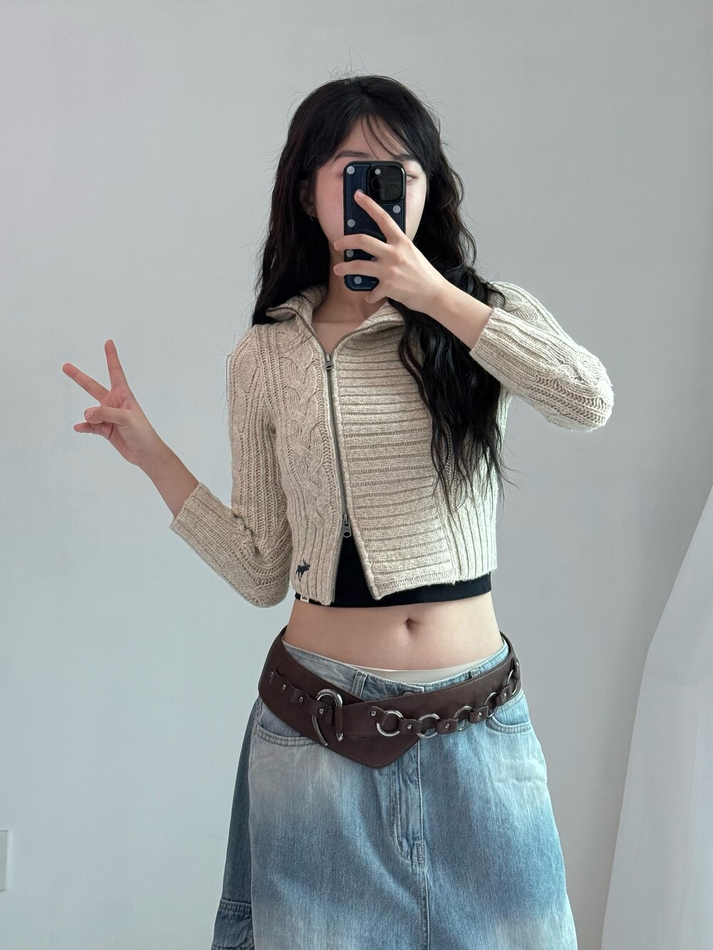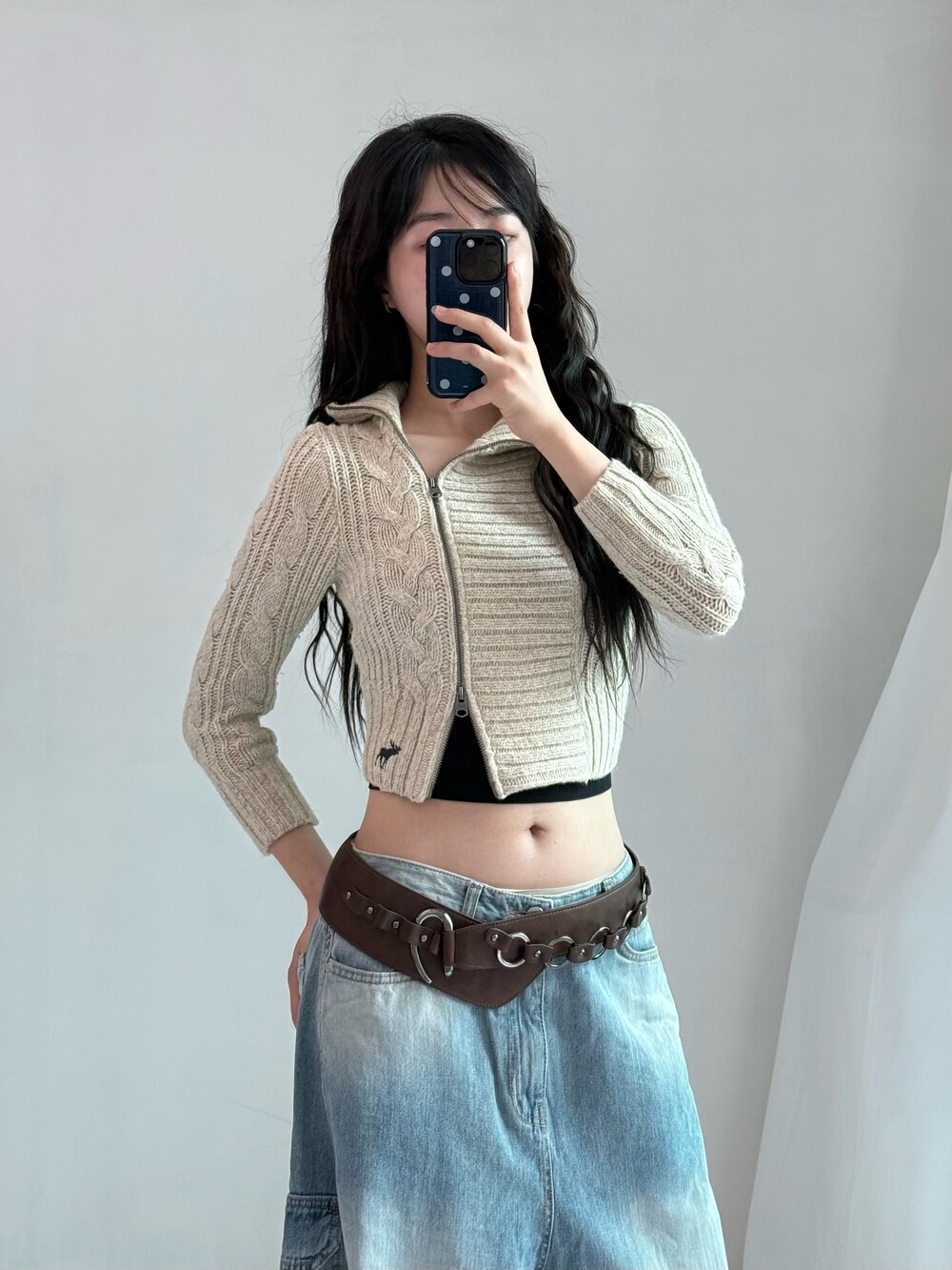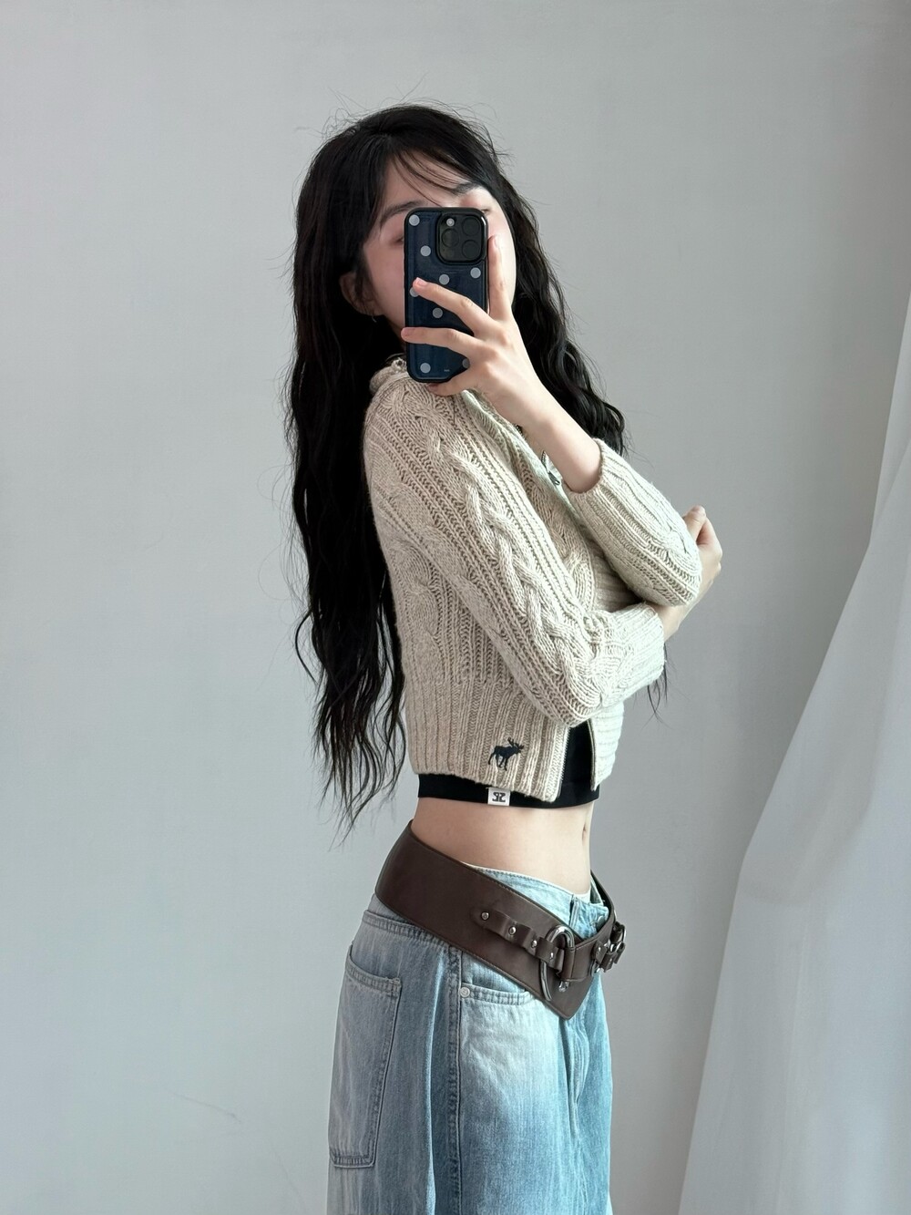 •아베크롬비 베이지 니트 집업이에요! 크롭기장에 소매도 짧은 편이라 더 귀엽게 입어주시기 좋은 아이템이랍니다 ㅎㅎ
