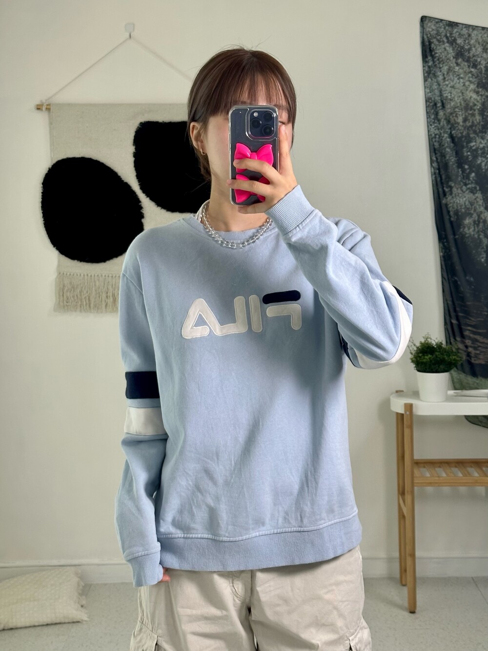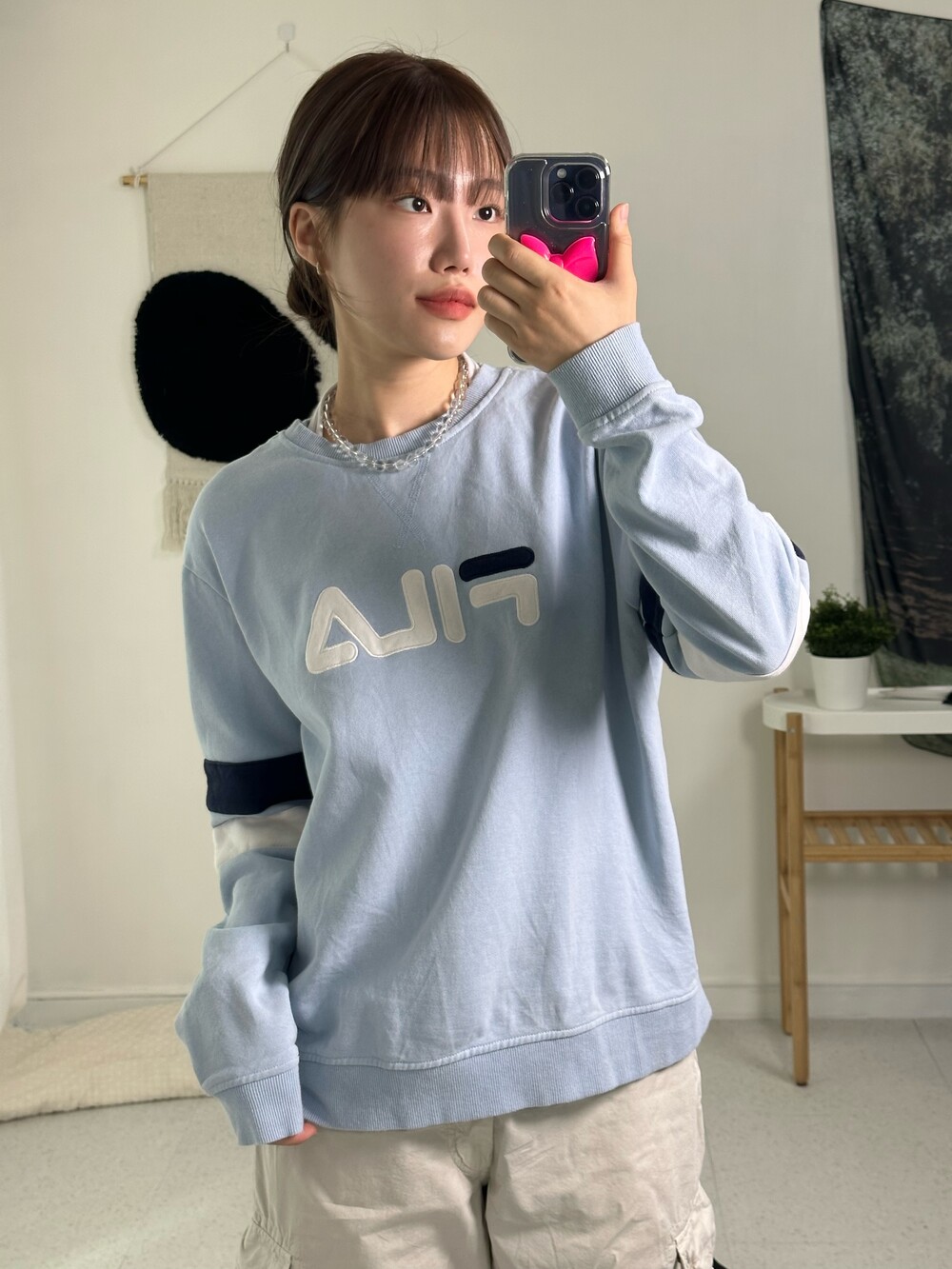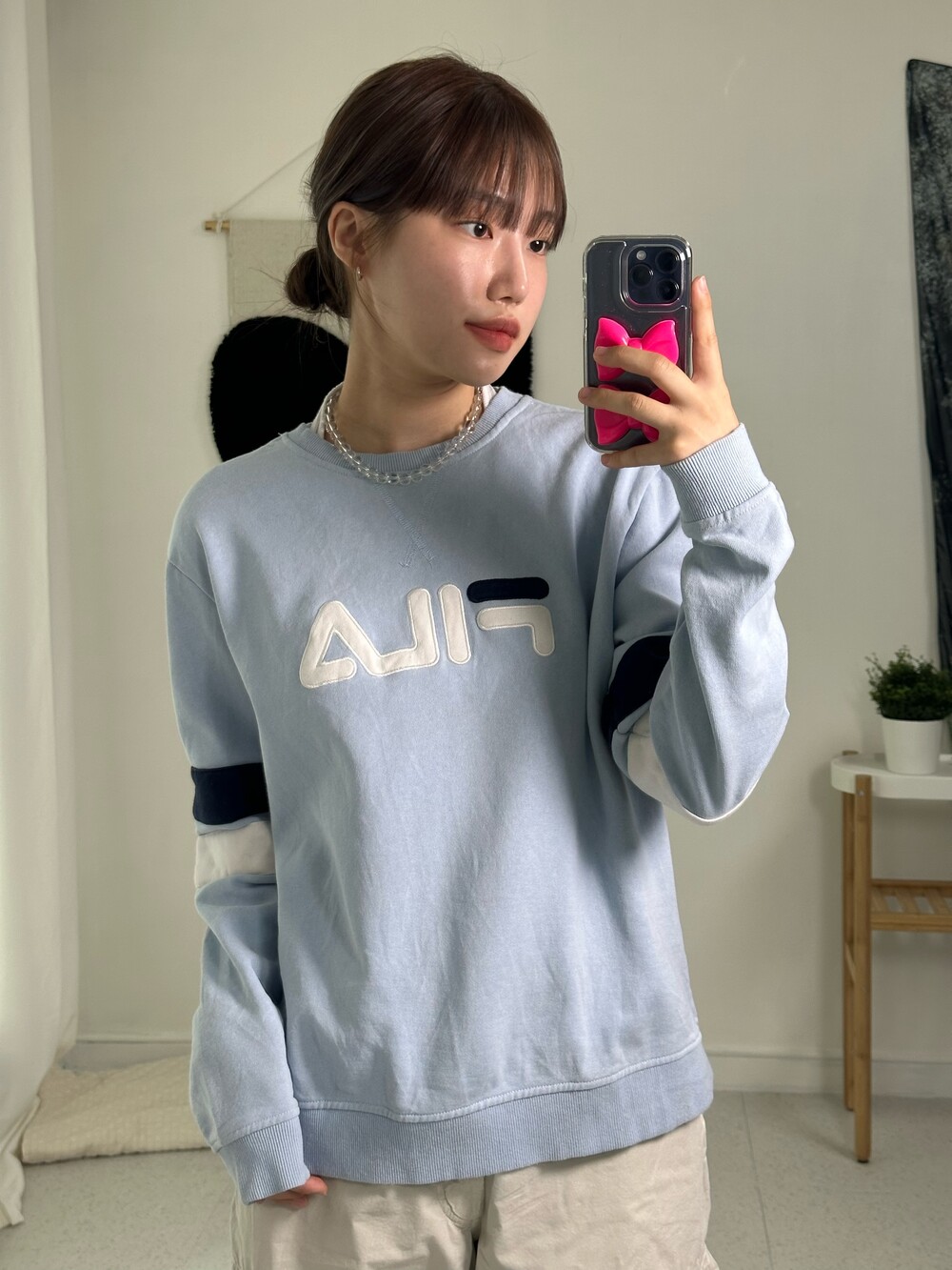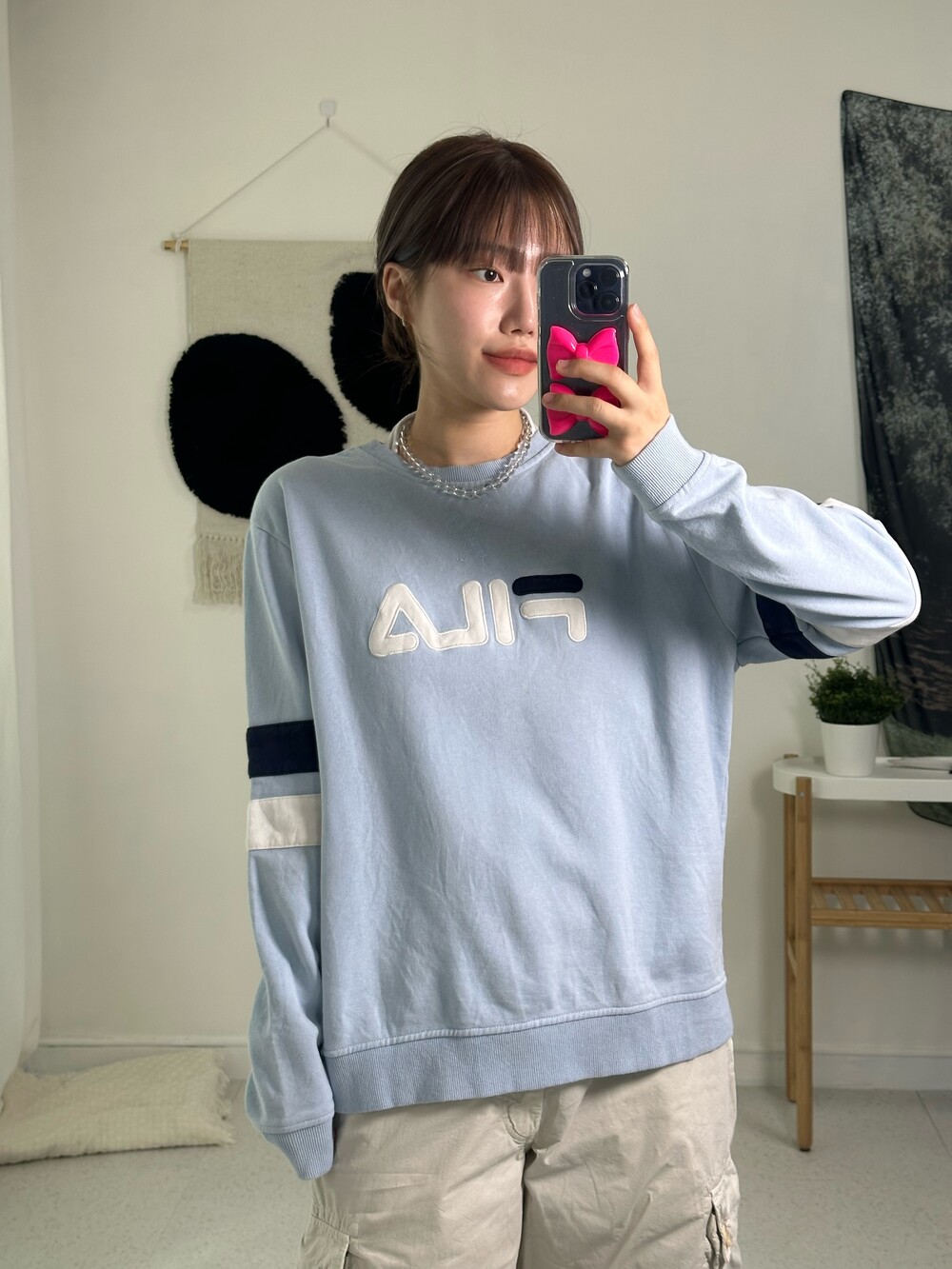 •하늘색 컬러감이 너무 사랑스러운 맨투맨.. 마음이 몽글몽글,, 시보리가 있지만 쨍쩅하지 않아서 오히려 핏이 더 예쁘더라구요! 밑으로 툭 떨어지는듯 하면서 살짝 잡아주는? 배색 조합이 화이트와 네이비가 섞여 빈티지에서만 만날 수 있는 조합인것 같아 더 소장가치템~~