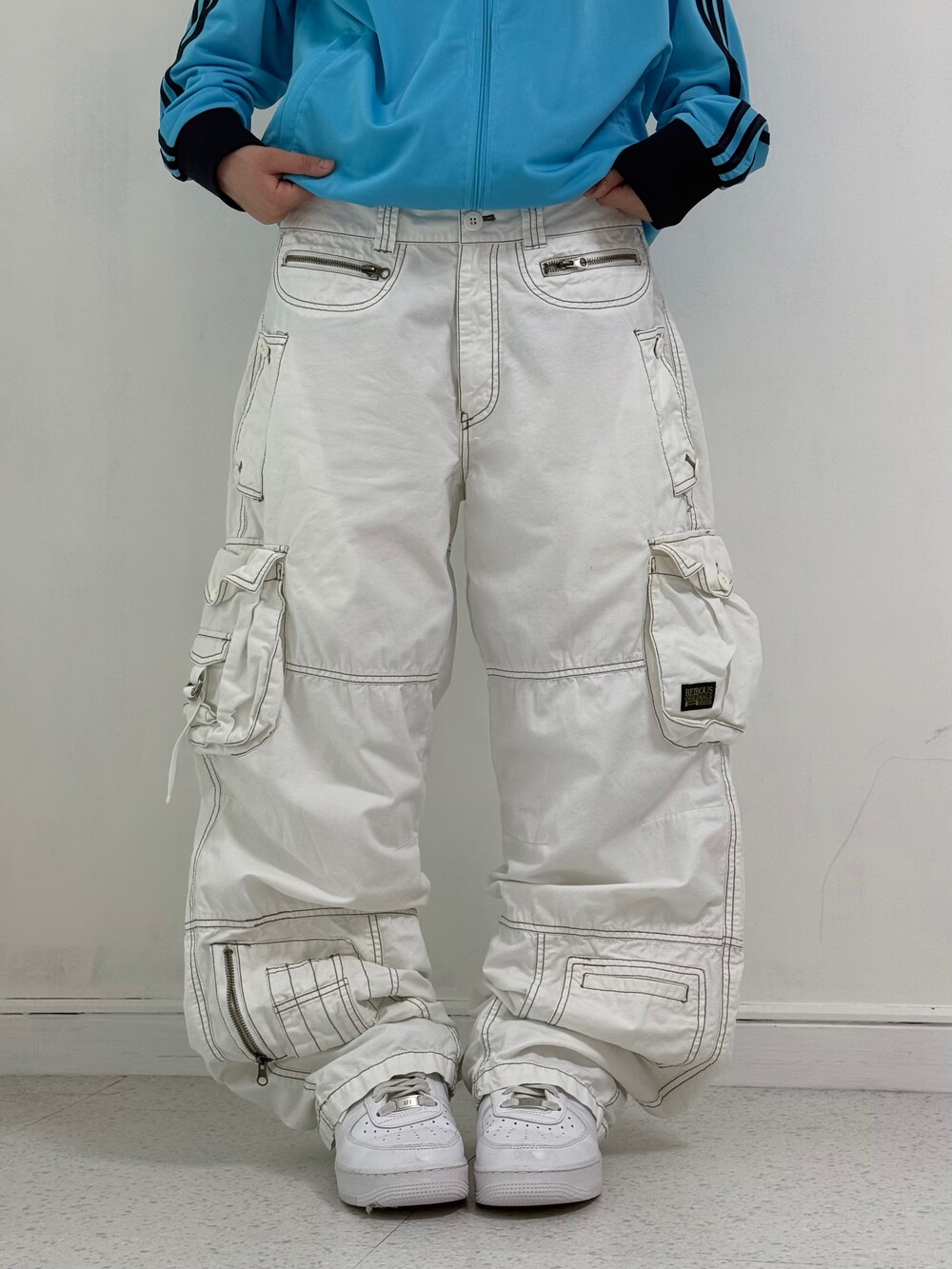 •REIBOUS 사의 화이트 카고팬츠 입니다. 스티치 포인트가 굉장히 귀여운 아이템이에요ㅎㅎ 곳곳에 디테일 미쳤다..>_<