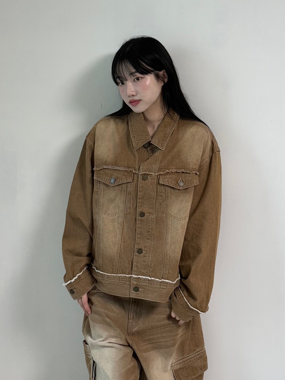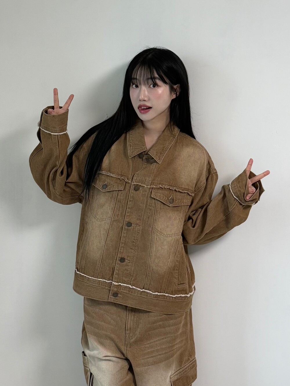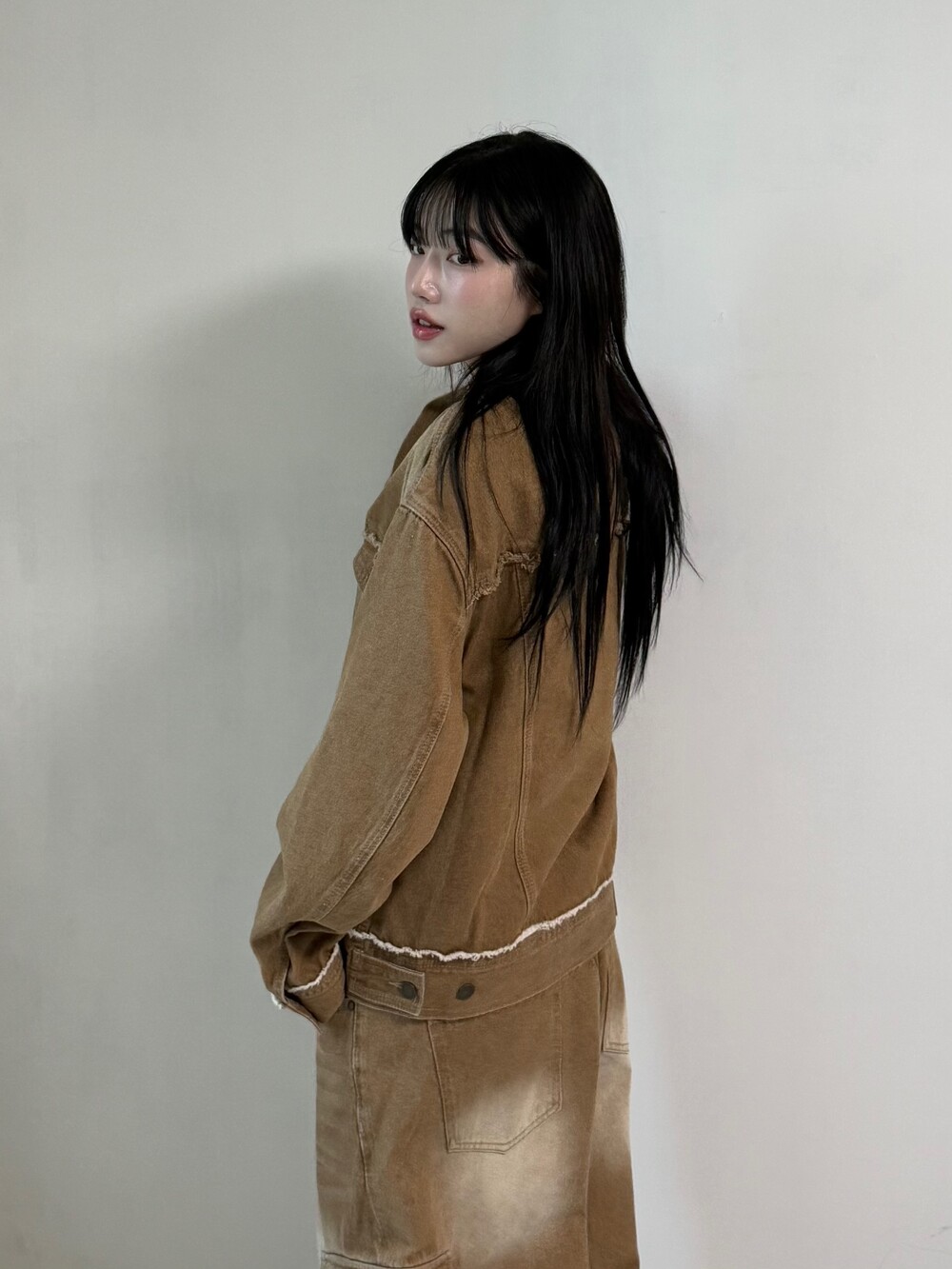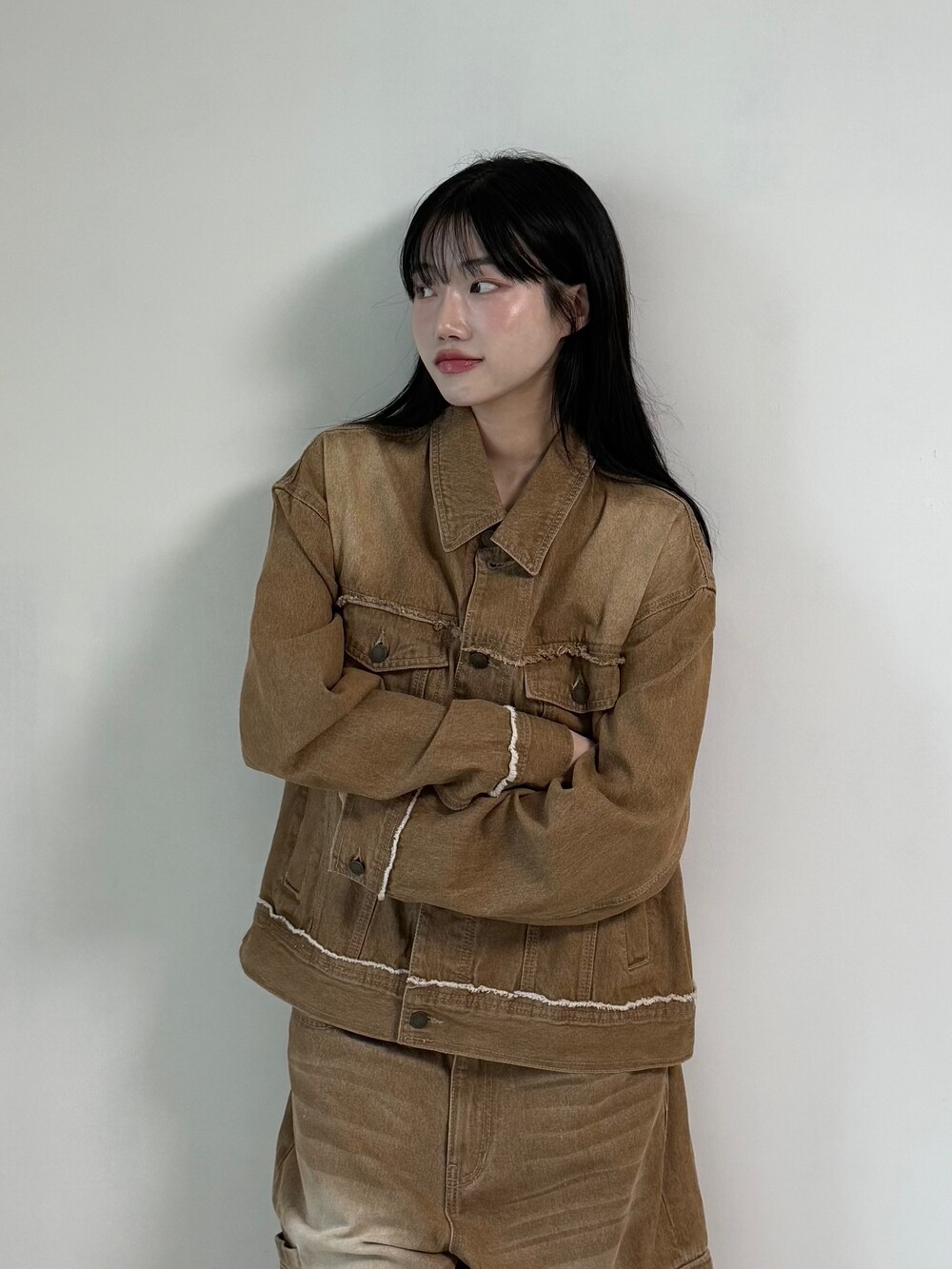 •빈티지한 워싱감이 예쁜 브라운 자켓이에요! 여성분들에게는 저처럼 오버핏으로 떨어지며 남성분들 착용시 정핏으로 완전 든든한 남친룩 완성 ㅋㅋ