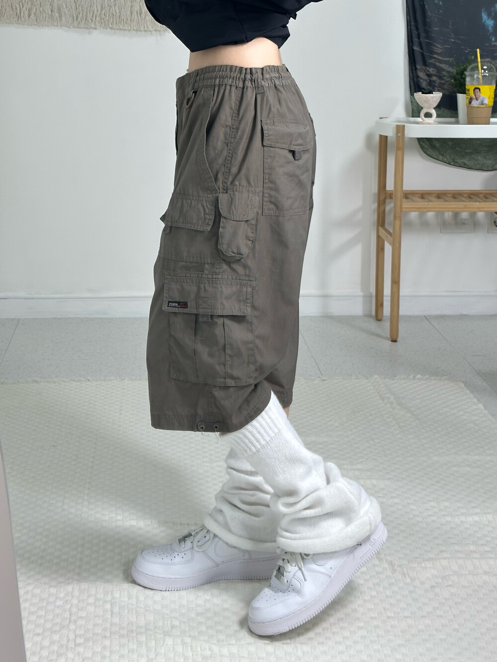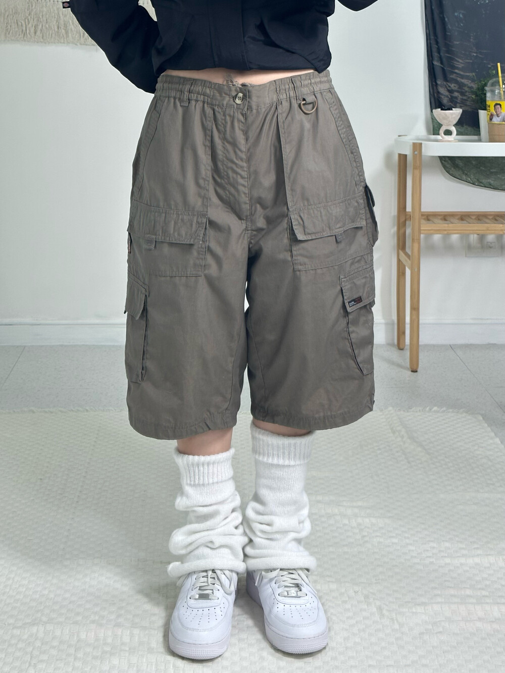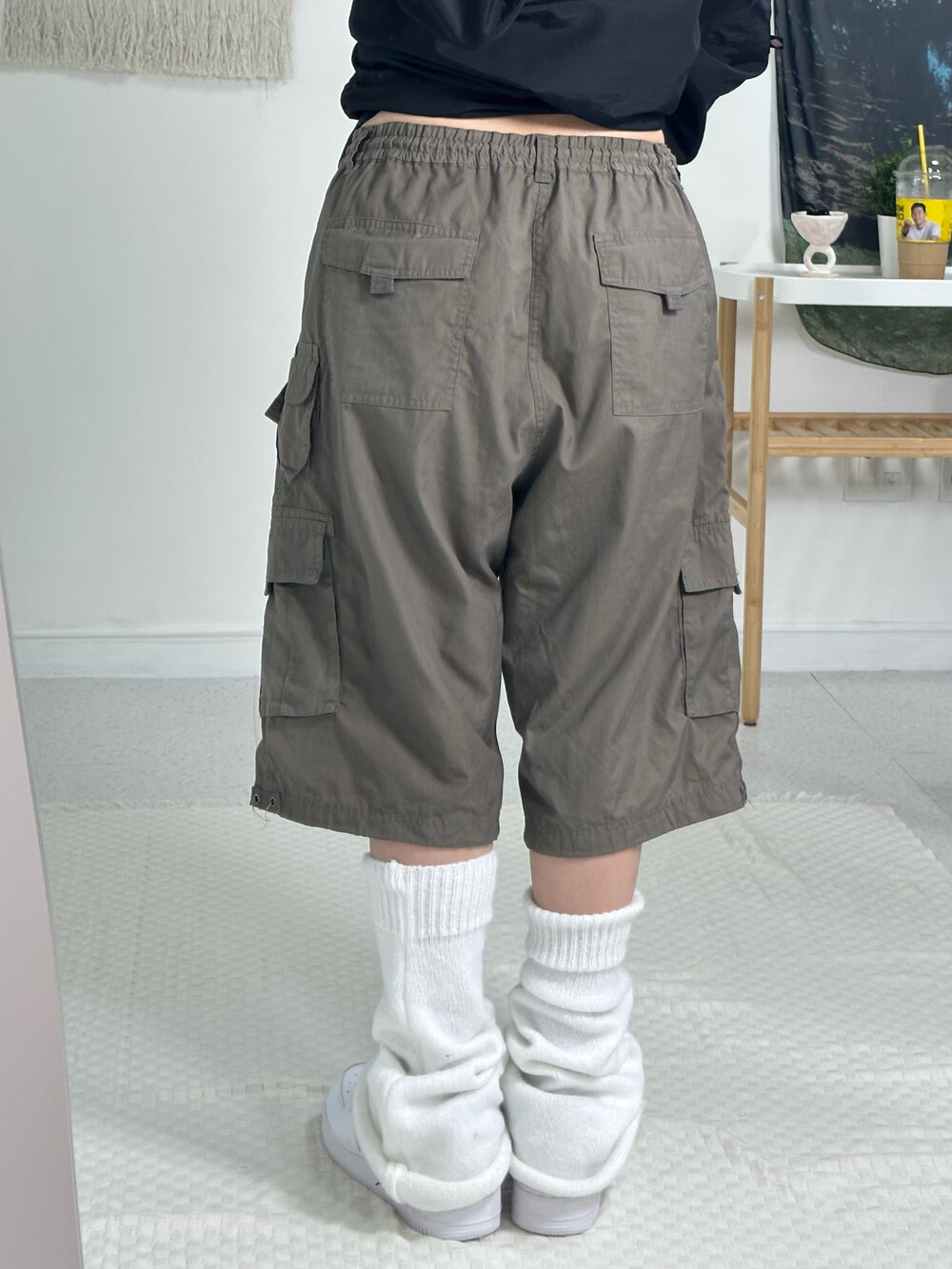 •카키컬러의 카고반바지에요! 인기만점 롱카고 디자인에서 댕강 자른 디자인이라고 생각해주시면 되구요?.. 루즈한 핏이 예쁜 제품이라 자신있게 추천 드립니다요 ㅎㅎ