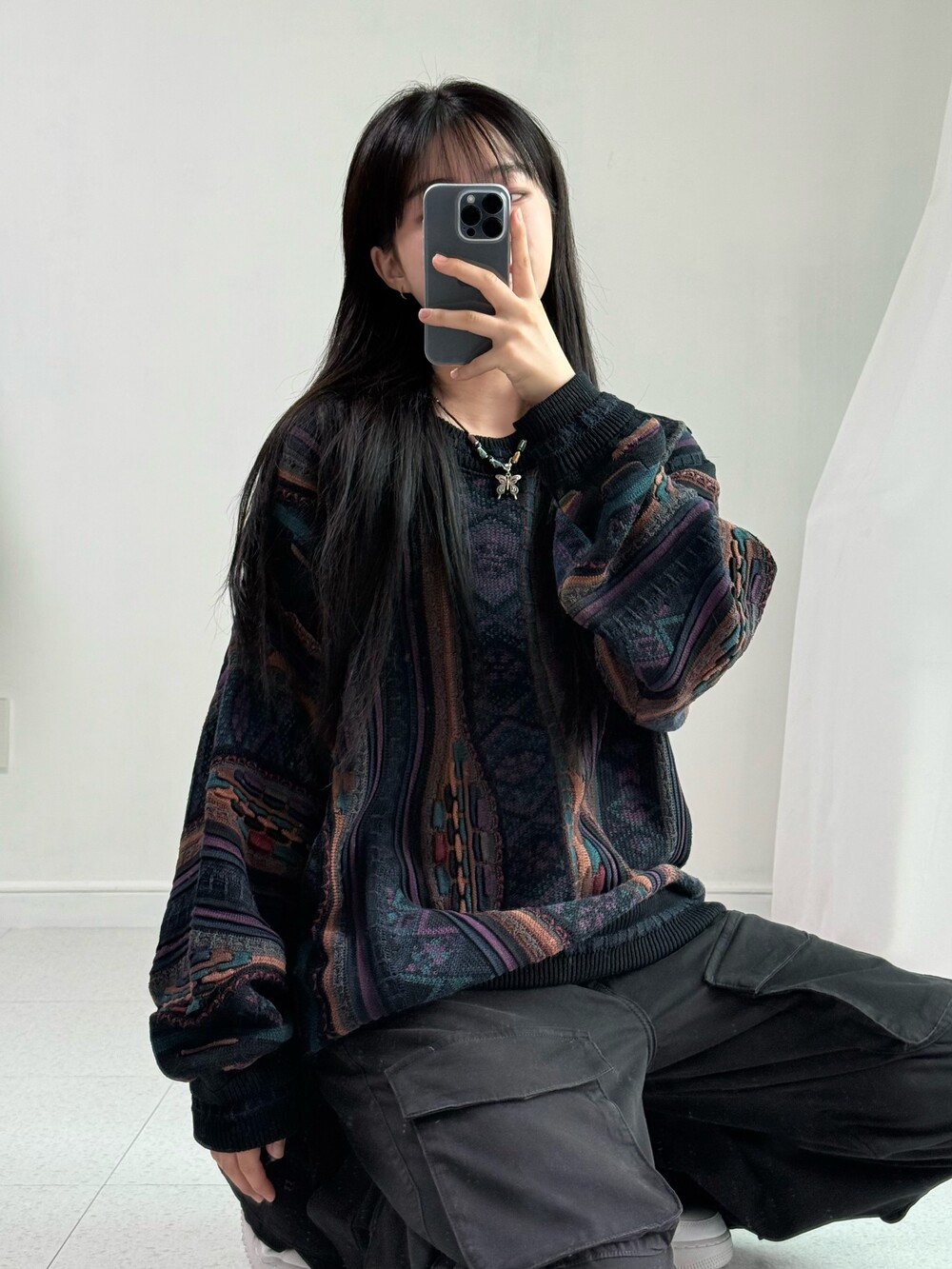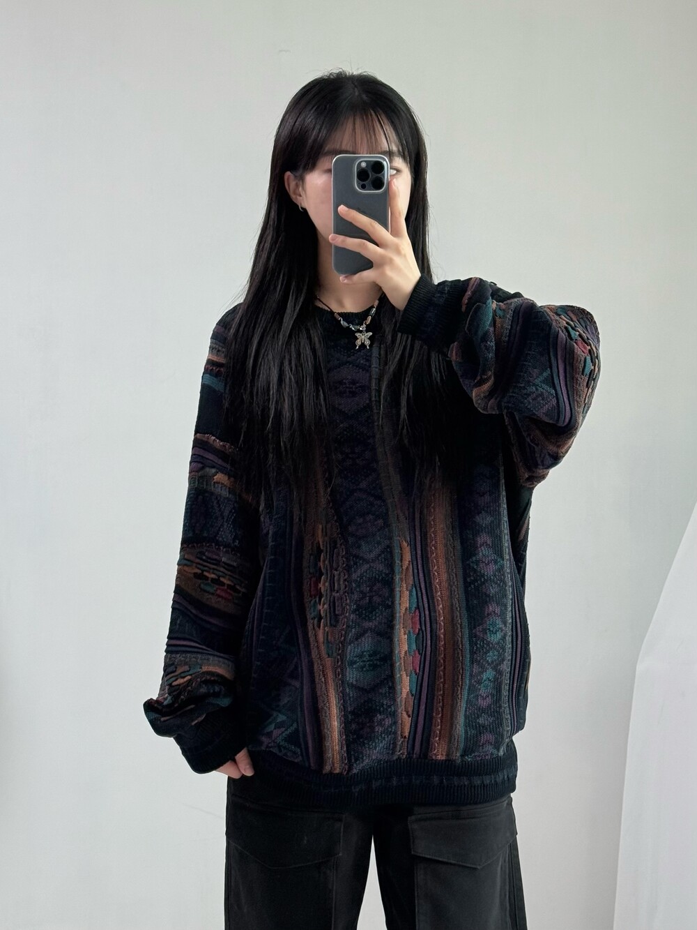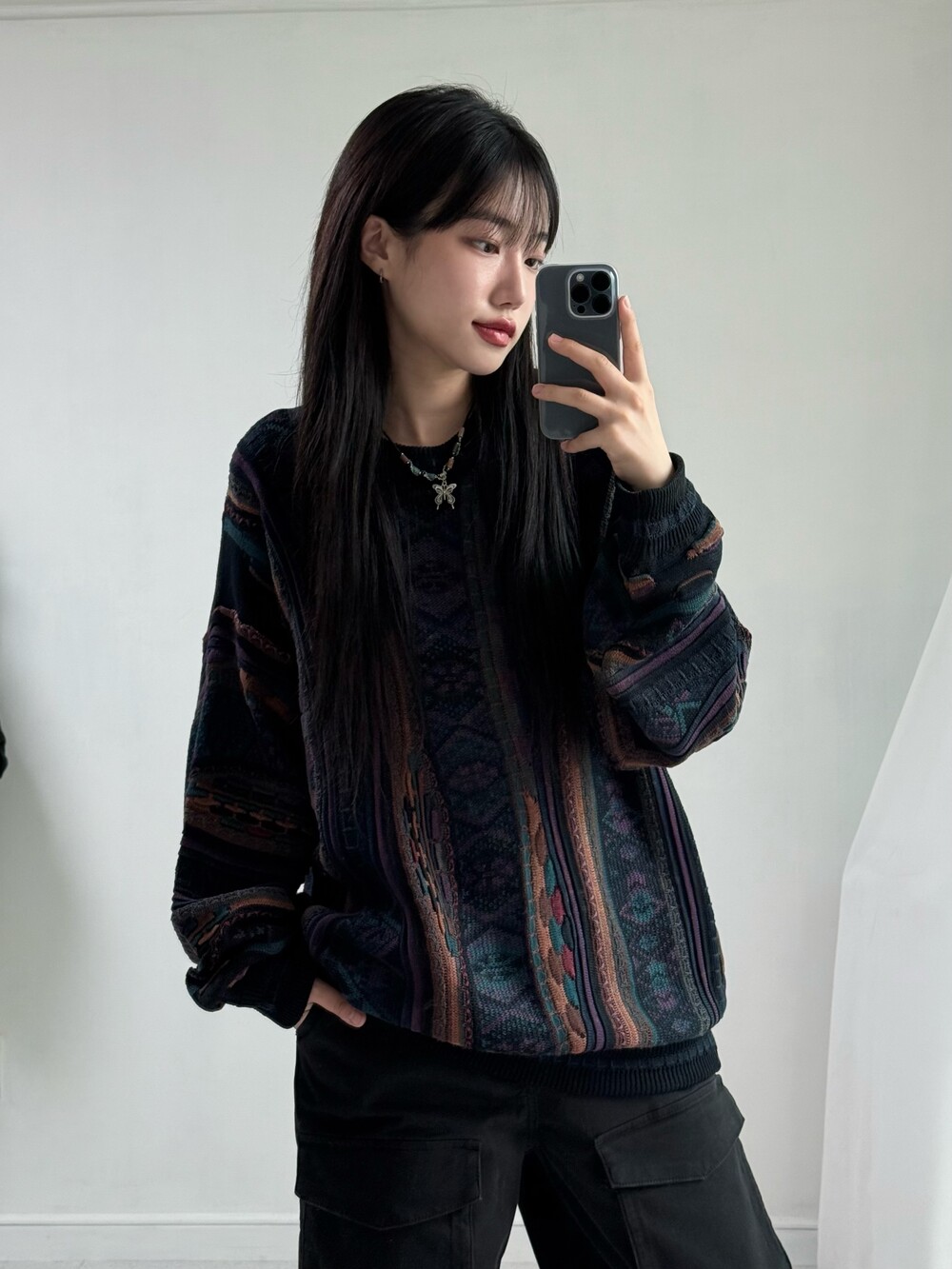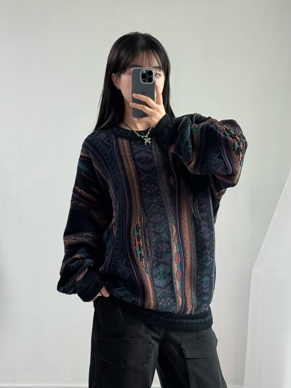 •빈티지 케이블 니트에요! 아방하면서 동시에 묵직한 실루엣까지 연출하실 수 있는 아이템이라 멋스러움이 뚝뚝 떨어지는 아이템이랍니다!