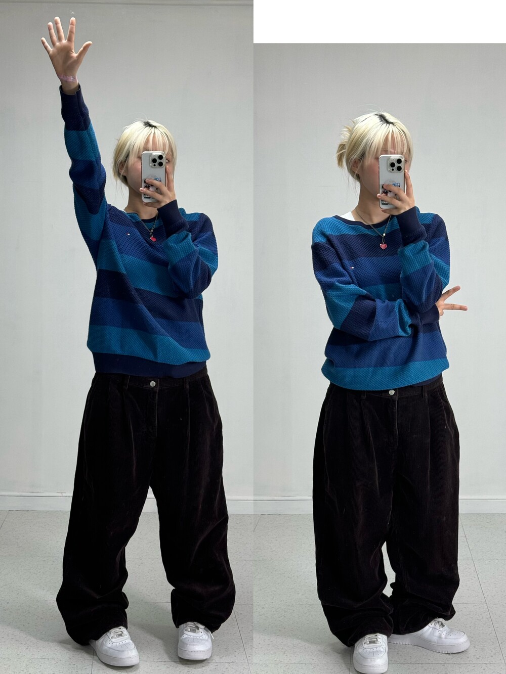 •퍼플과 브라운 색감이 섞인듯한 오묘한 컬러감의 코듀로이 와이드 팬츠! 살짝 벌룬핏이라 아방핏이 아주 귀엽습니다 🖤 데일리 최적화!