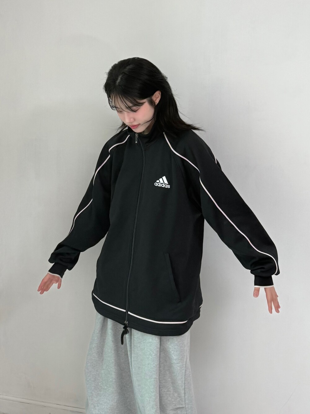 •블랙에 슬림한 레드 컬러 포인트 라인이 들어가 깔끔하면서 심심하지 않게 착용해주시기 좋은 오버핏 져지 입니다! 약간 대만영화 주인공이 입을것 같은 귀여운 데일리템 같이 아웃핏이 나와요ㅋㅋ ㅠㅠ 내스퇄