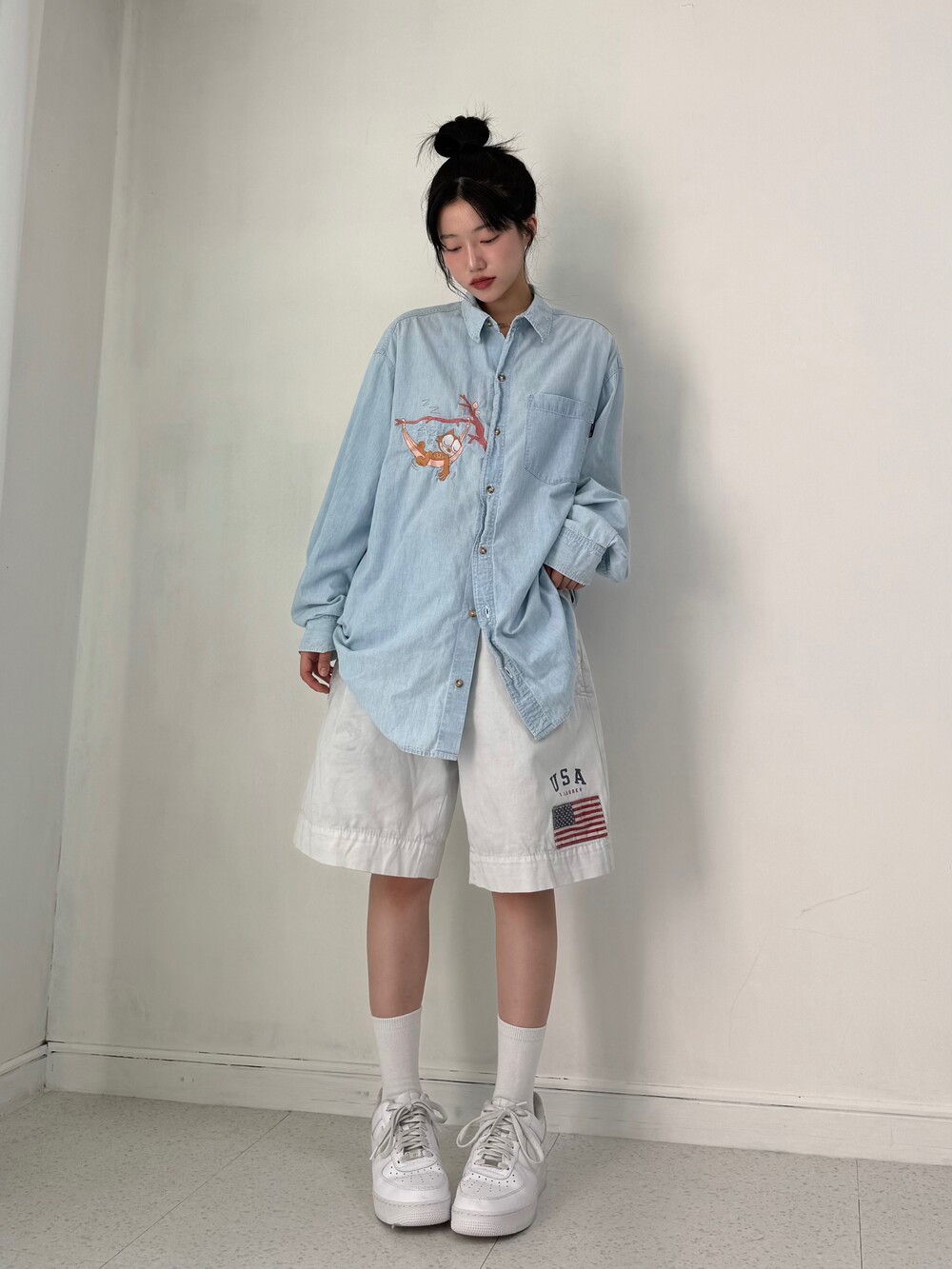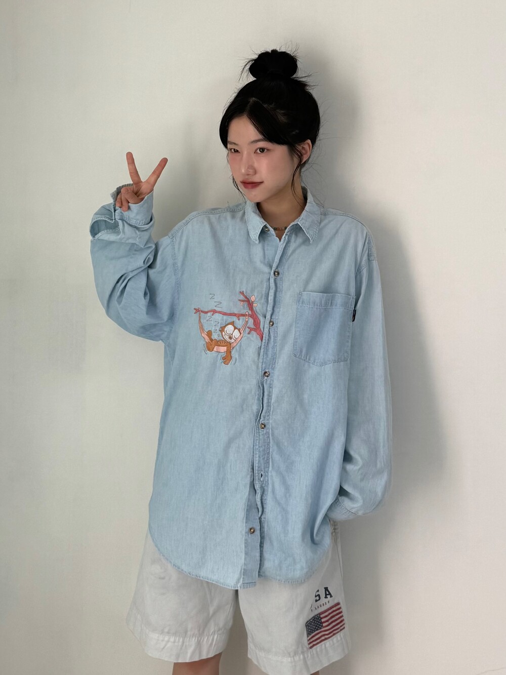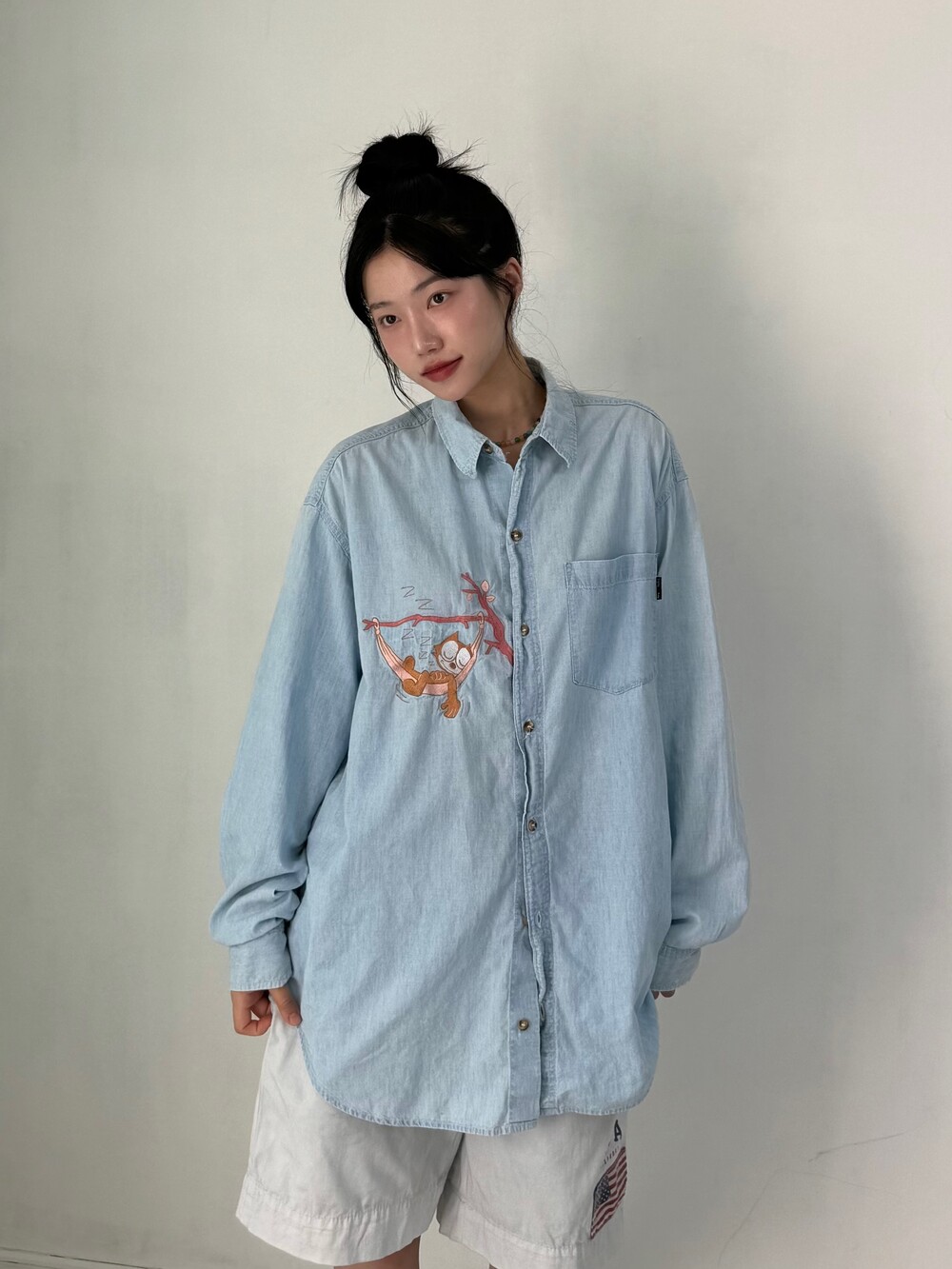 •Made in USA!! 정말 귀여운 펠릭스 데님셔츠에요ㅎㅎ 저는 이런 귀여운 셔츠 정말 너무 너무 좋아하는데요, 귀엽고 흔하지 않고 깔끔하고 시원한 느낌이 낭낭한 분위기가 정말 마음에 들어요! 울 식구님들도 꼭 느껴봤으면..><