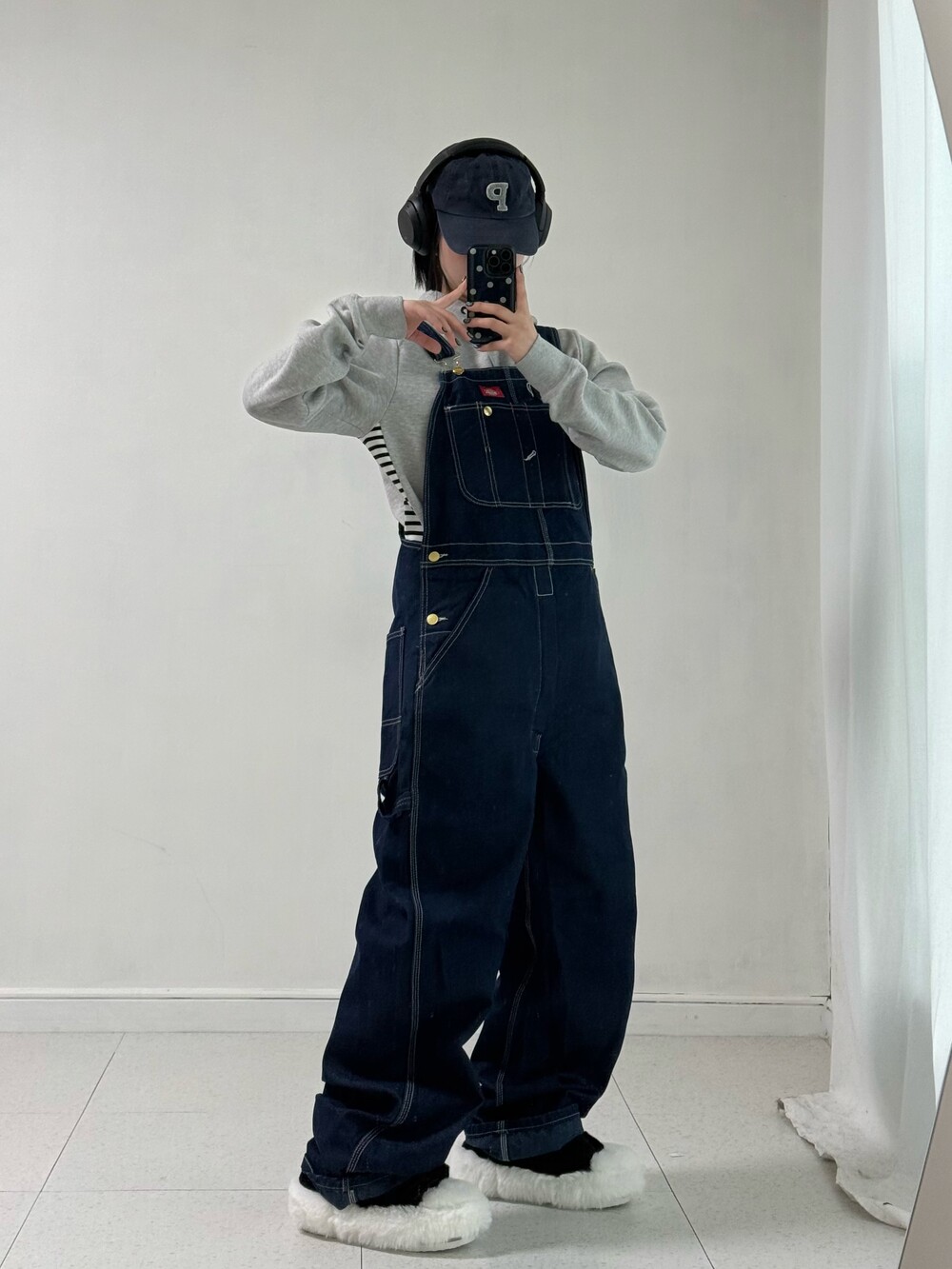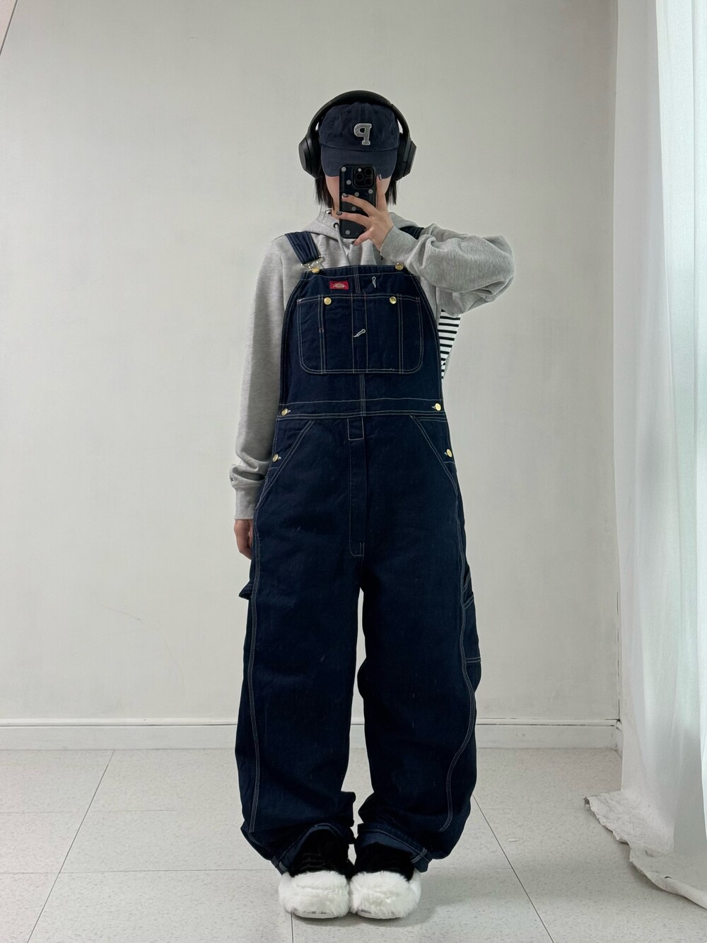 •디키즈 데님 오버롤 입니다. 상태도 좋고 안에 그레이 후드만 입어줘도 꾸안꾸 코디 완성이에요!