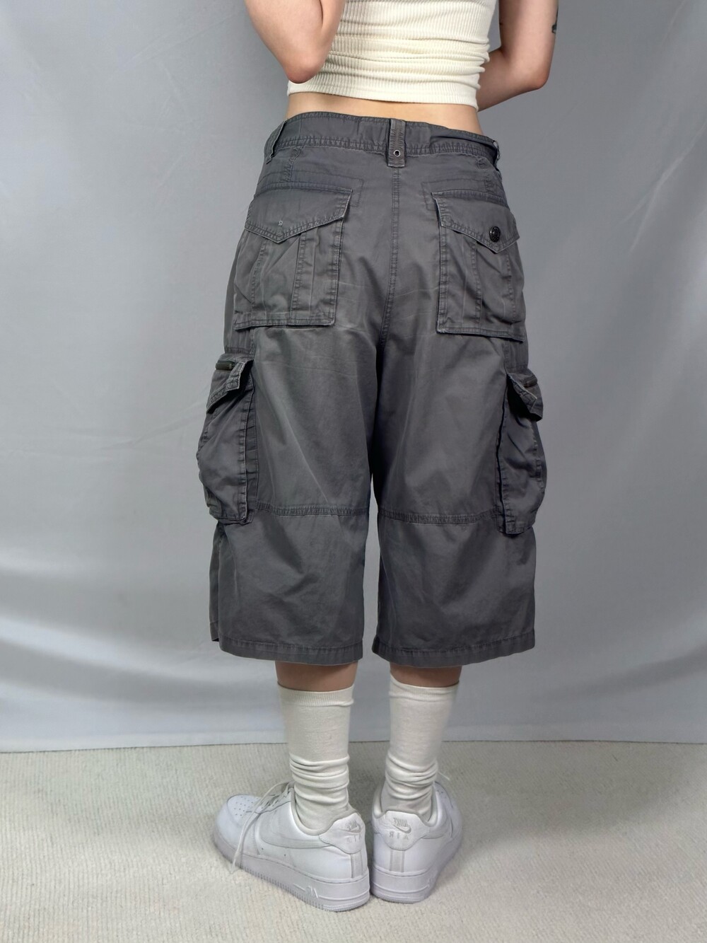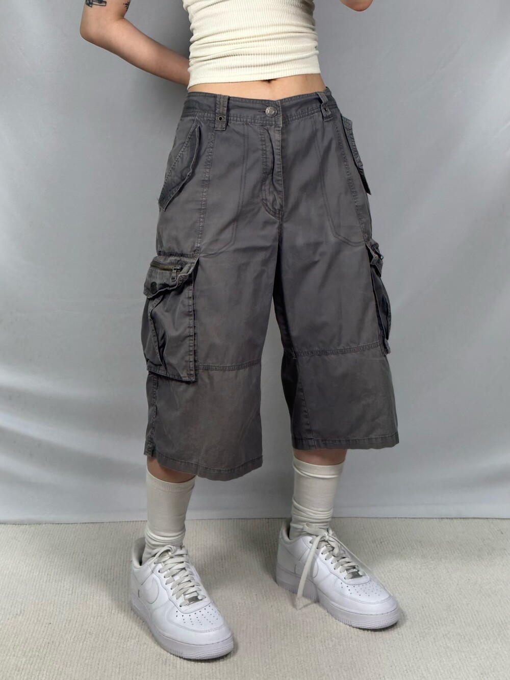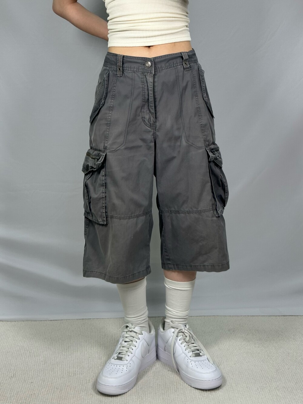 •그레이 컬러의 카고반바지에요! 루즈핏에 양쪽 포켓 디테일과 디자인이 완전 빈티지 무드를 낭낭하게 연출하실 수 있어요:)