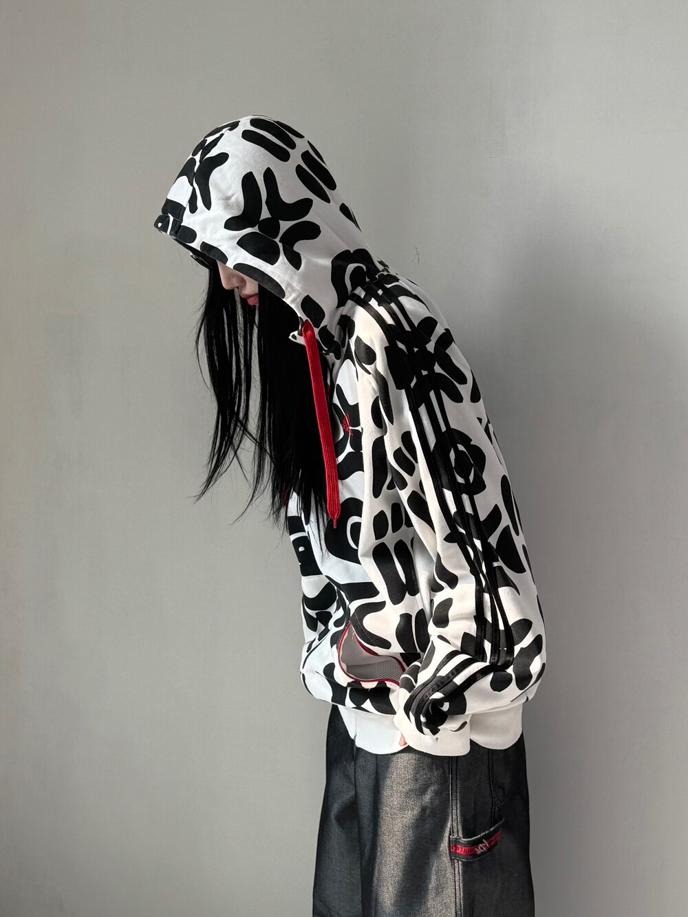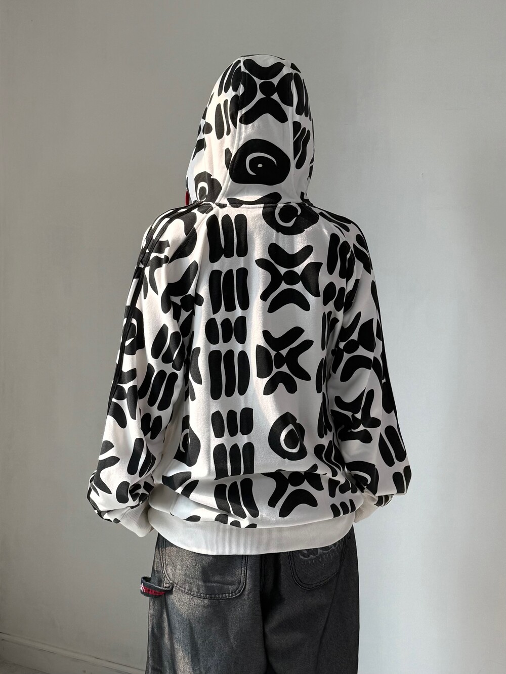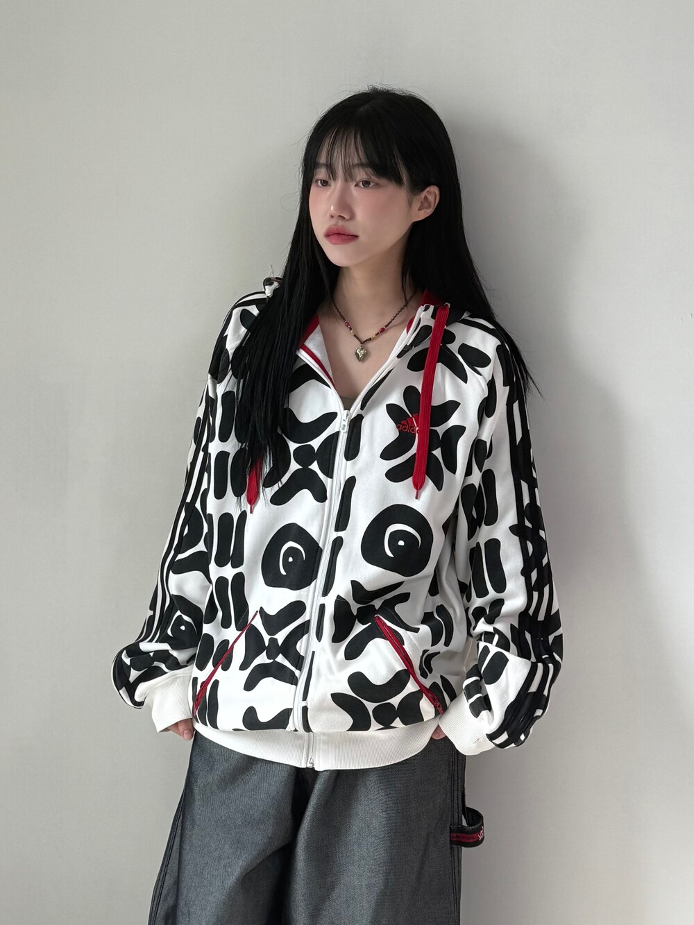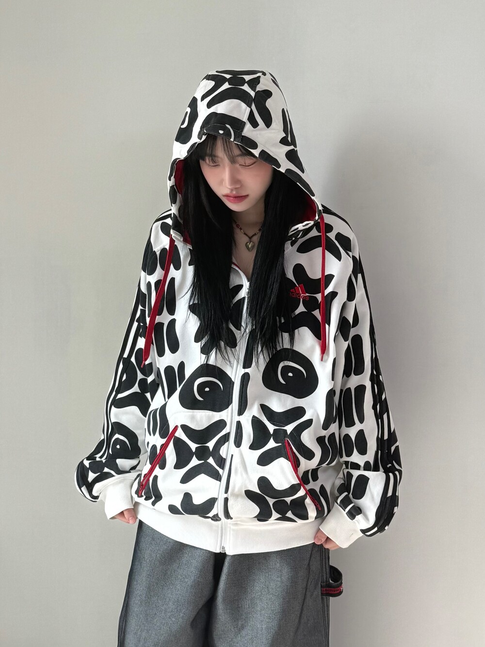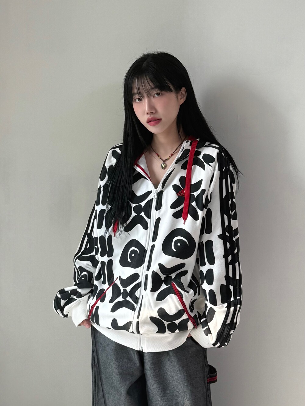 •유니크한 패턴과 매력적인 아방핏의 조합이 백점 만점에 구백오십점 이요~~ 후드 썼을때도 핏 예쁜거 보이셔요?😎