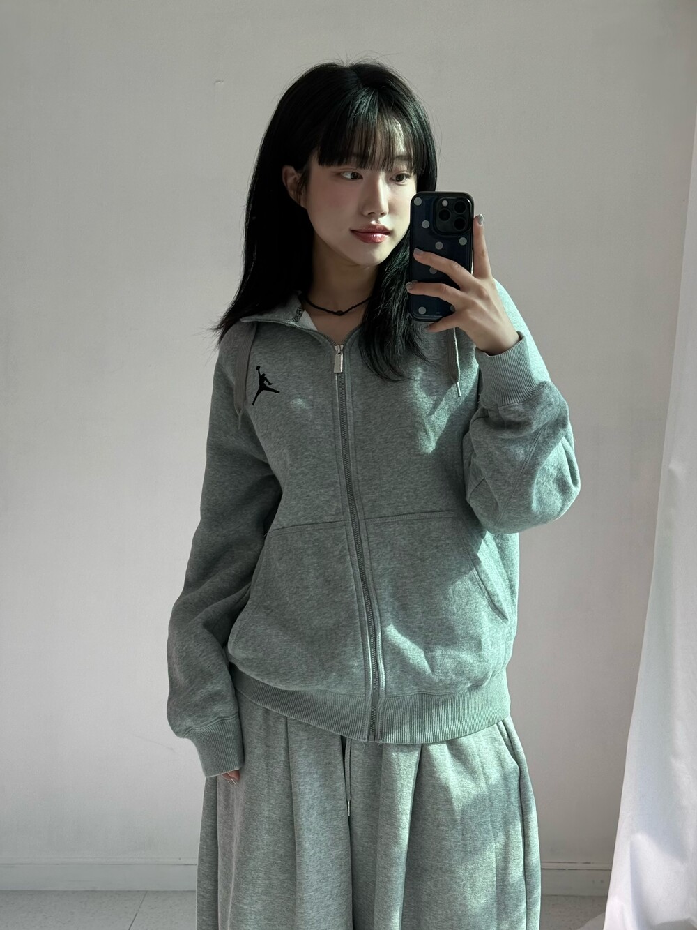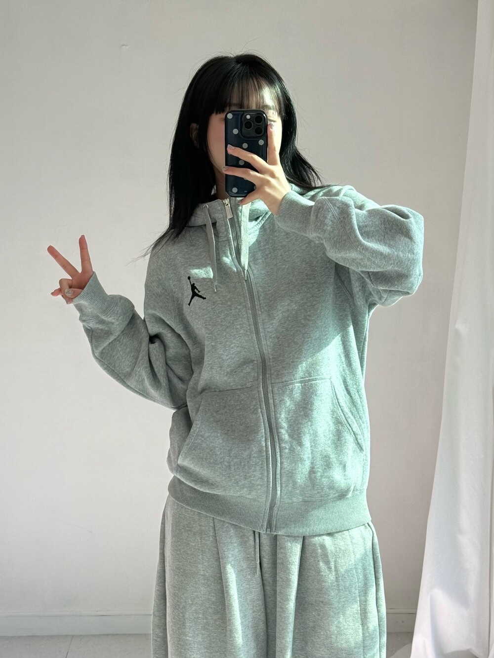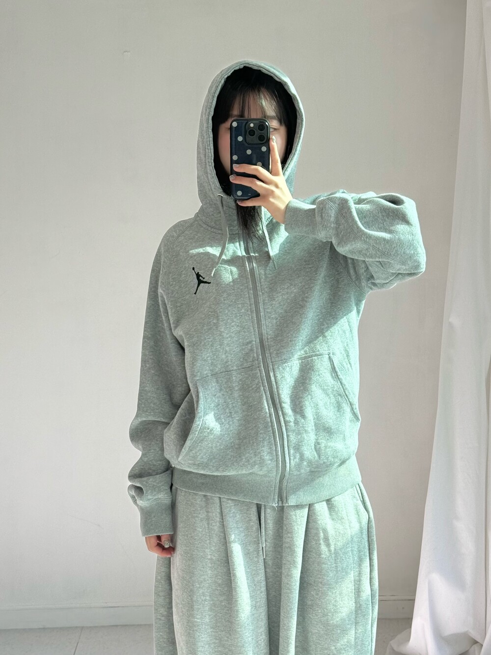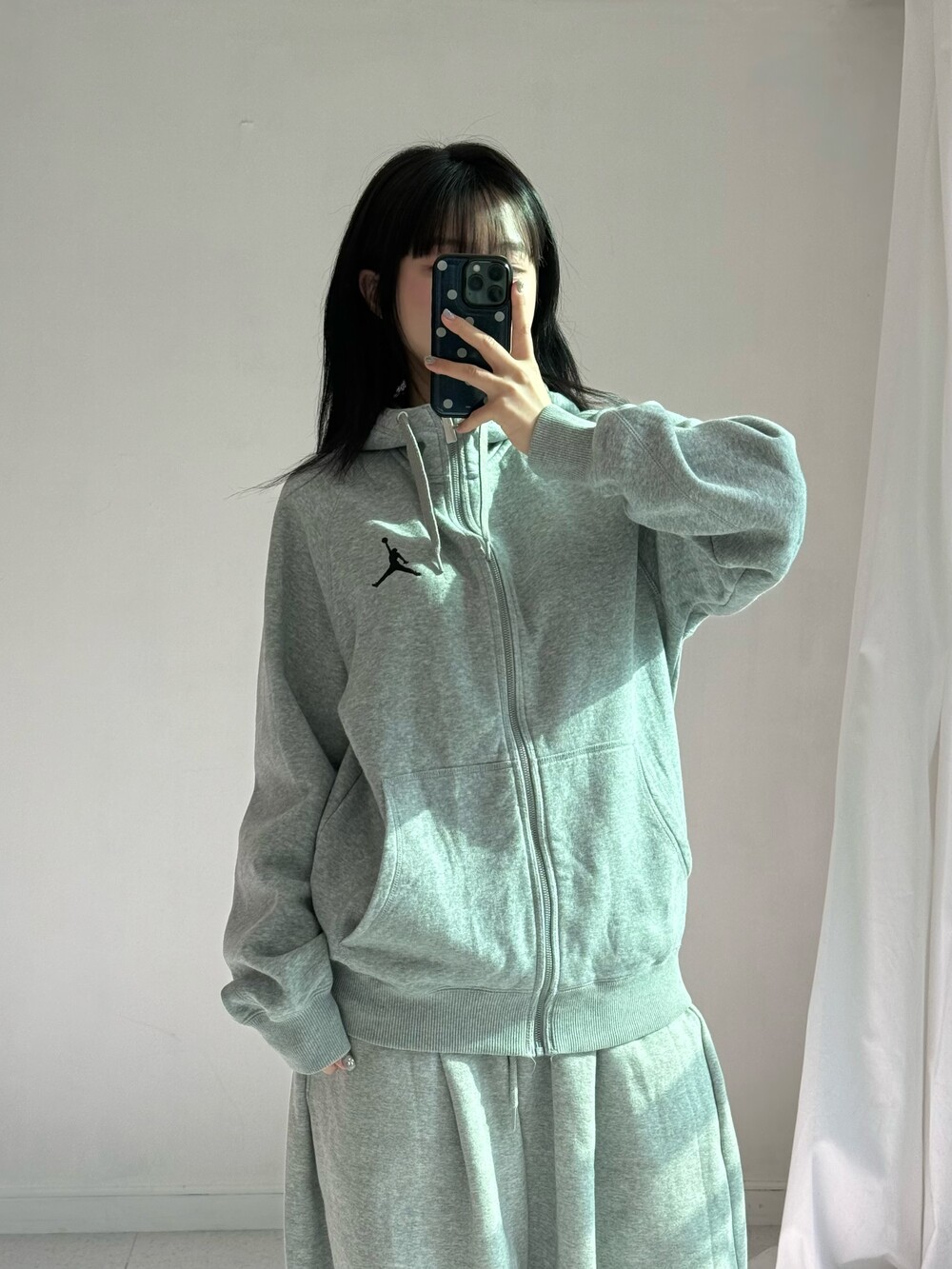 •조던 그레이 후드집업 입니다! 낭낭한 핏감과 안감 기모라 따숩고 귀엽게 입어주시기 좋습니다ㅎㅎ