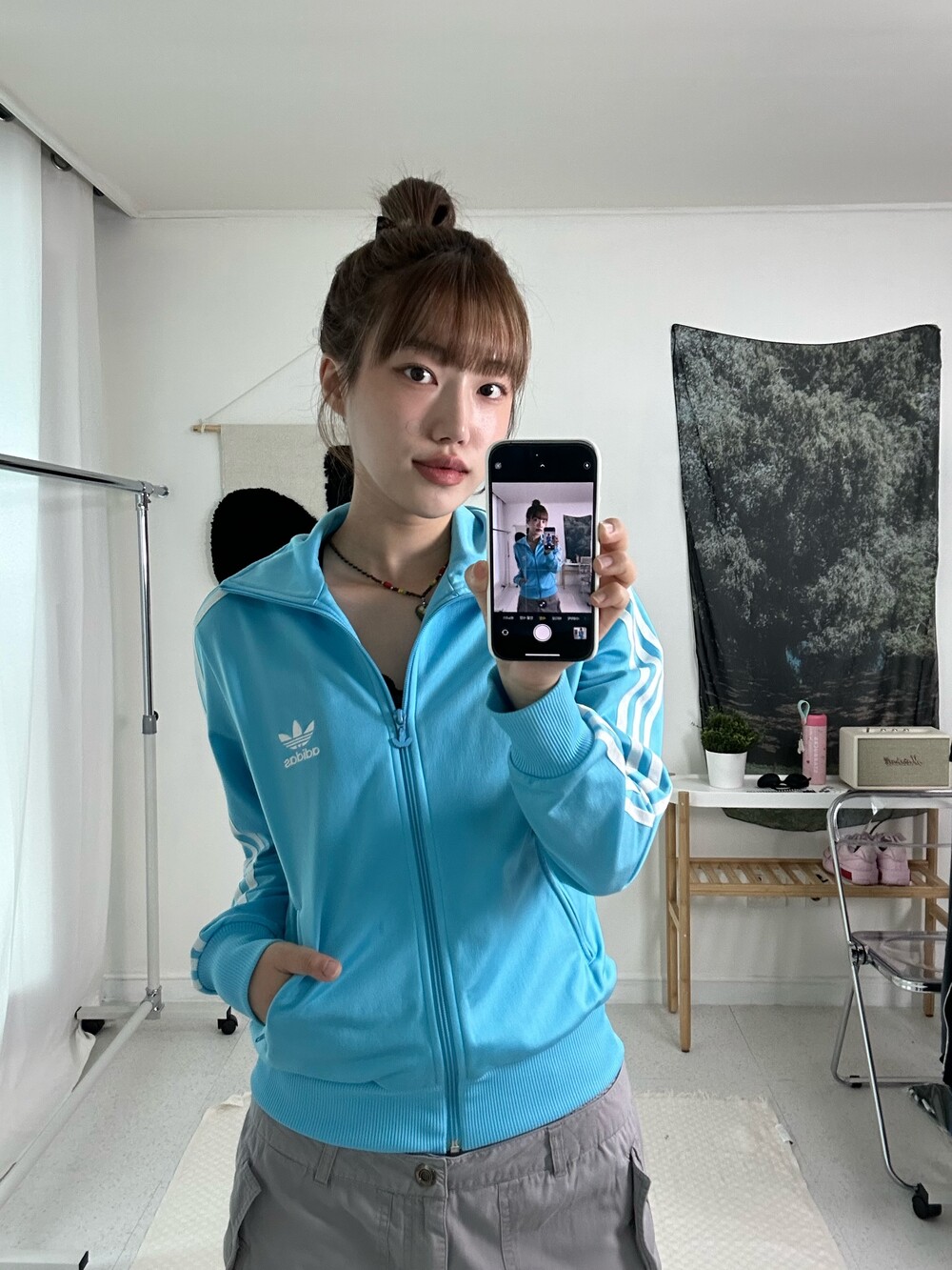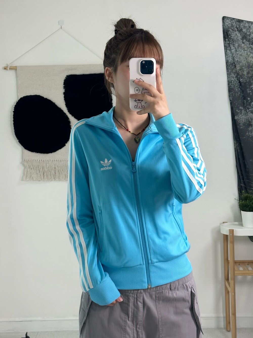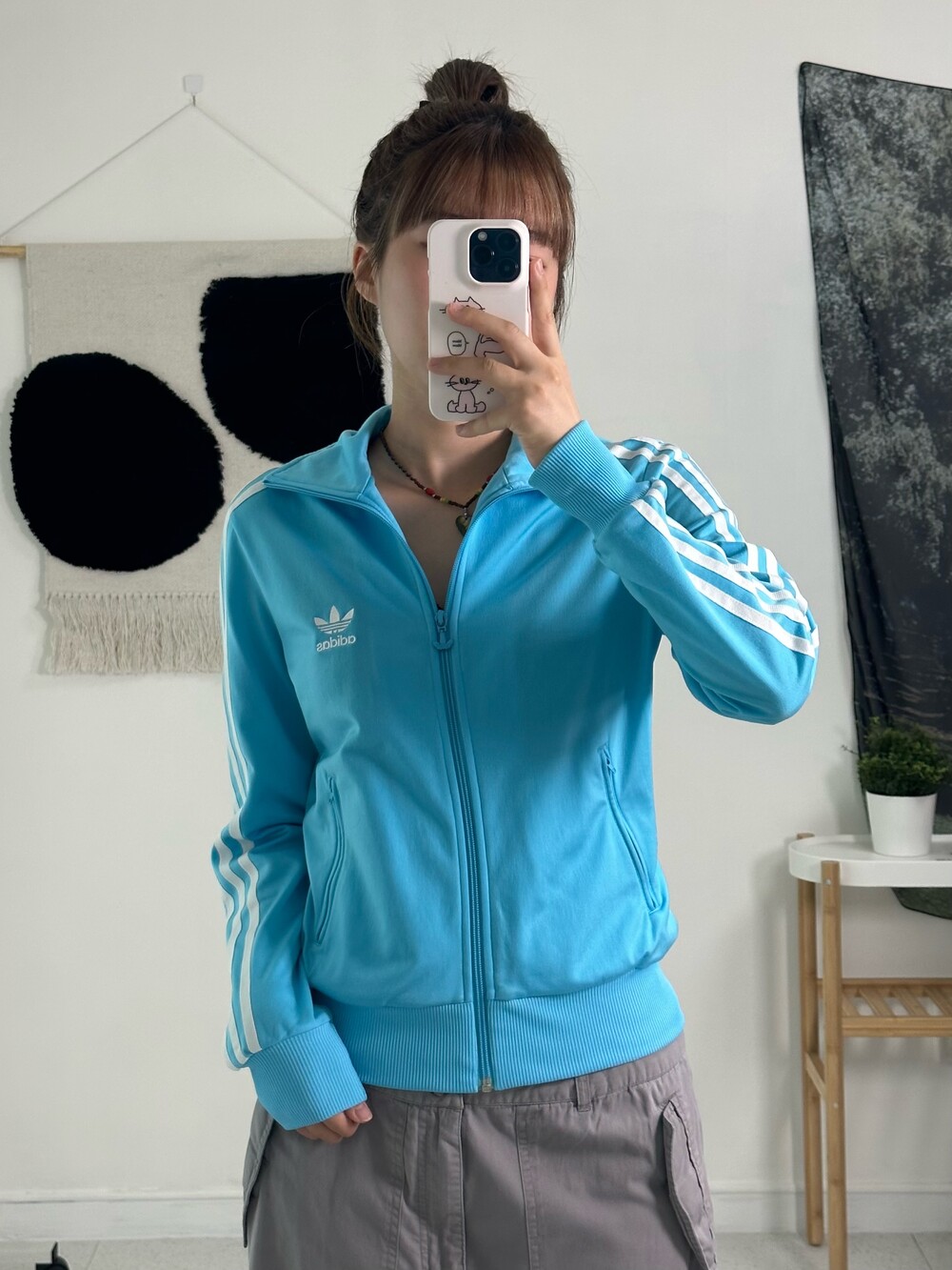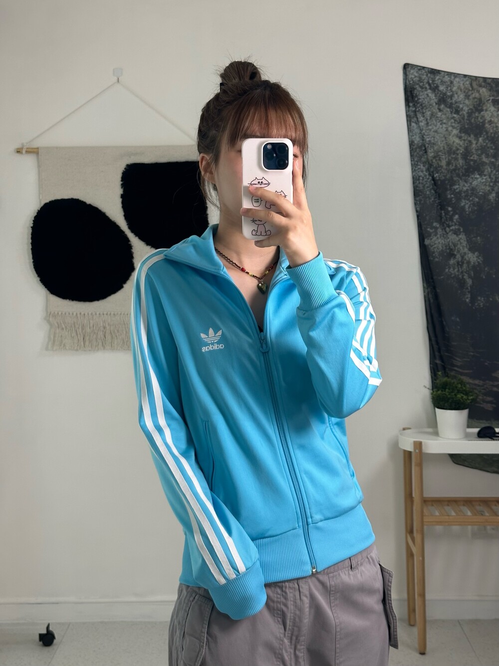 •색상이 너무 예쁜 아디다스 져지에요! 앞에 뿐만 아니라 뒤에 파이어버드가 크게 박혀있어 더욱 멋스러운 제품이랍니다! 주머니 지퍼 디테일도 있고 단순해보이지만 툭 걸쳤을때 굉장히 예쁜 제품입니다!:)