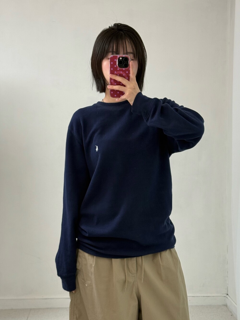 •폴로 네이비 와플 니트 롱슬리브에요! 촤르륵 떨어지는 루즈핏에 부드러운 원단감까지! 봄에 주구장창 입어주시기 좋은 녀석이에요ㅎㅎ