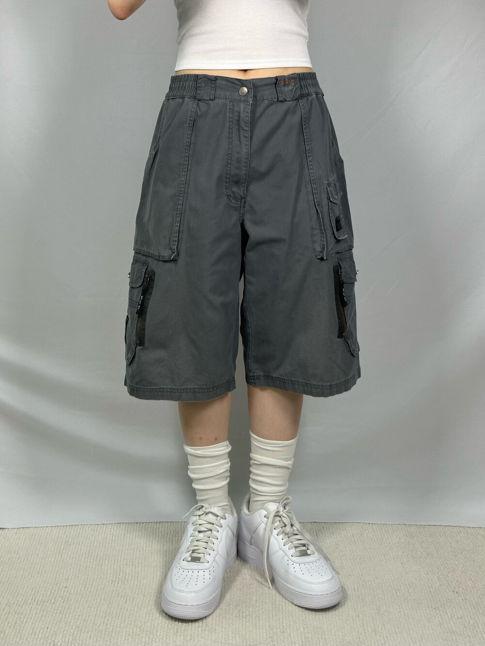 •그레이 컬러의 와이드한 반바지 카고에요! 지퍼 디테일과 컬러 자체도 넘 예뻐서 가져왔어요ㅎㅎ