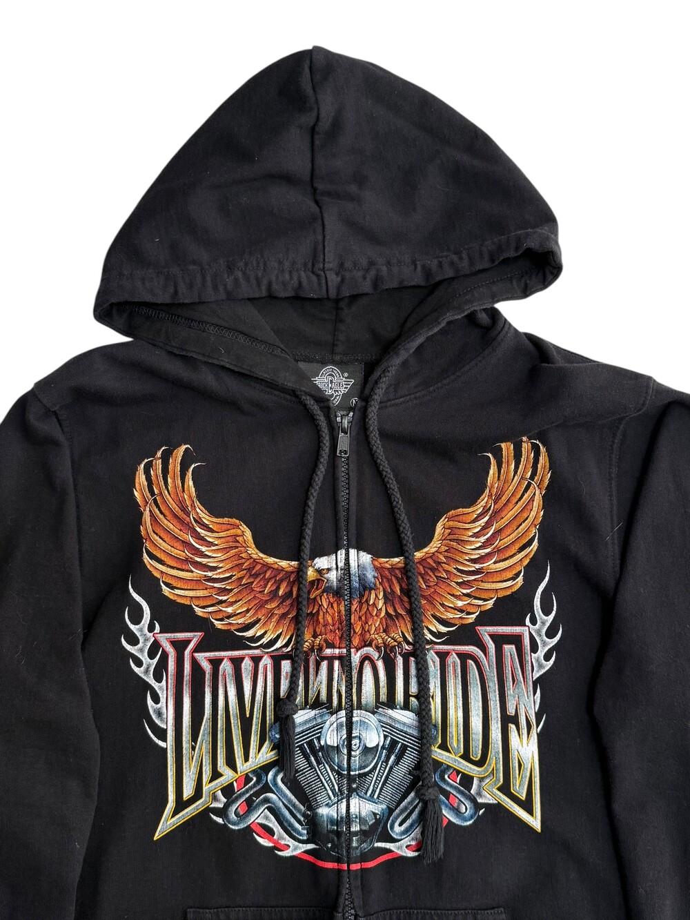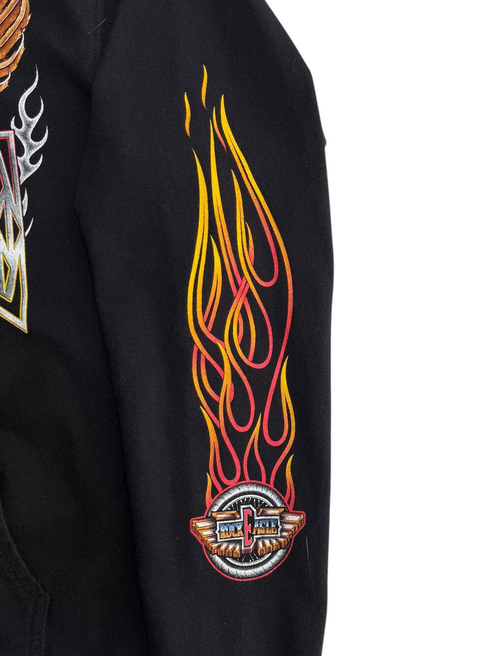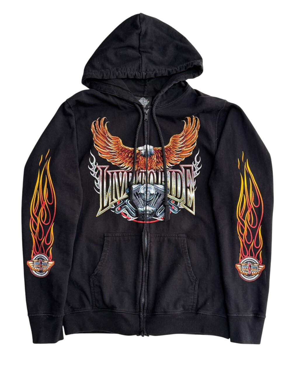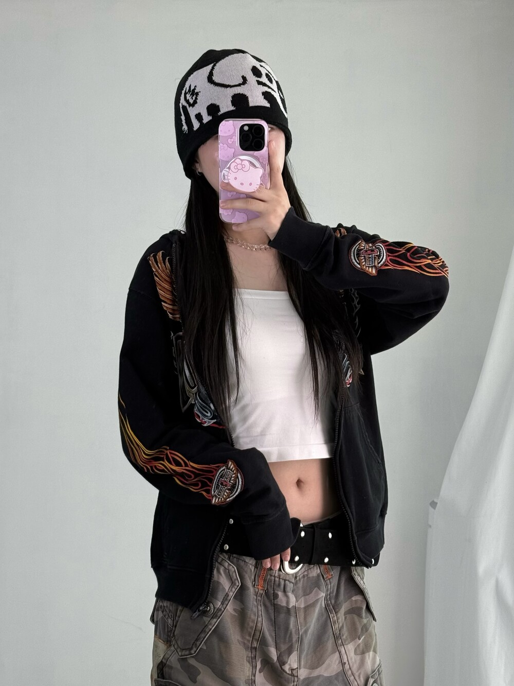 •할리데이비슨st 후드집업이에요! 평소 락티 많이들 좋아하셔서 그런깔로 준비해보았는데 어떤가요-키키. 앞,뒤,소매 전부 멋스러운 프린팅이 들어가있어 멋스럽고 핏도 적당히 루즈하게 떨어져 과히지 않게 입어주시기 좋은 아이템이랍니다!
